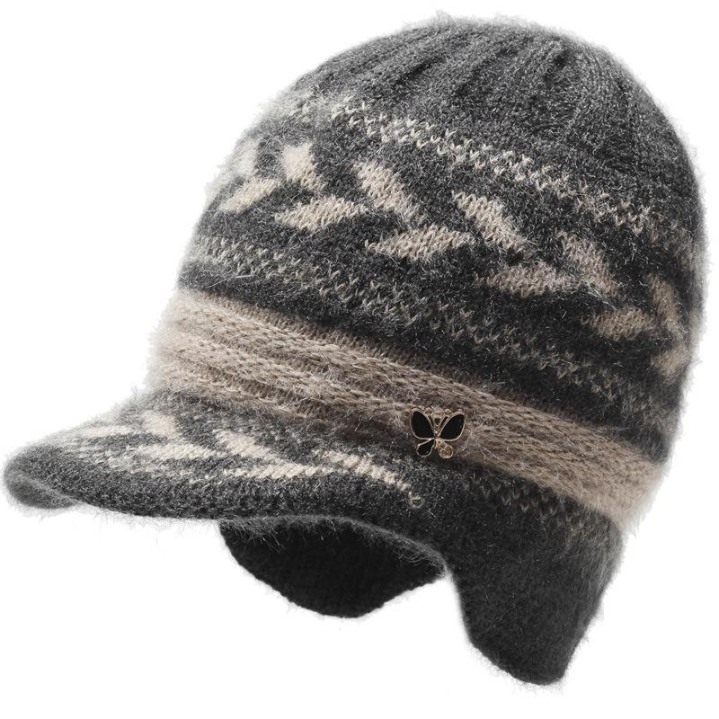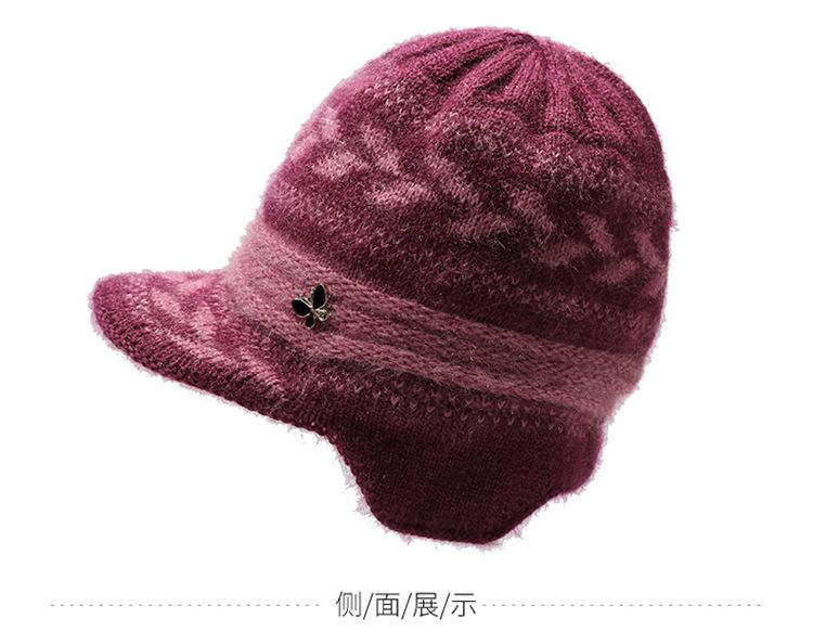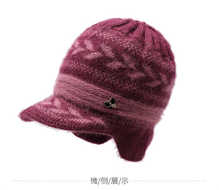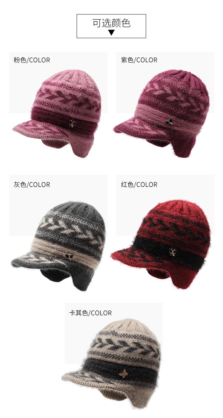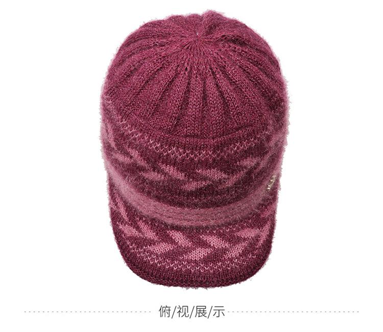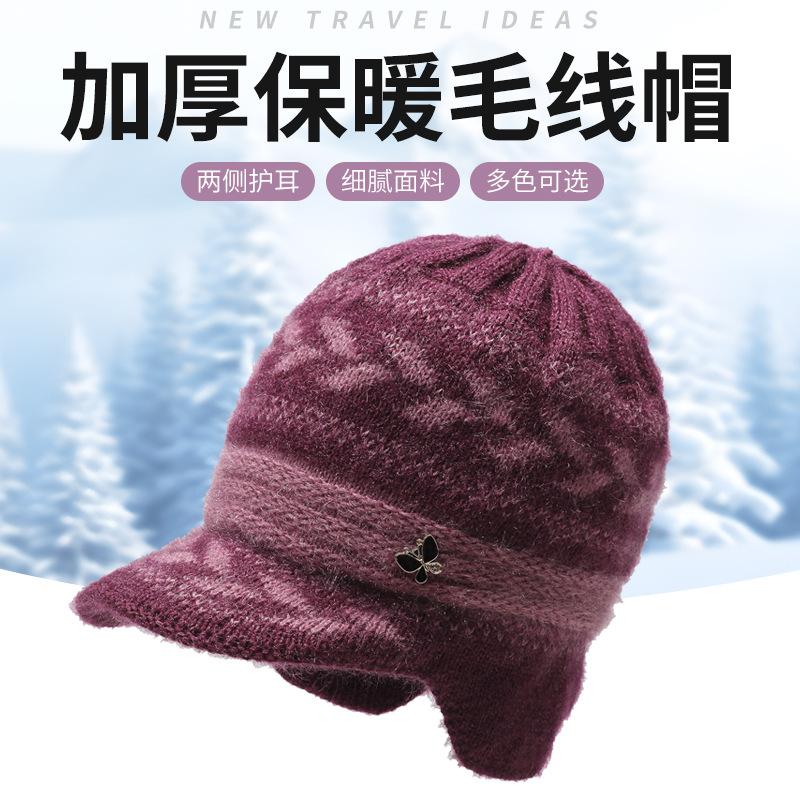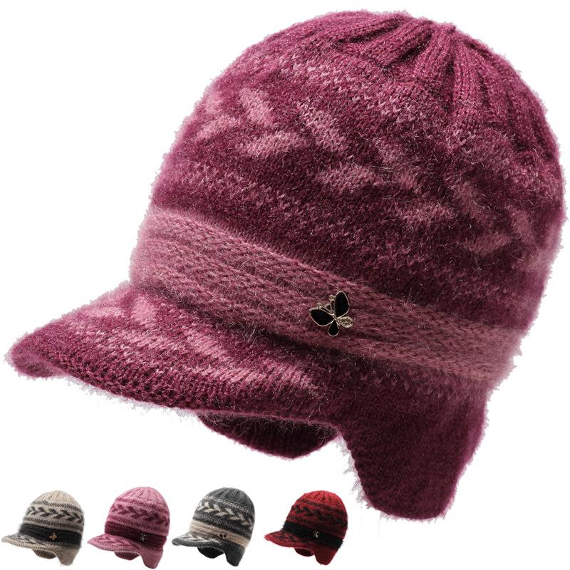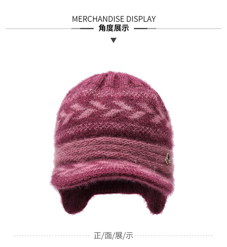 Nuevo gorro de otoño e invierno para mujer, cálido gorro de punto jacquard para madres de mediana edad y mayores con protección para las orejas