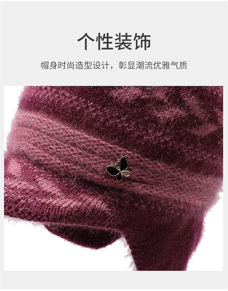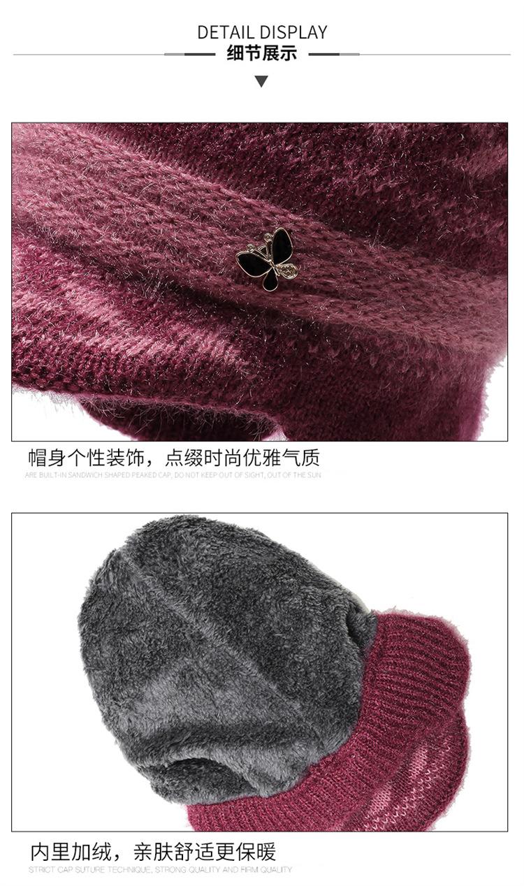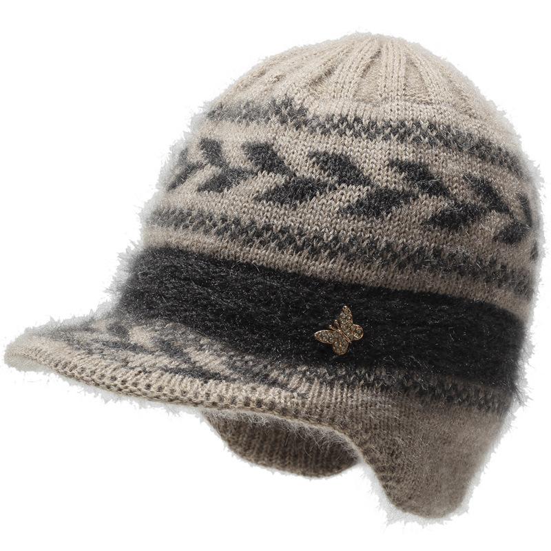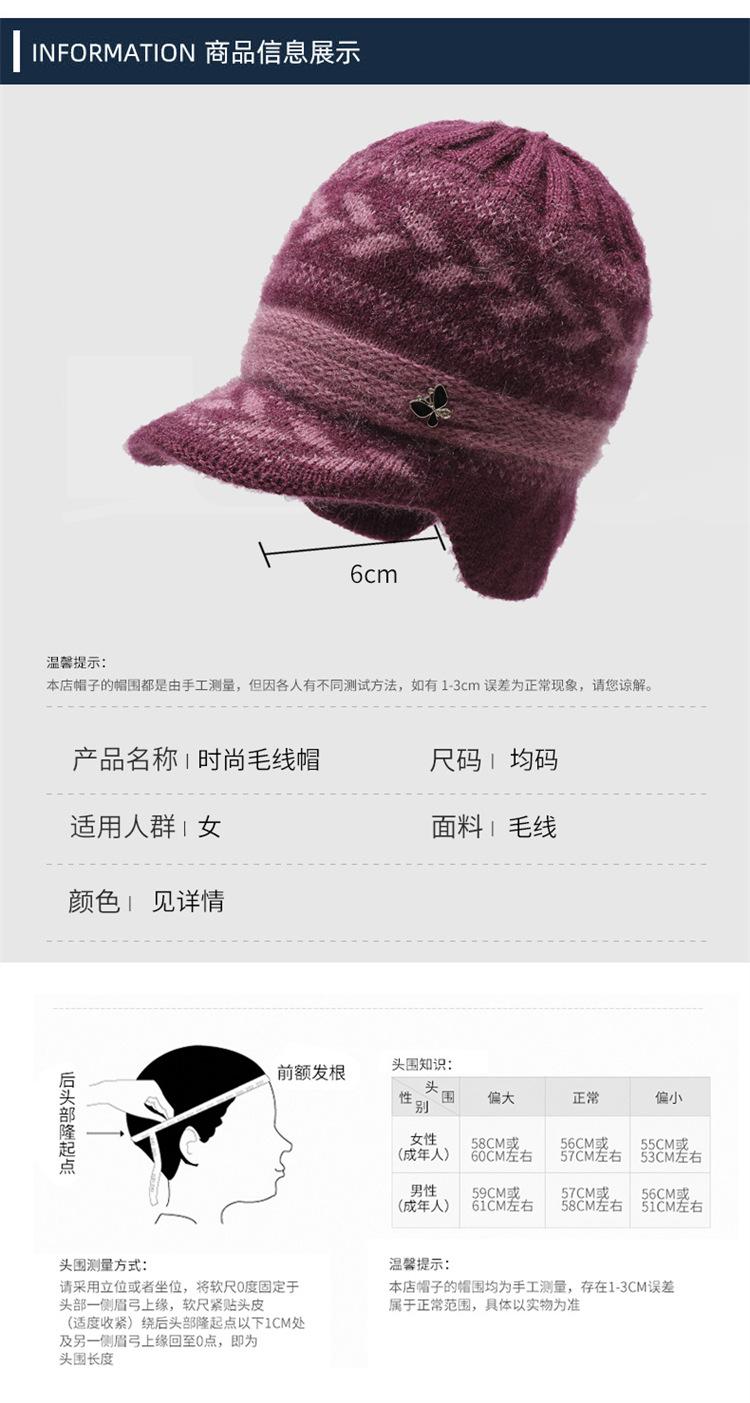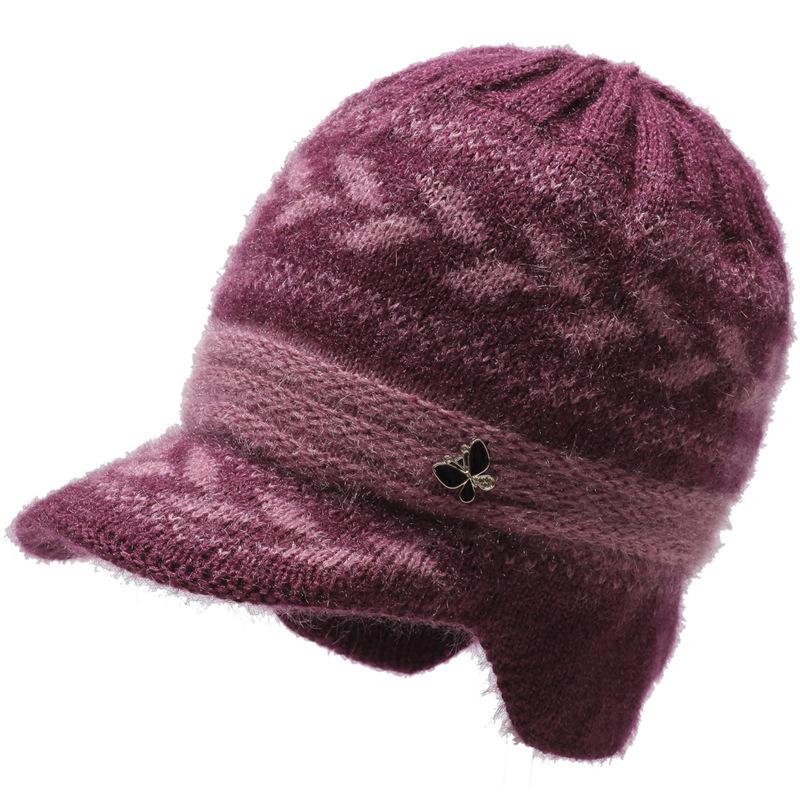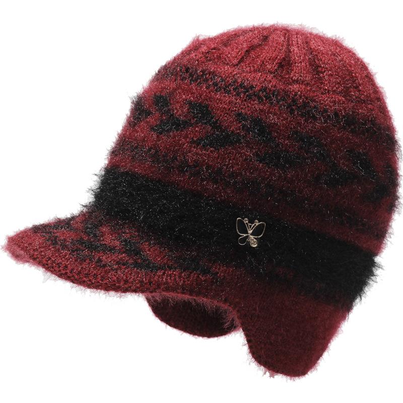 Nuevo gorro de otoño e invierno para mujer, cálido gorro de punto jacquard para madres de mediana edad y mayores con protección para las orejas