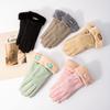 Guantes de invierno para mujer con pantalla táctil, bonitos guantes de lana estilo coreano con forro polar grueso para ciclismo, cálidos y resistentes al frío para estudiantes.
