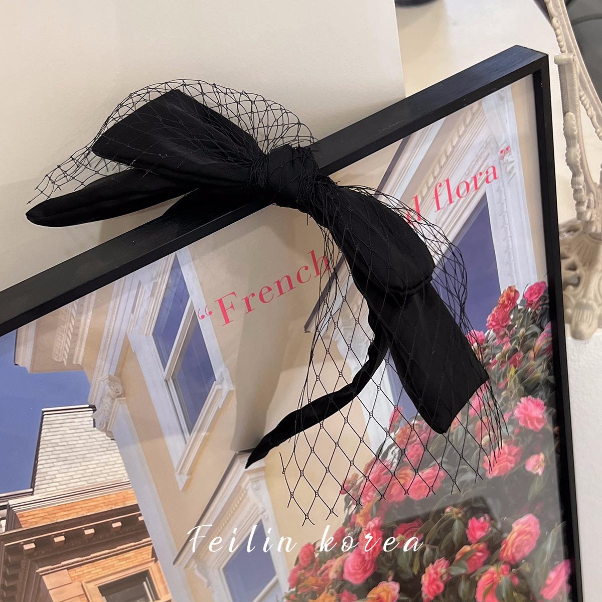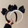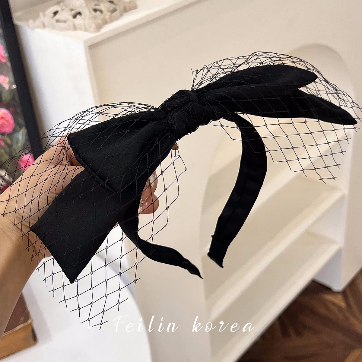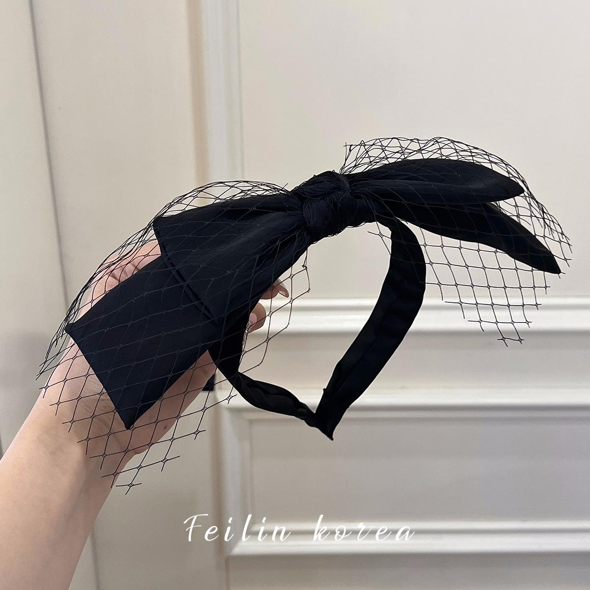 Diadema con lazo de gasa negra, accesorio para el cabello, pinza para el cabello de celebridades de Internet 2023, banda para el cabello a presión con lavado facial francés en la parte superior del cráneo.