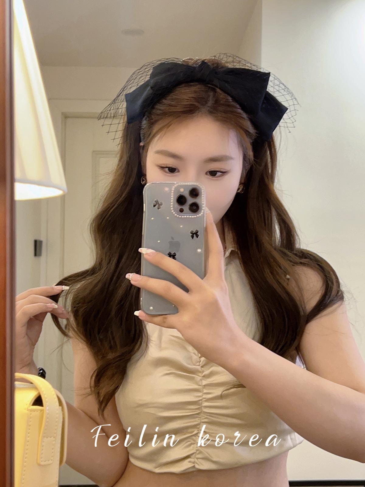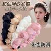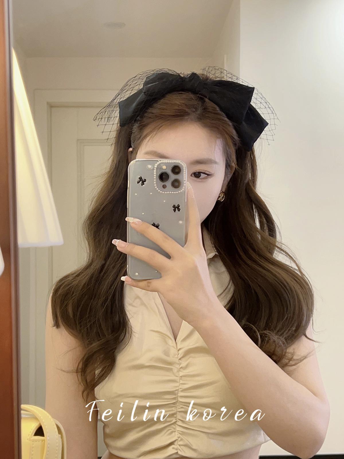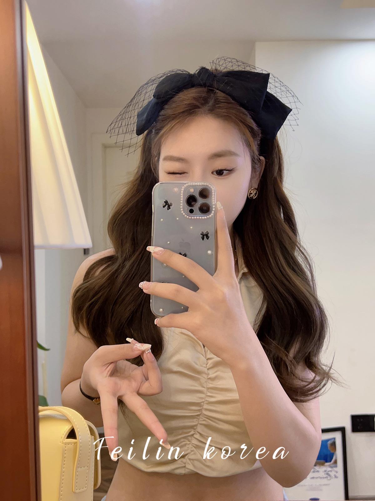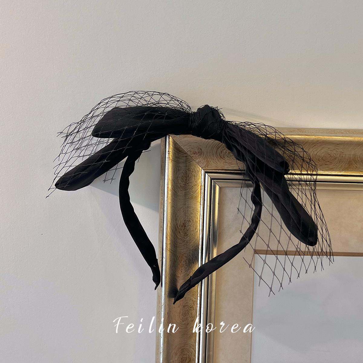 Diadema con lazo de gasa negra, accesorio para el cabello, pinza para el cabello de celebridades de Internet 2023, banda para el cabello a presión con lavado facial francés en la parte superior del cráneo.