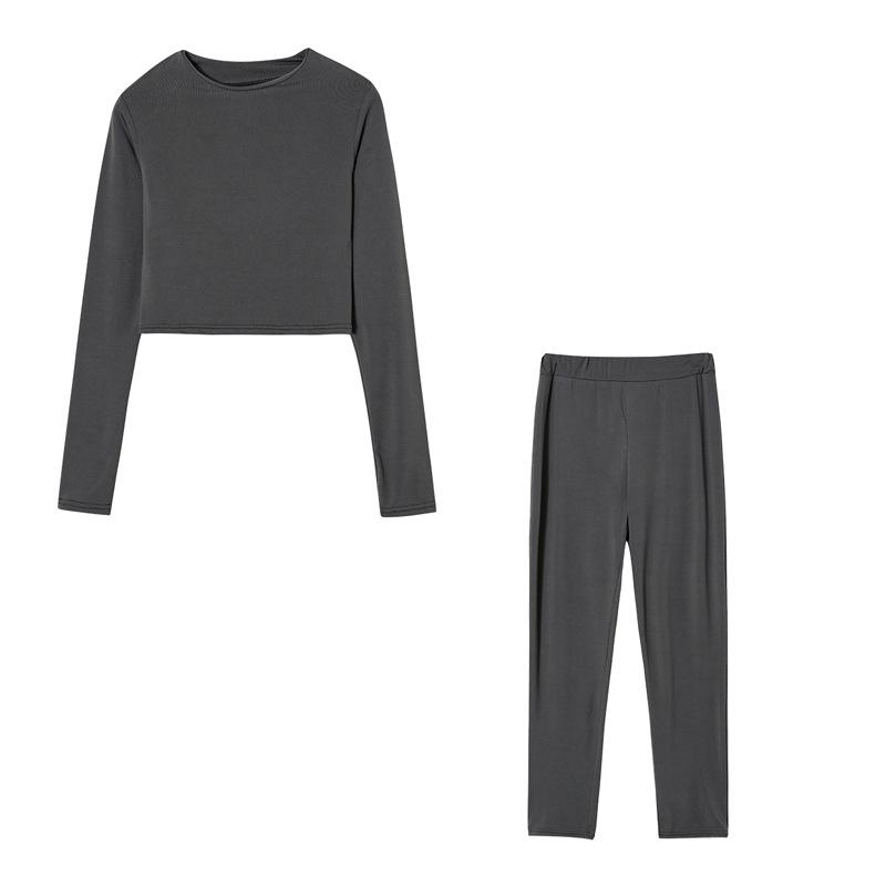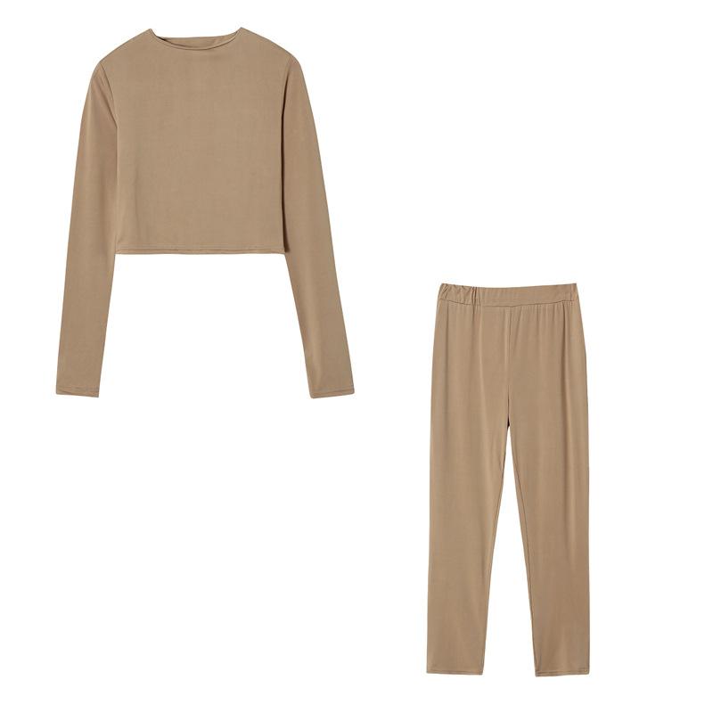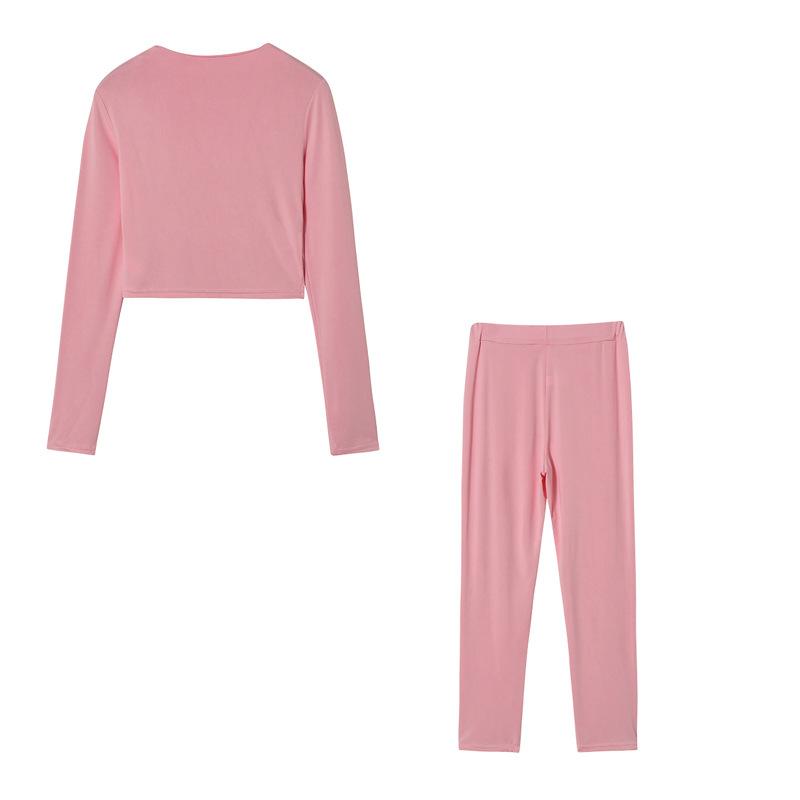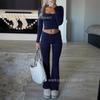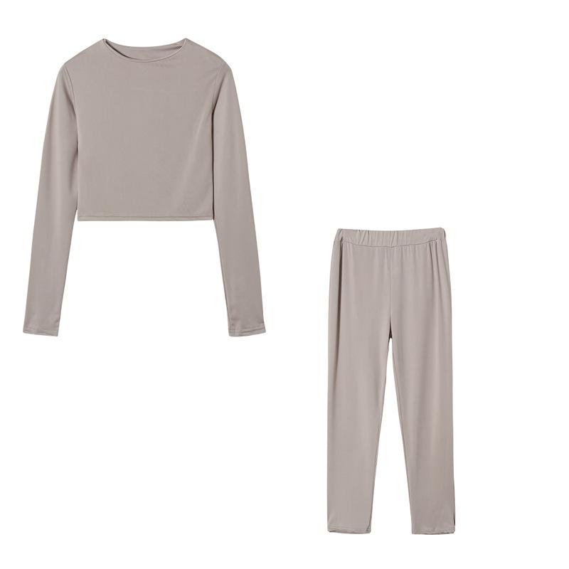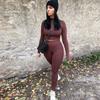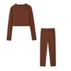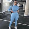 Traje deportivo informal de dos piezas de manga larga ajustado blanco para mujer, comercio exterior de Amazon, otoño e invierno de 2024