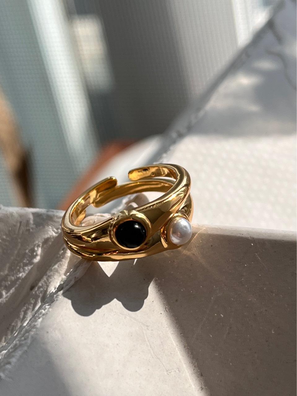 Set de Anillos Anillo Chapado en Latón para Mujer, Moda Nicho de Lujo Ligero Personalidad Banda Lisa de Alta Sensibilidad Anillo Abierto Retro Trendy I8/5