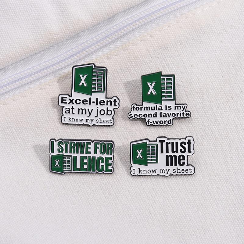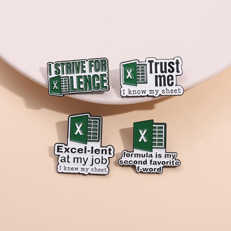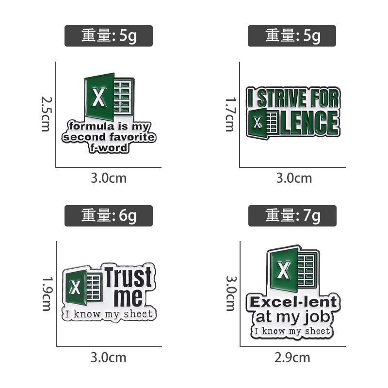 Insignia de metal con forma de EXCEL, software de oficina creativo, letra verde interesante, accesorios de regalo, pin