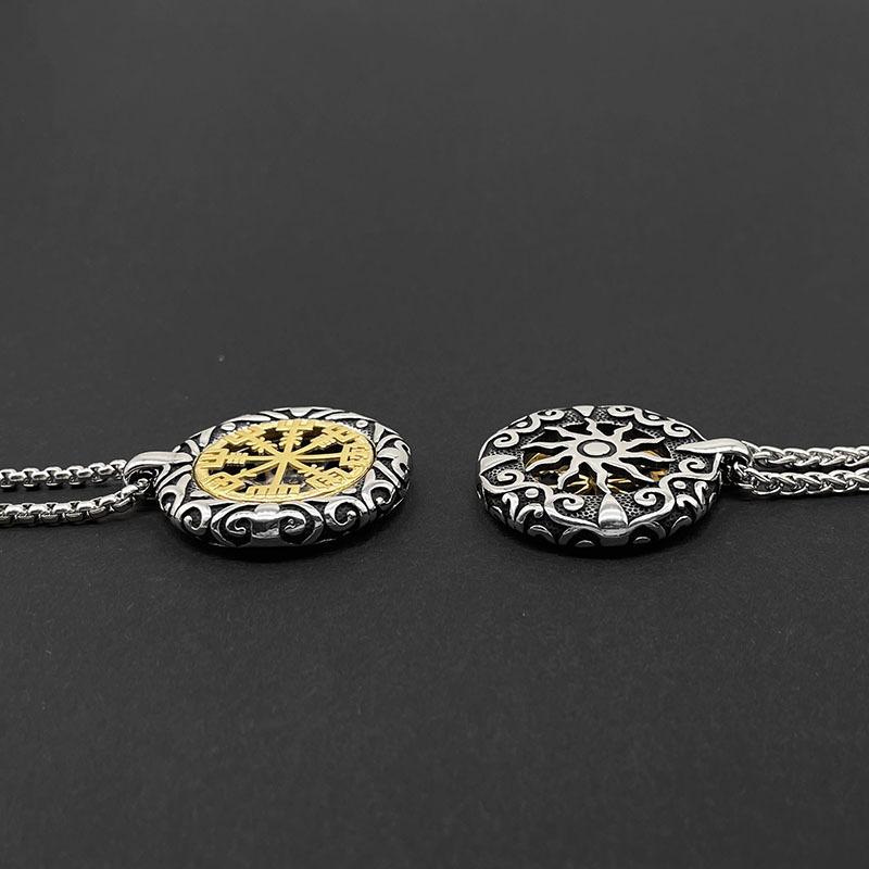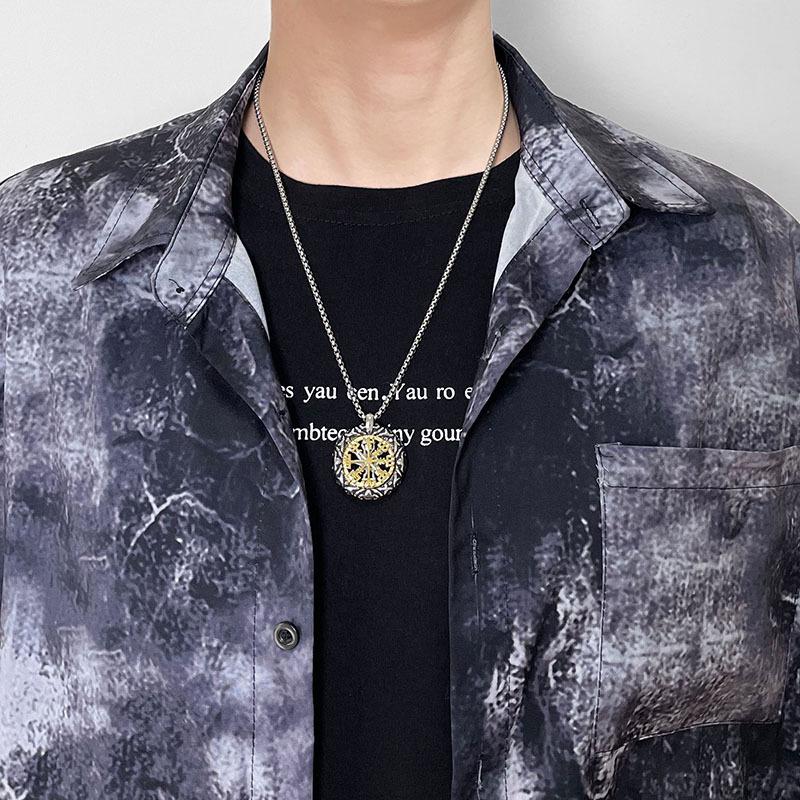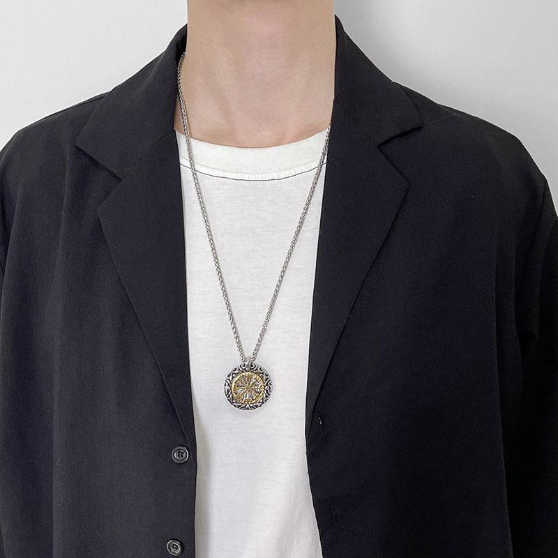 Collar de brújula Chiba Taiyin Xinghai para hombre, marca de moda europea y americana, hip-hop, colgante de sol personalizado de doble cara, accesorios de la suerte