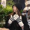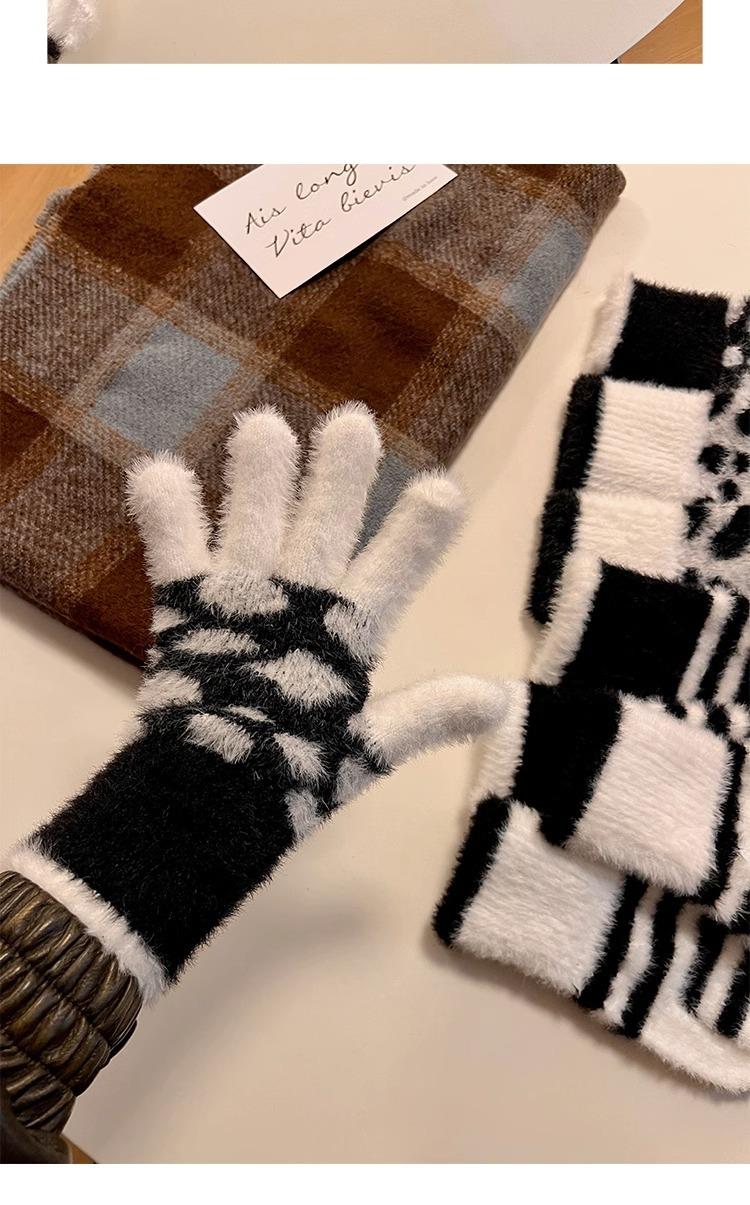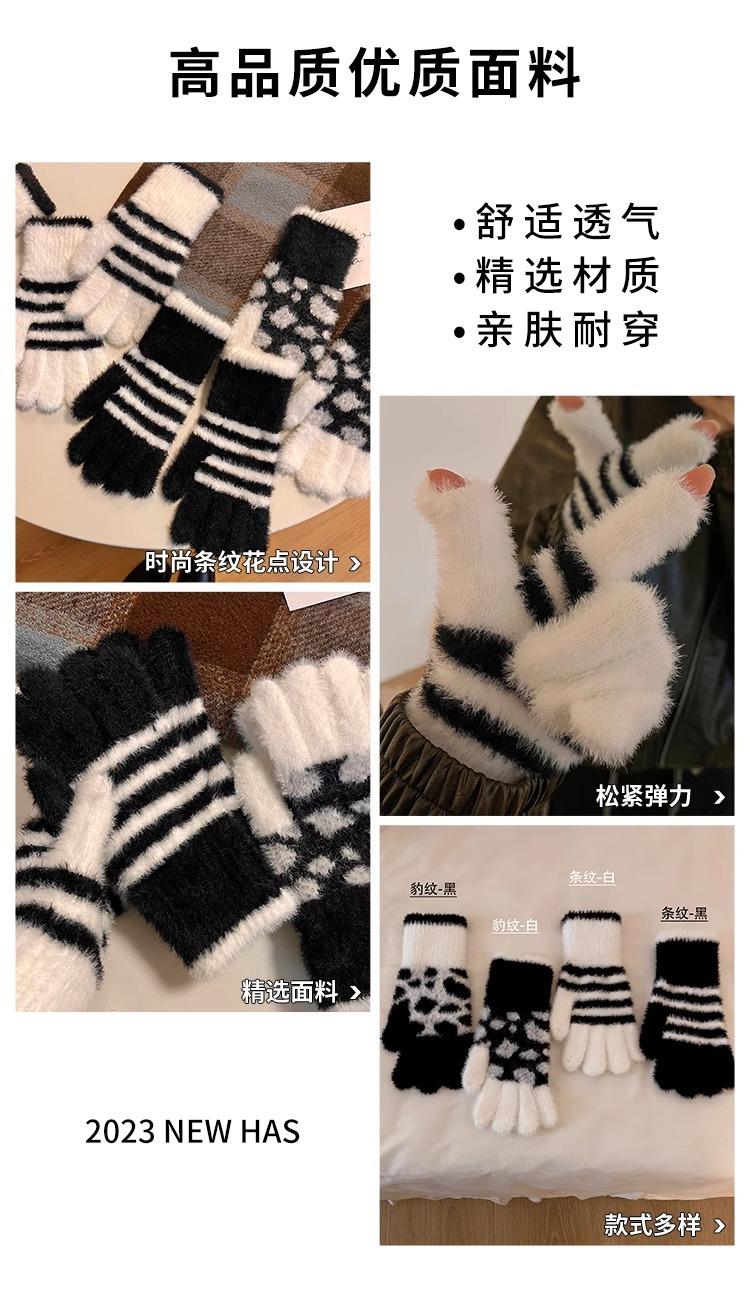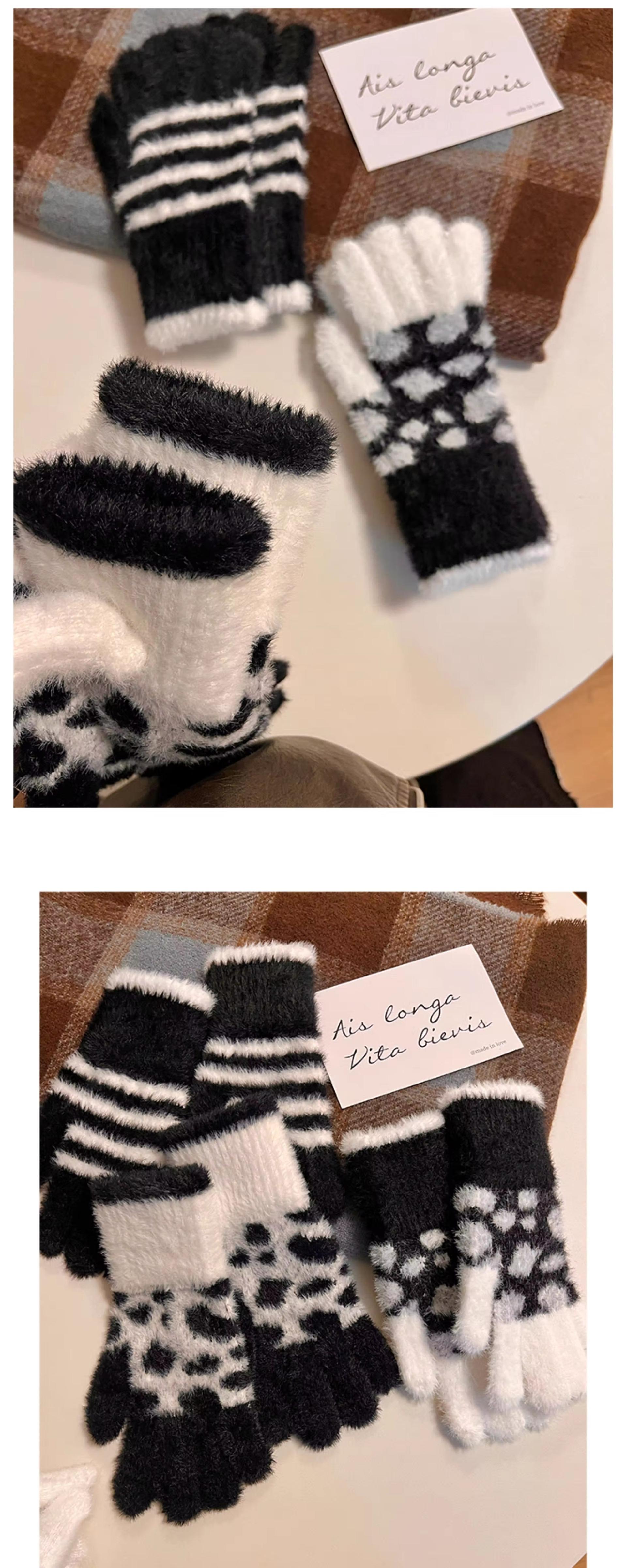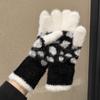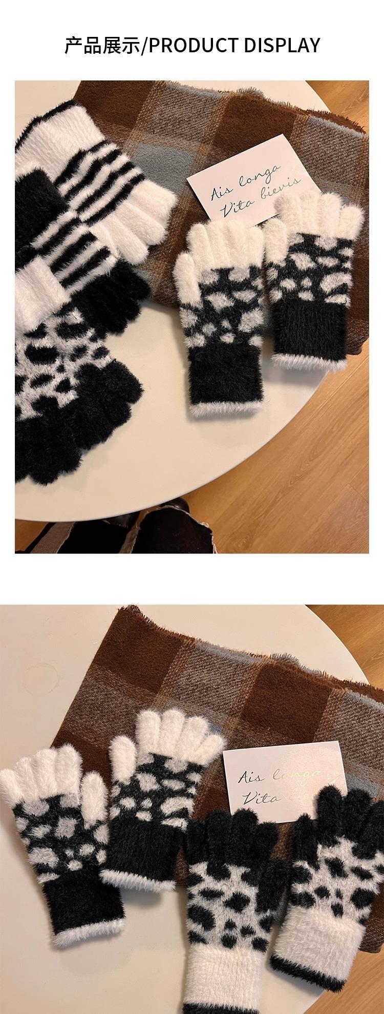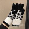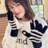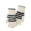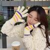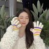 Guantes de felpa a rayas de cinco dedos con pantalla táctil para mujer, de invierno, forrados con vellón, bonitos, para estudiantes, gruesos, cálidos y fríos.