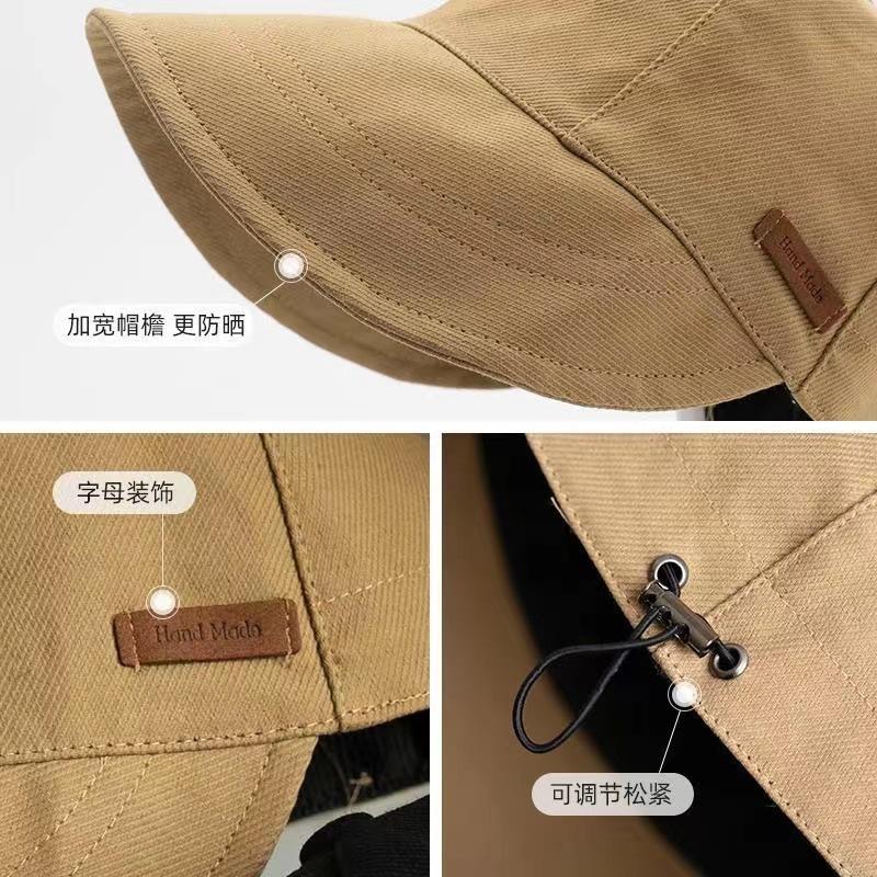 Sombrero de pescador de cara grande para mujer, delgado, primavera y verano 2023, protección solar, protección UV, sombrero para el sol, sombrero negro liso.