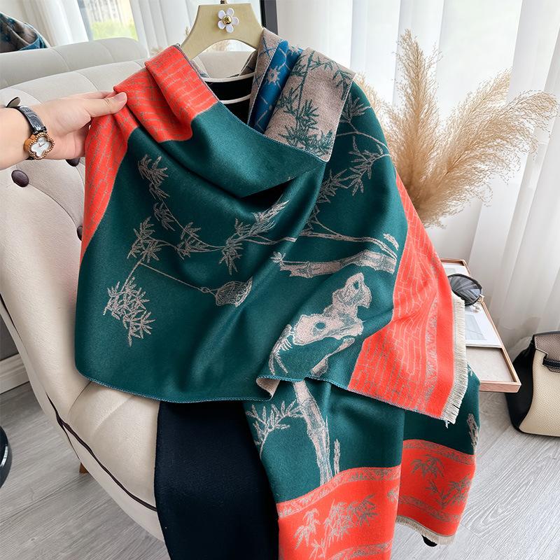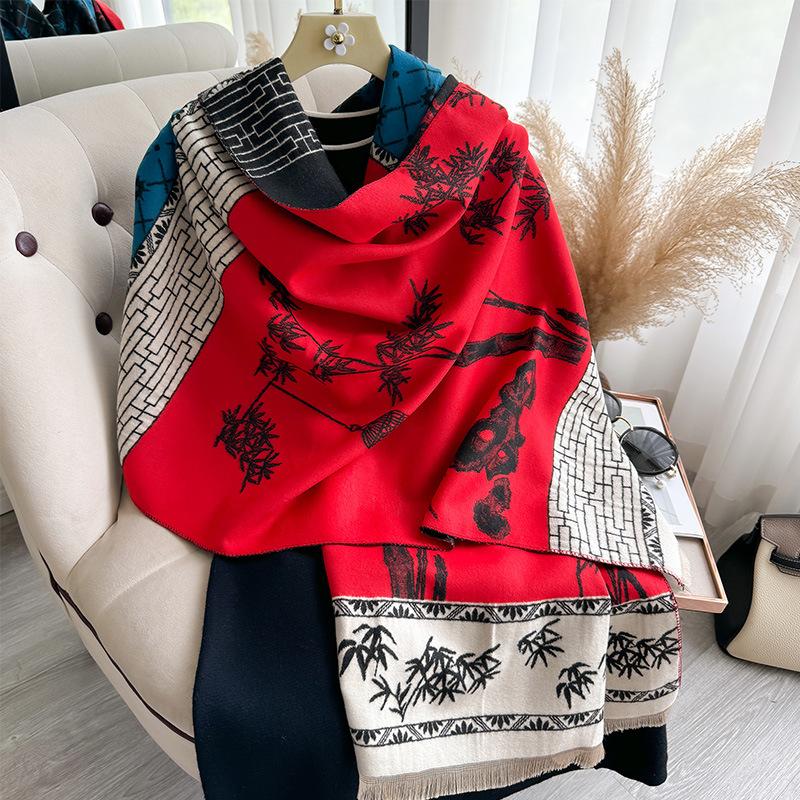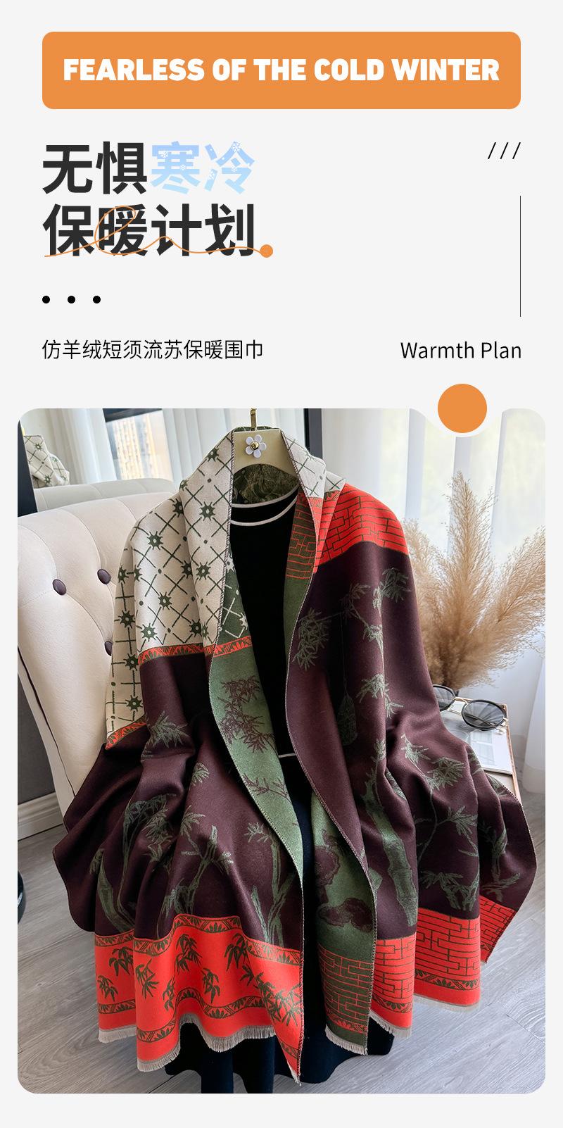 Bufanda chal cálida estilo chino con borlas y barba corta de cachemira sintética para mujer, estilo antiguo vintage, para otoño e invierno