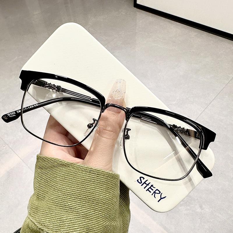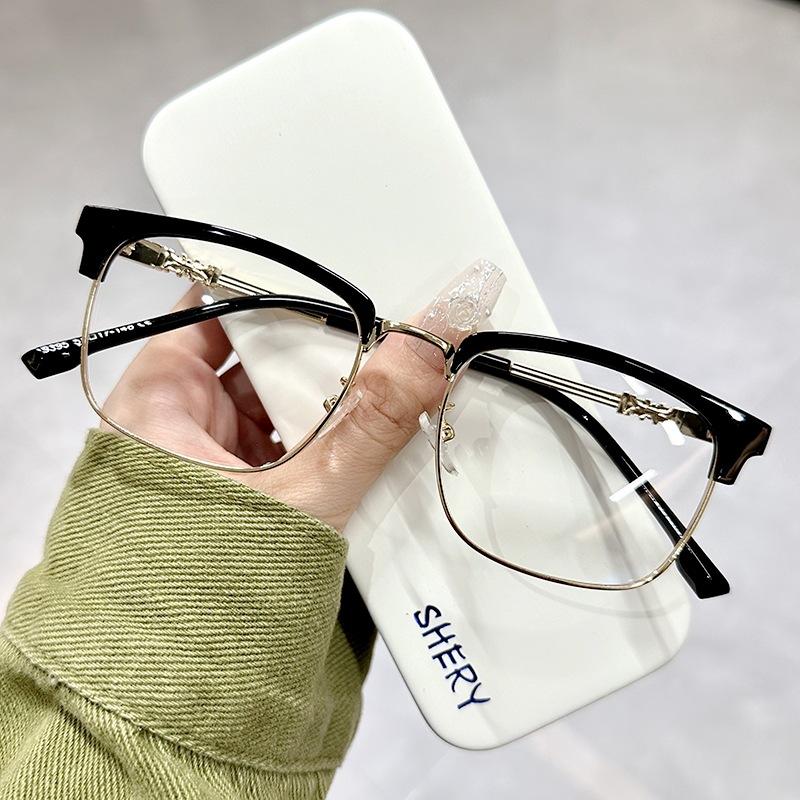 Nuevos Lentes Retro de Media Montura para Hombre Sven Marco de Lentes con Línea de Ceja para Vista Corta para Mujer Lentes Llanos Antiluz Azul