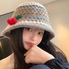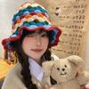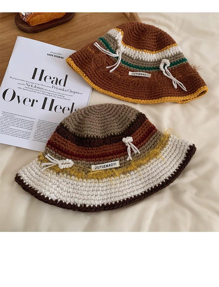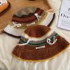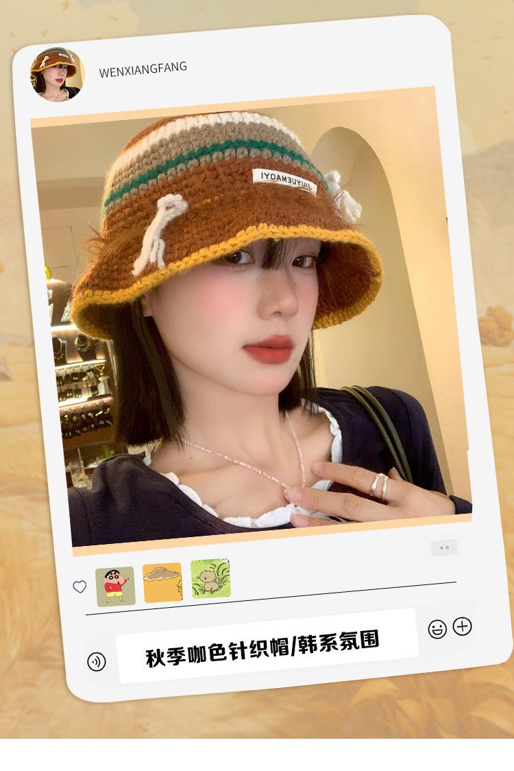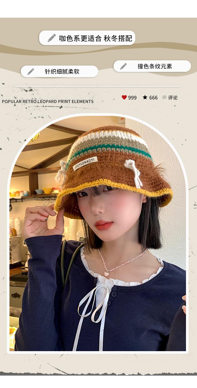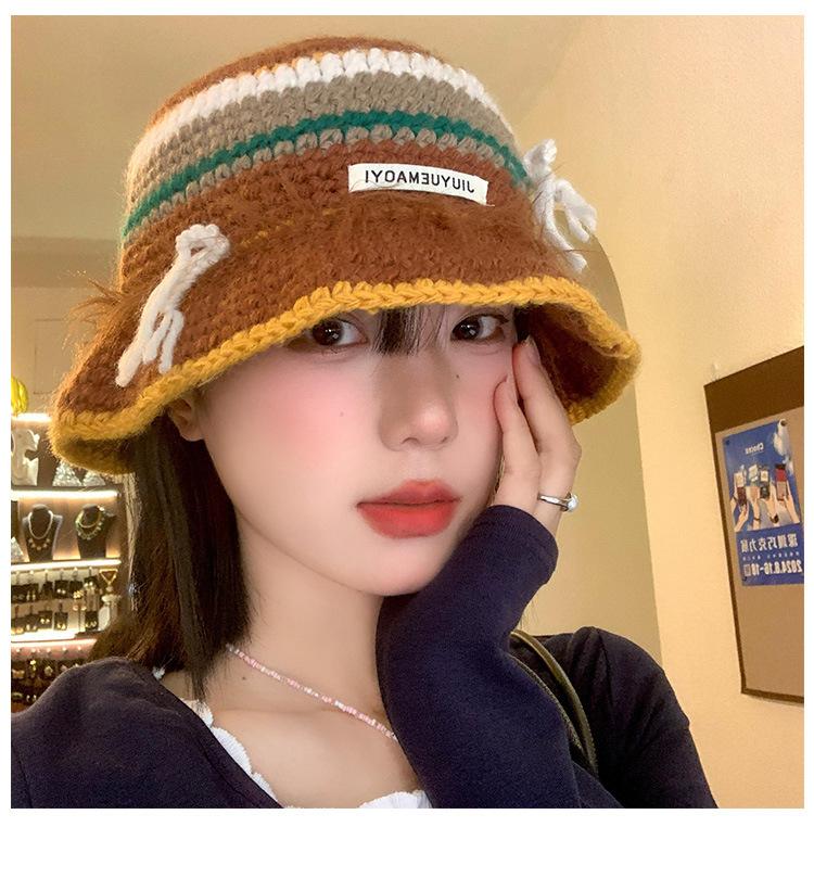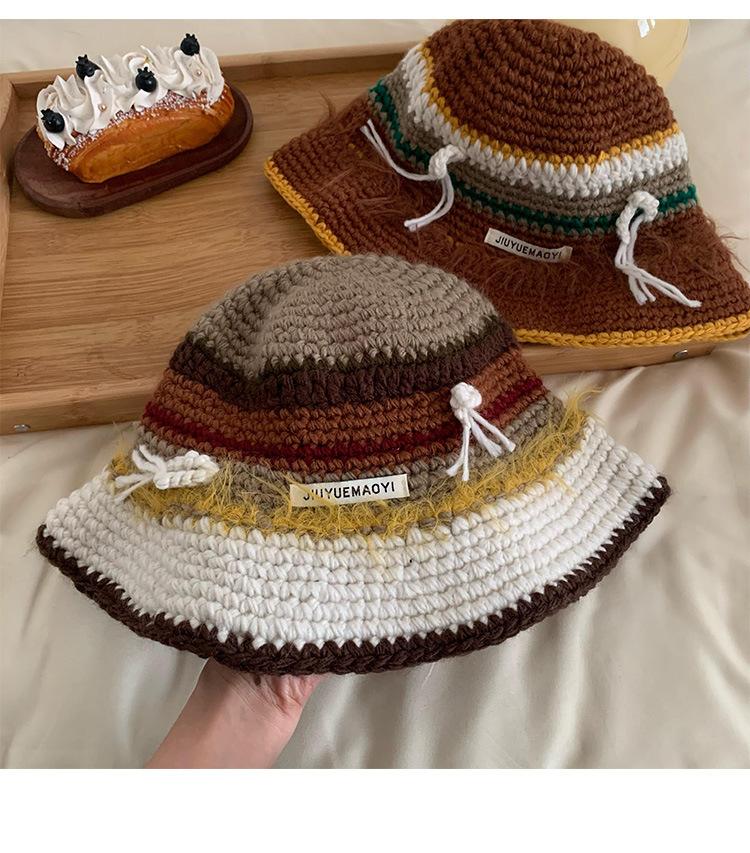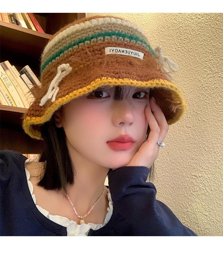 Sombrero de Pescador de Punto Japonés de Rayas con Combinación de Colores de Otoño e Invierno para Mujer, Retro, Combinable con Todo, Tipo Cubo para Cabeza Grande y Gorro de Lana Pequeño