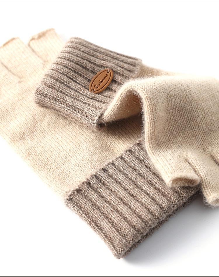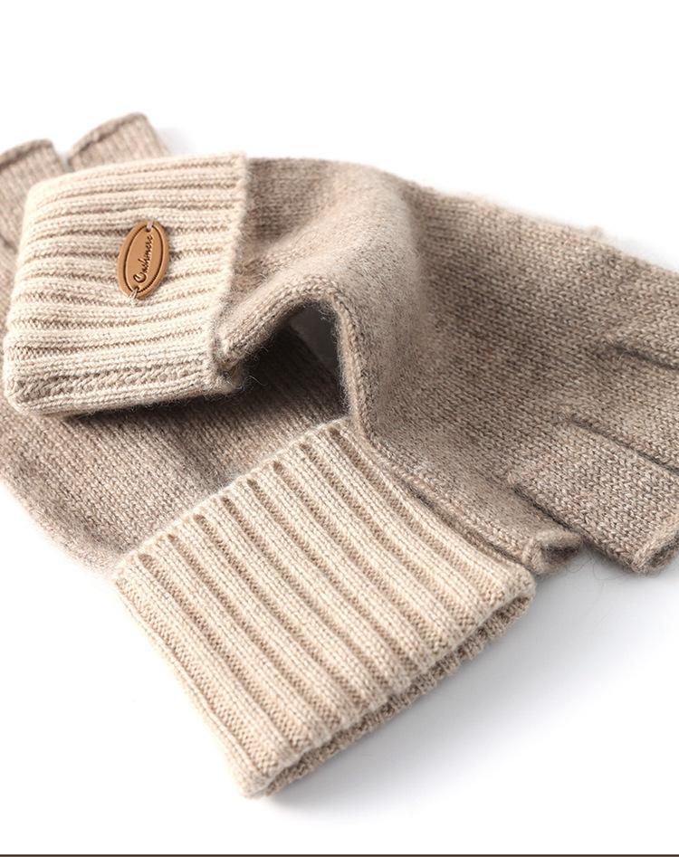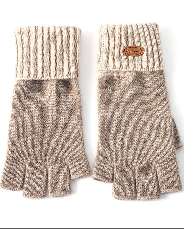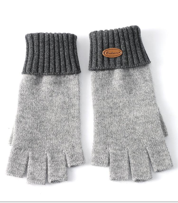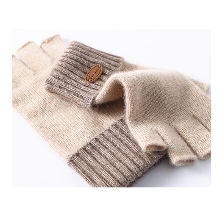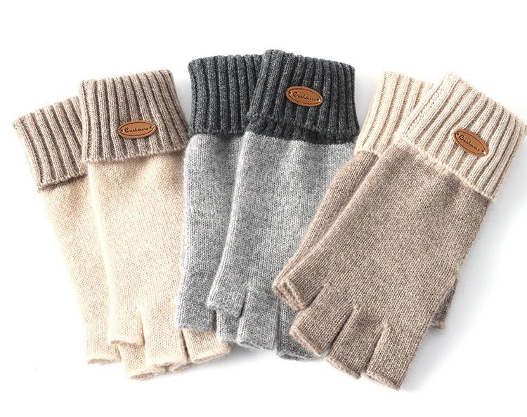 Guantes de medio dedo de cachemira para mujer, 100 % cachemira pura, otoño e invierno, nuevos guantes cálidos de punto con dedos abiertos y resistentes al frío.