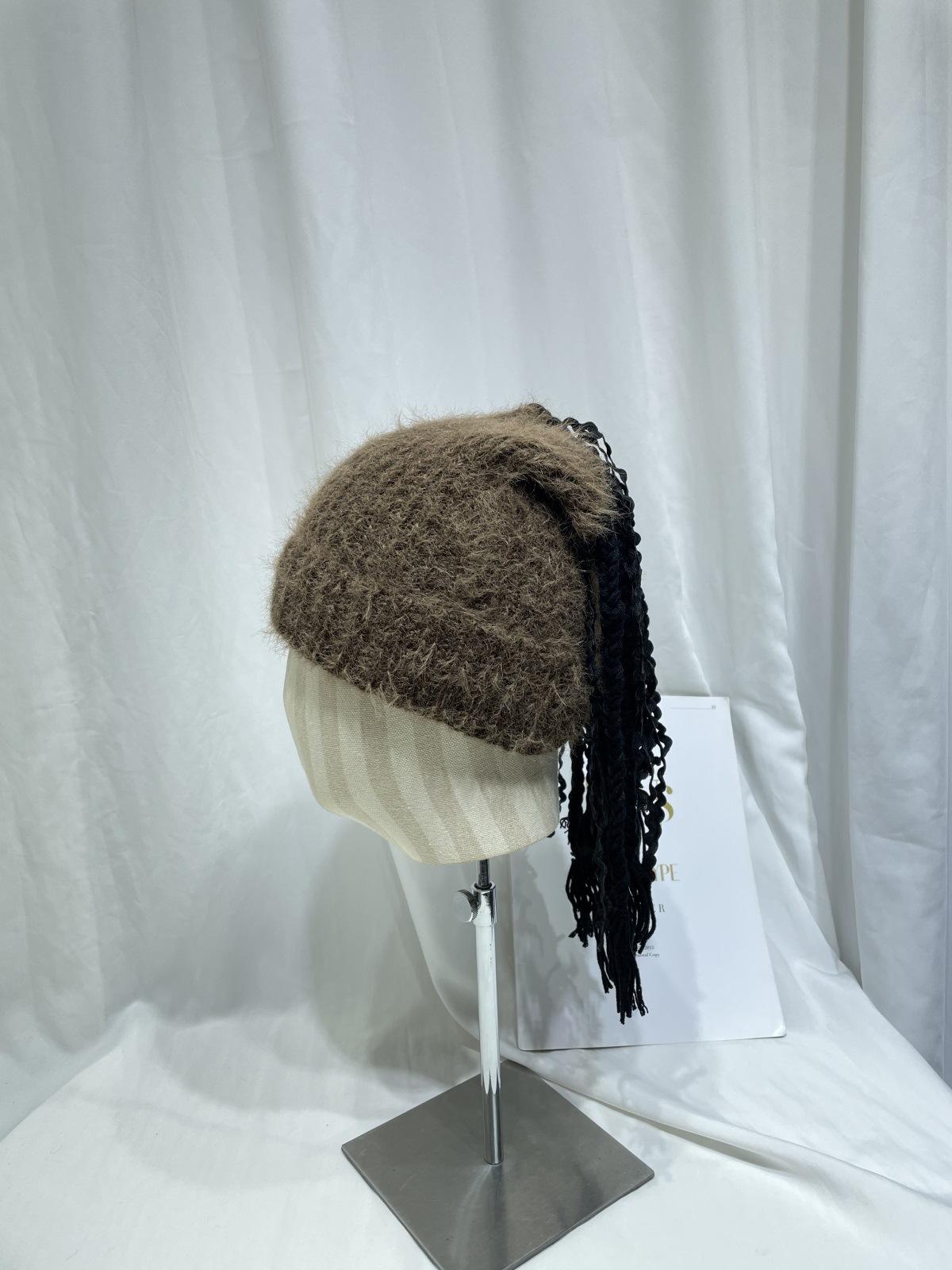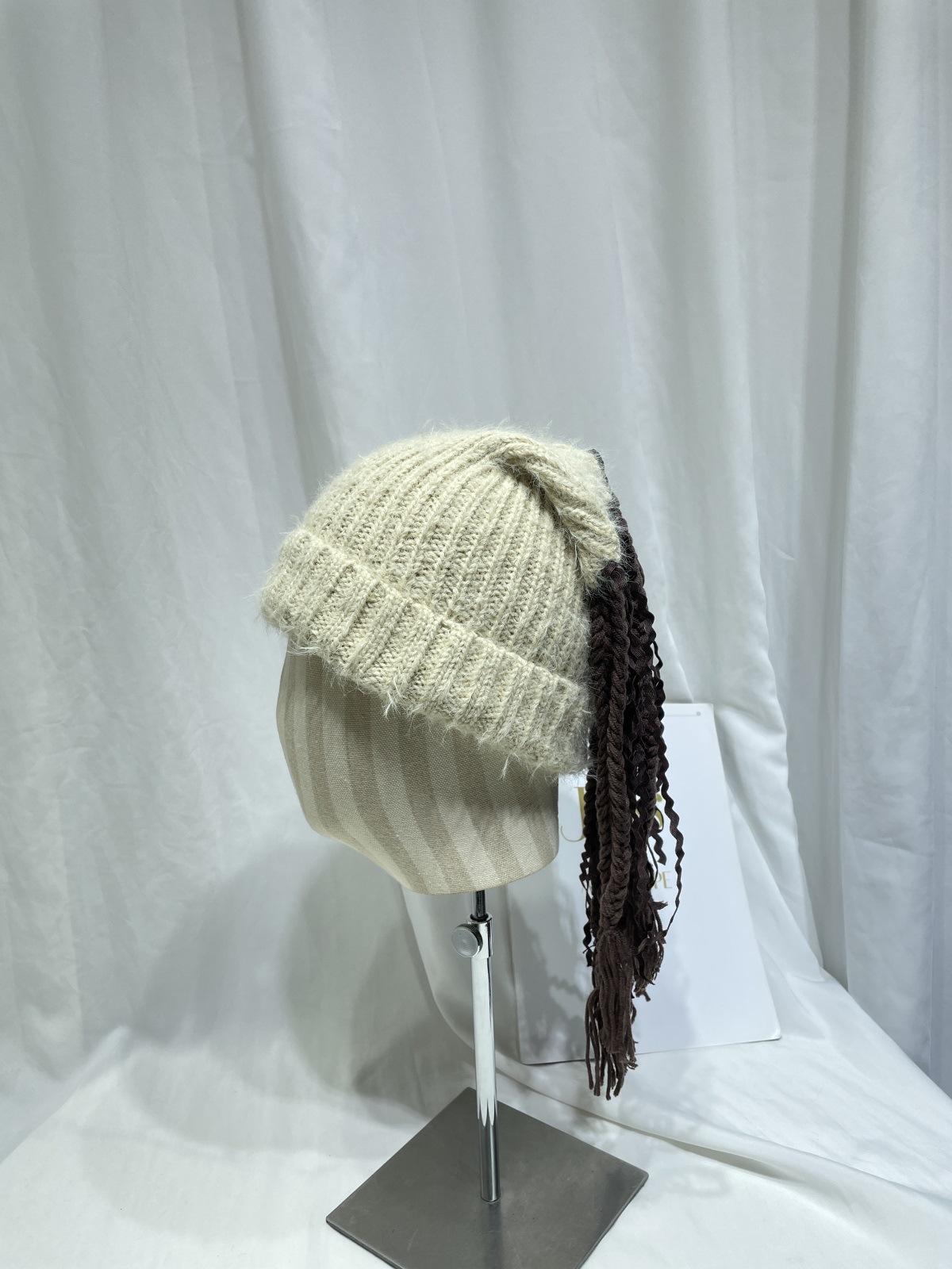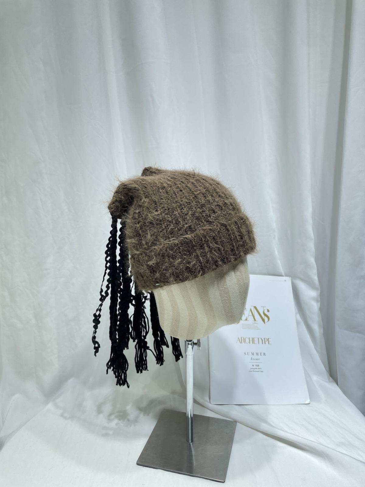 Gorro de lana con borlas y trenzas sucias para mujer, estilo nicho de diseñador, cálido para otoño e invierno, para hombre.