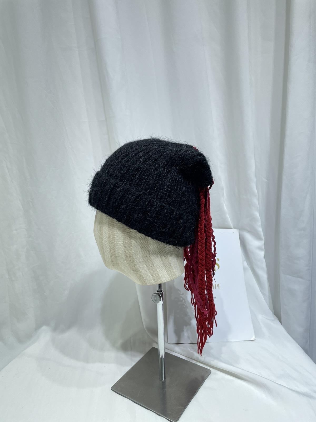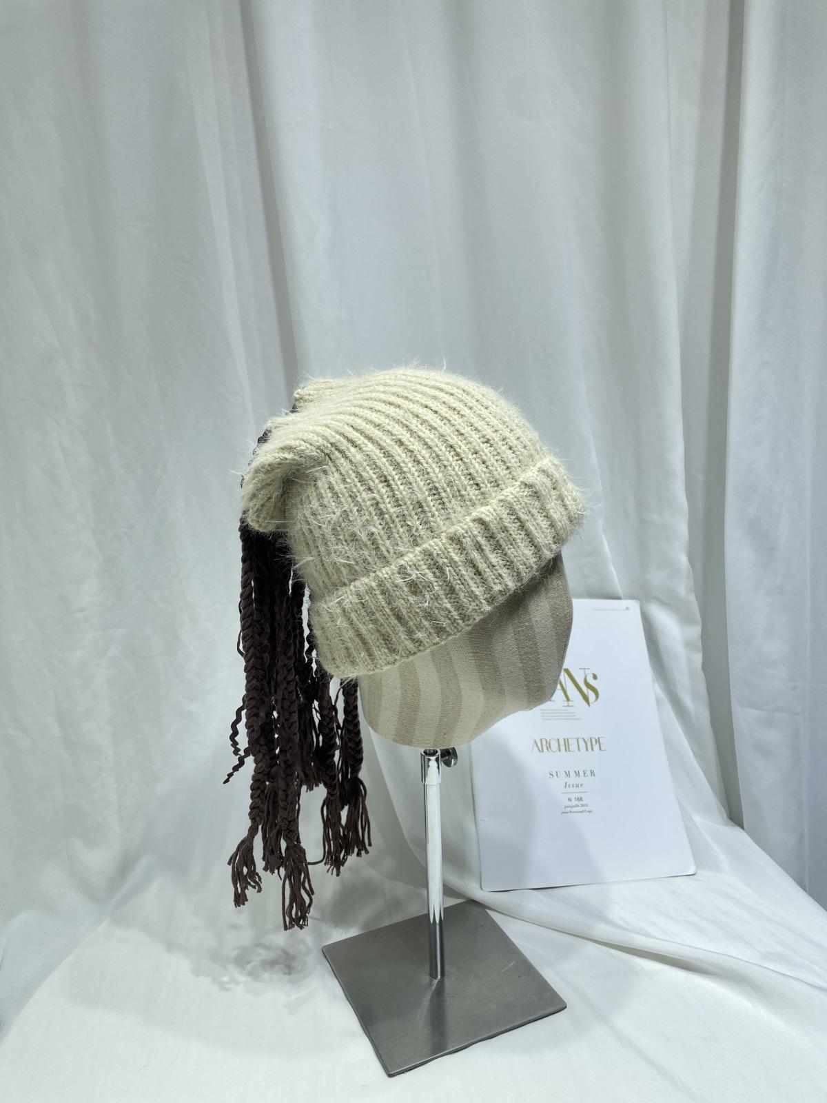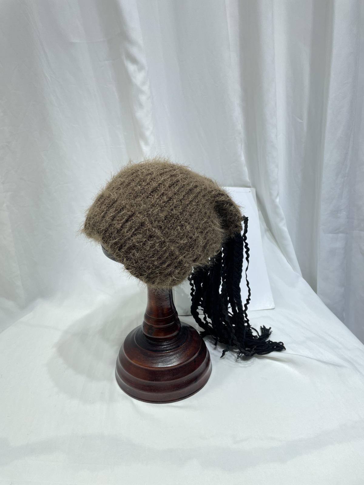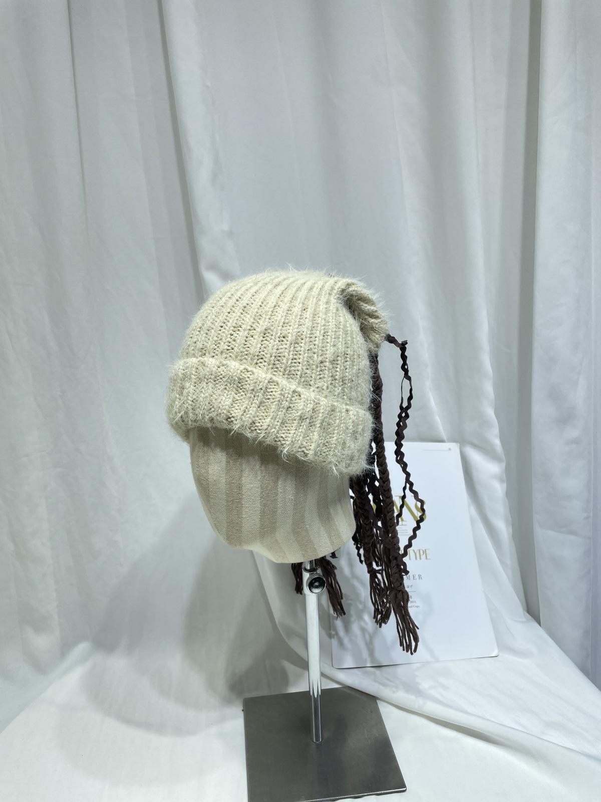 Gorro de lana con borlas y trenzas sucias para mujer, estilo nicho de diseñador, cálido para otoño e invierno, para hombre.