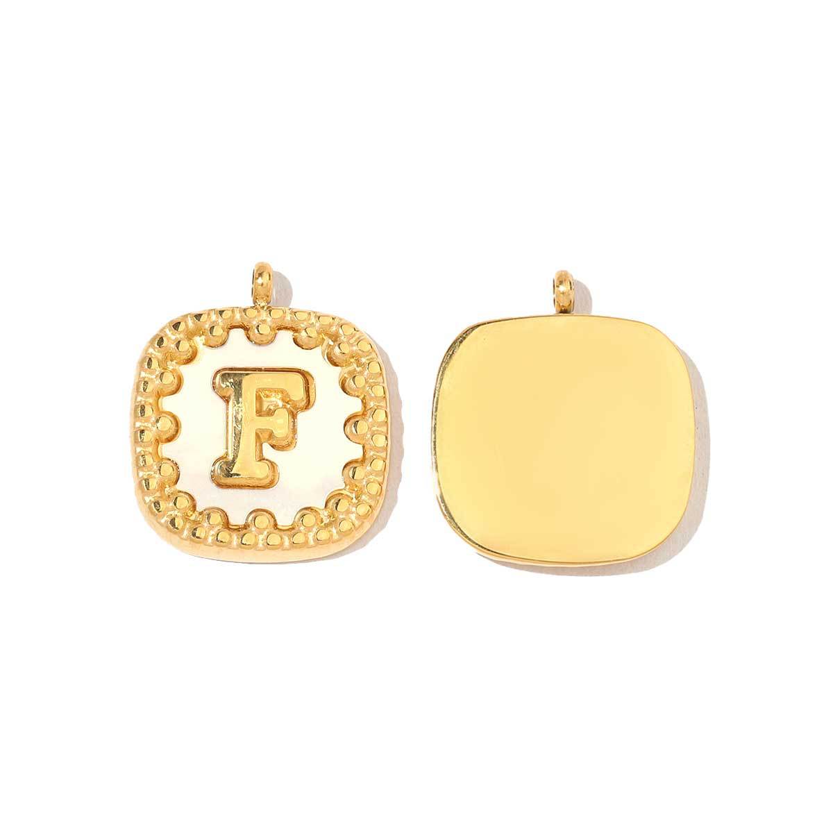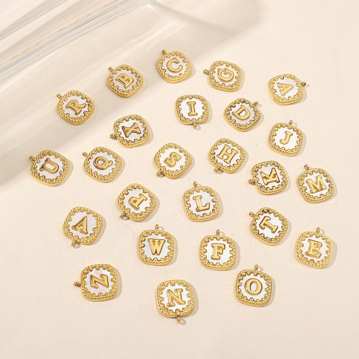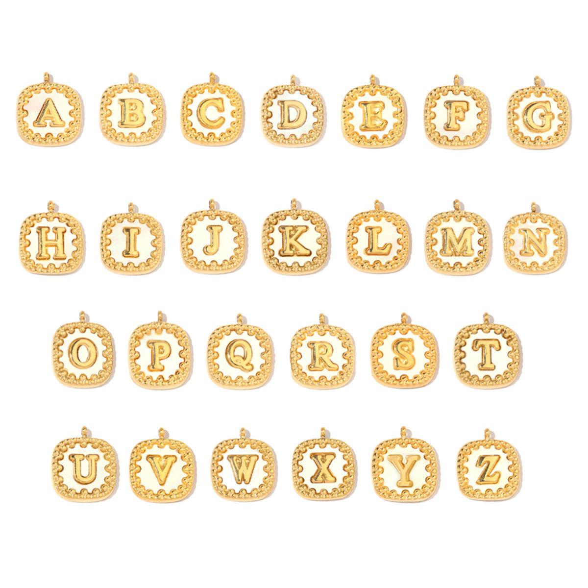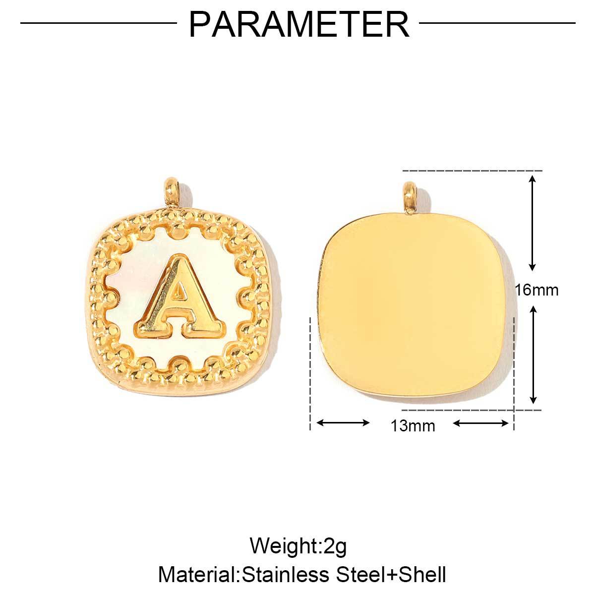 Francés oro real de 14k cuadrado acero inoxidable letra concha colgante letra nombre inglés accesorios de joyería diy colgante