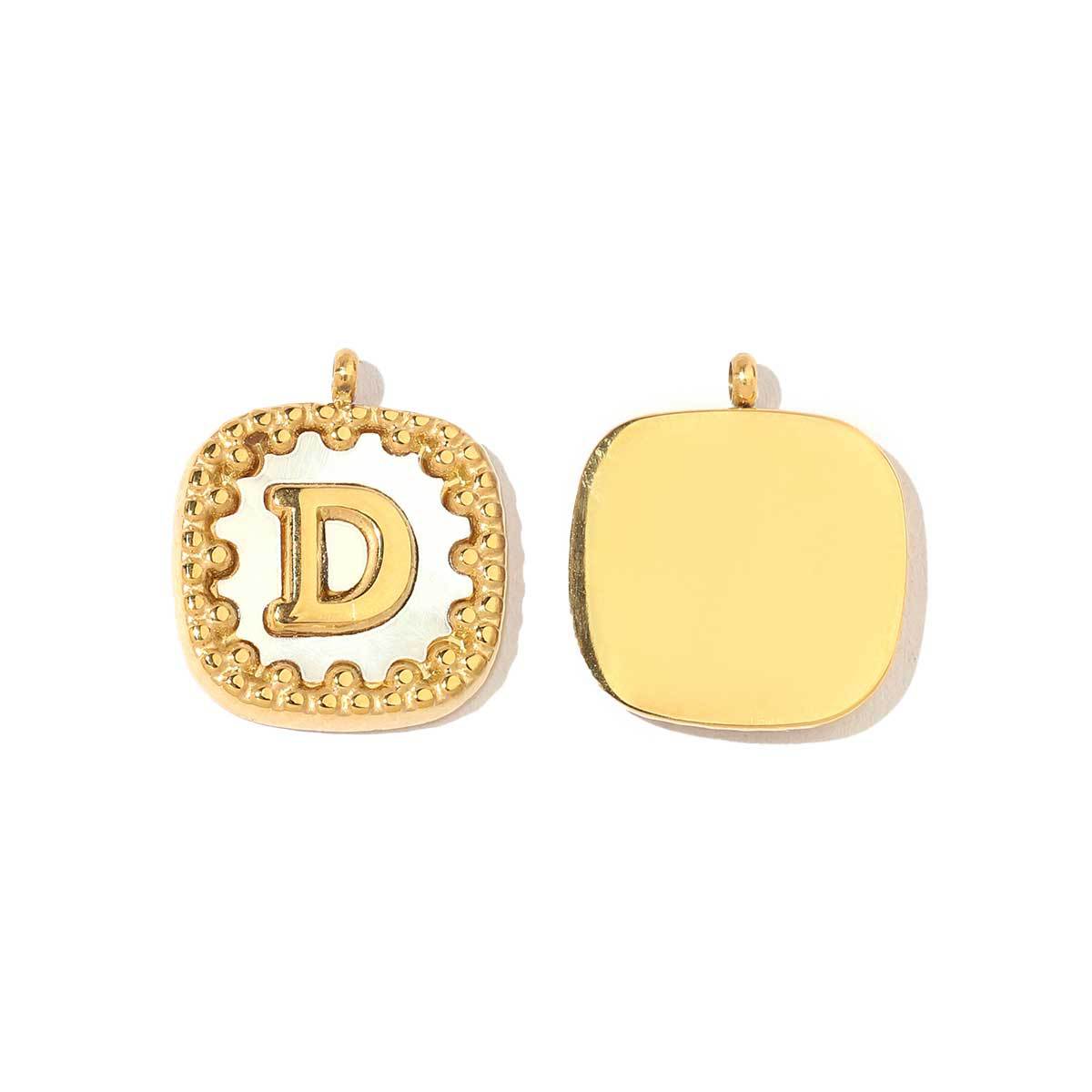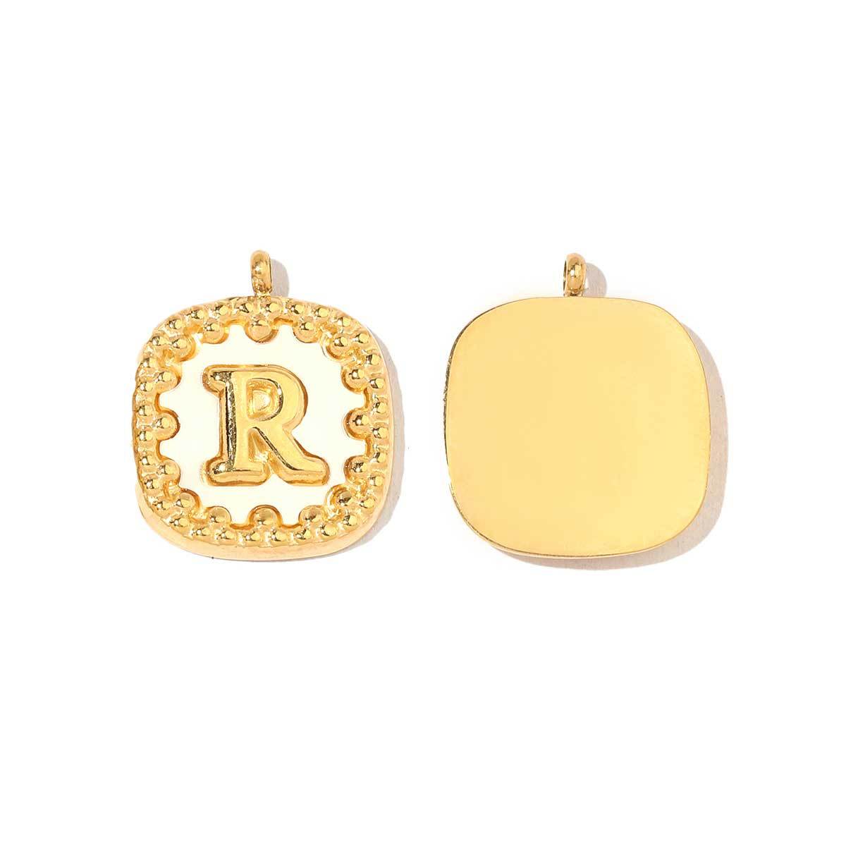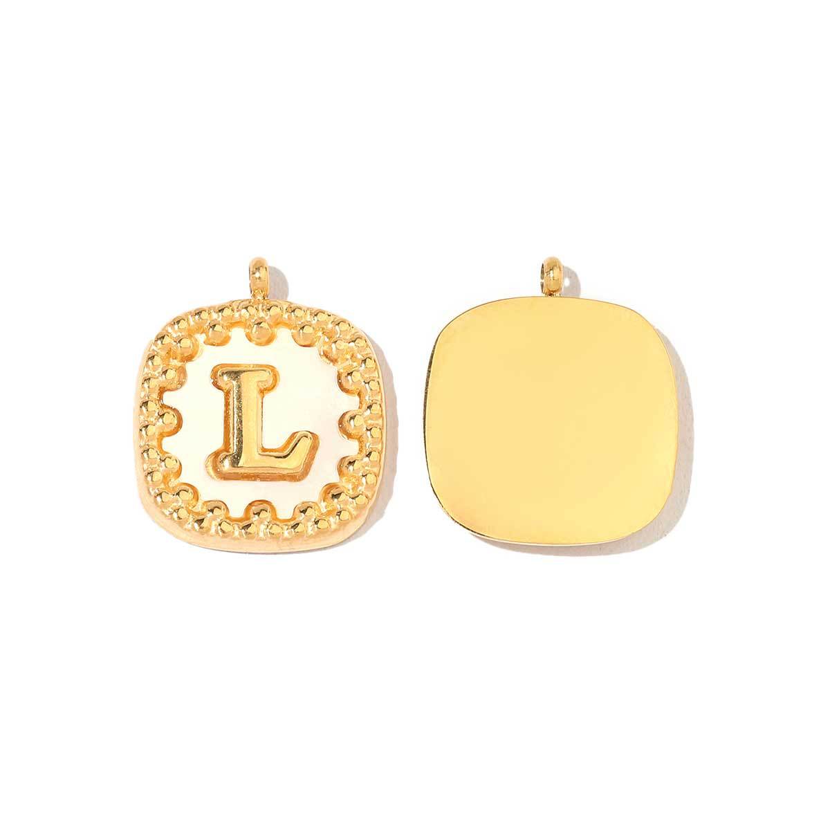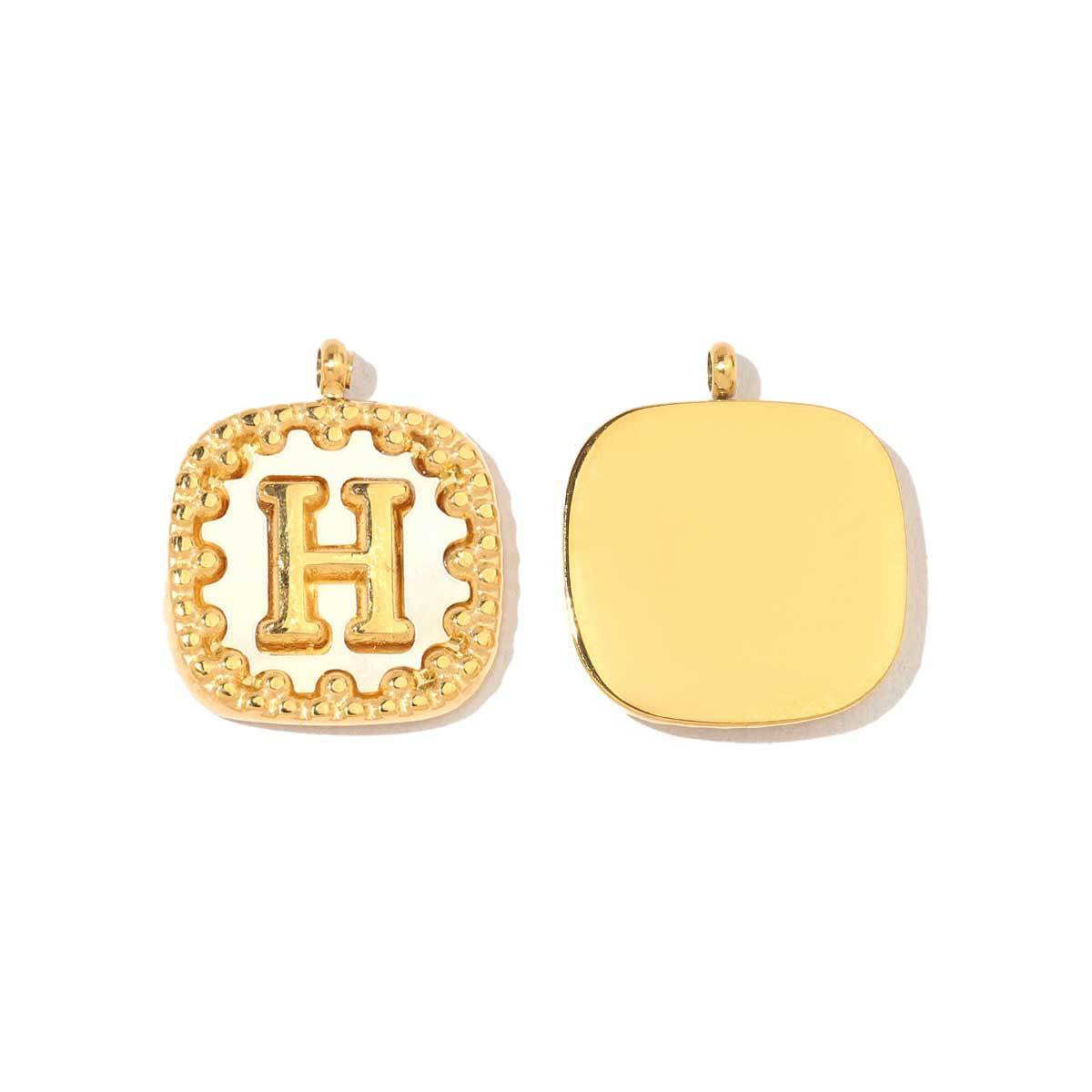Francés oro real de 14k cuadrado acero inoxidable letra concha colgante letra nombre inglés accesorios de joyería diy colgante