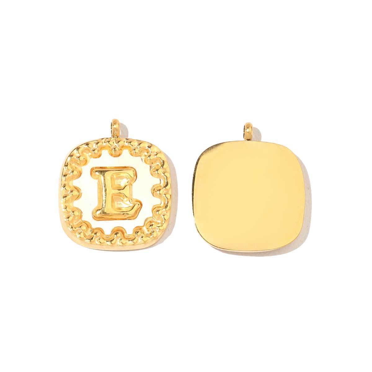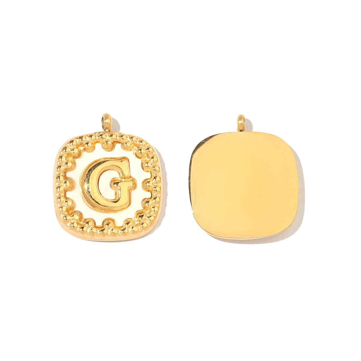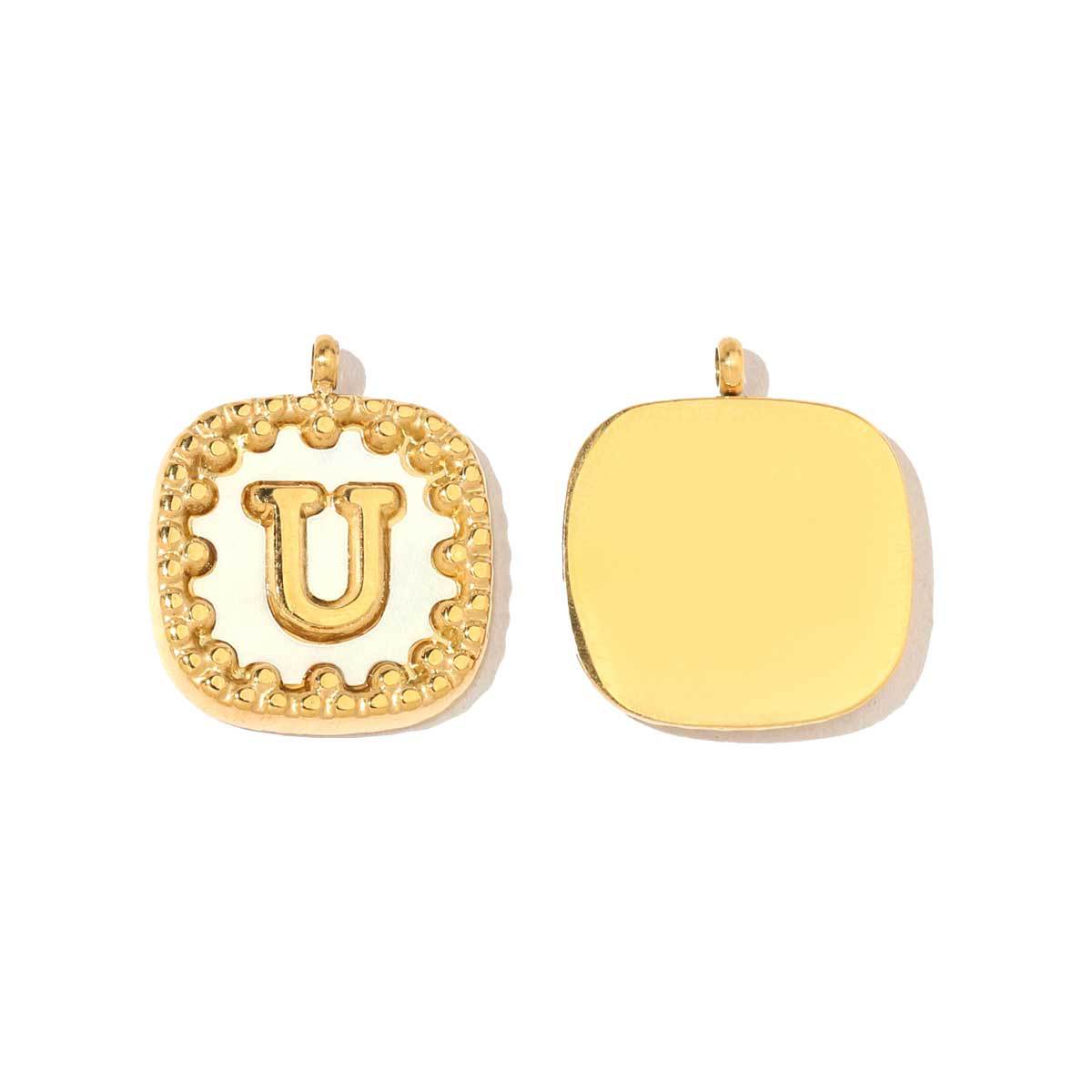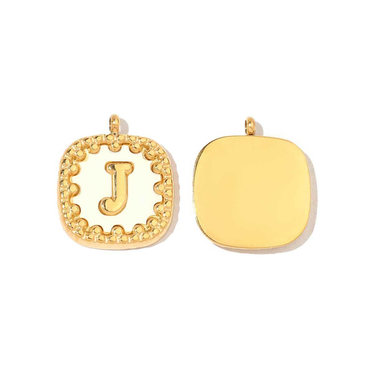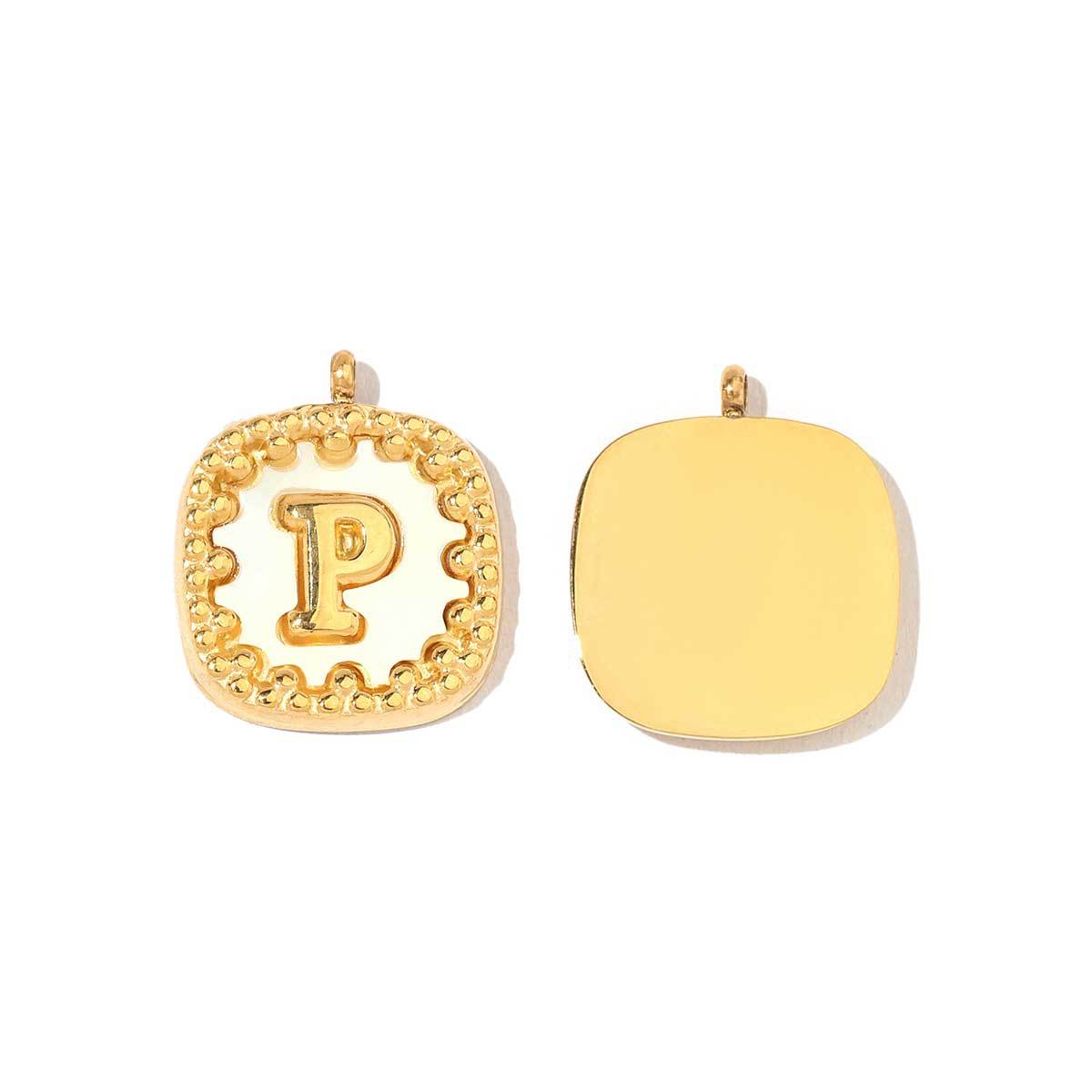 Francés oro real de 14k cuadrado acero inoxidable letra concha colgante letra nombre inglés accesorios de joyería diy colgante