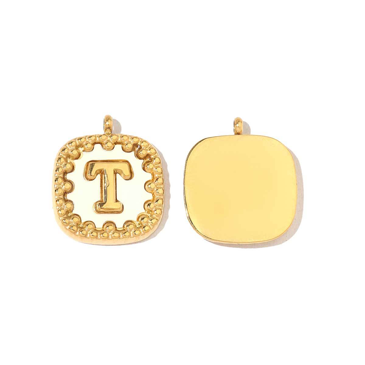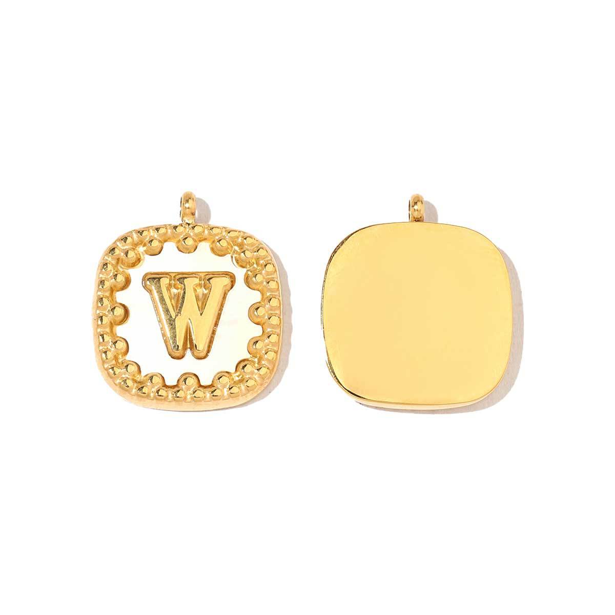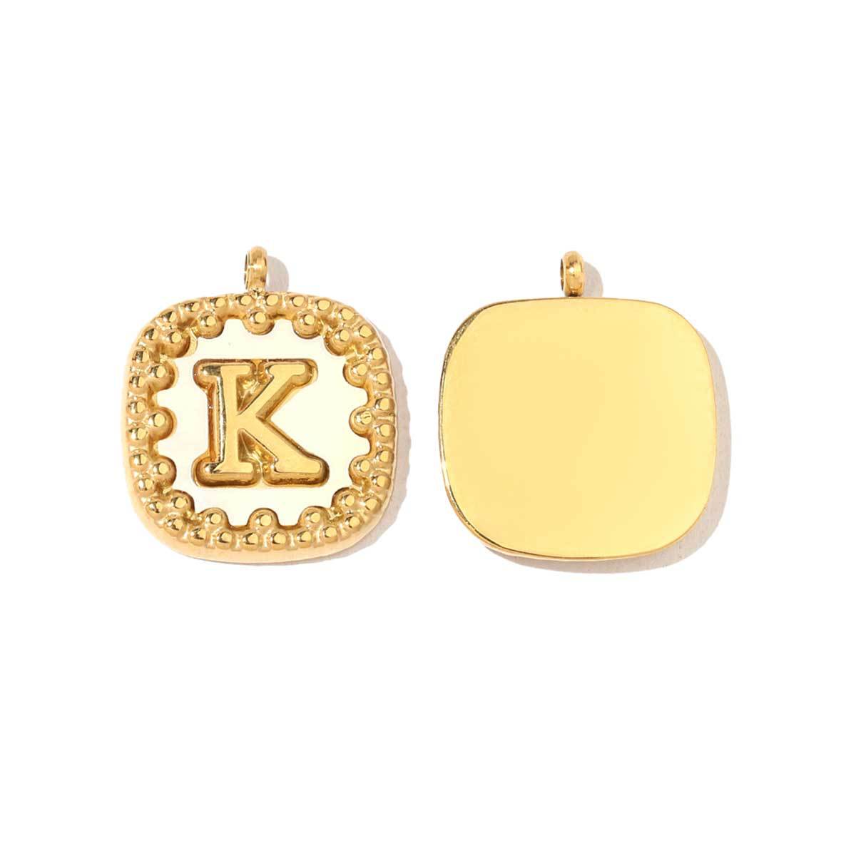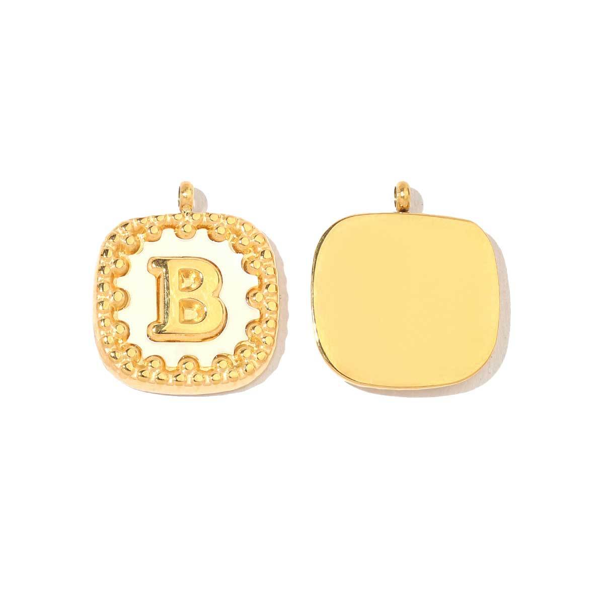 Francés oro real de 14k cuadrado acero inoxidable letra concha colgante letra nombre inglés accesorios de joyería diy colgante