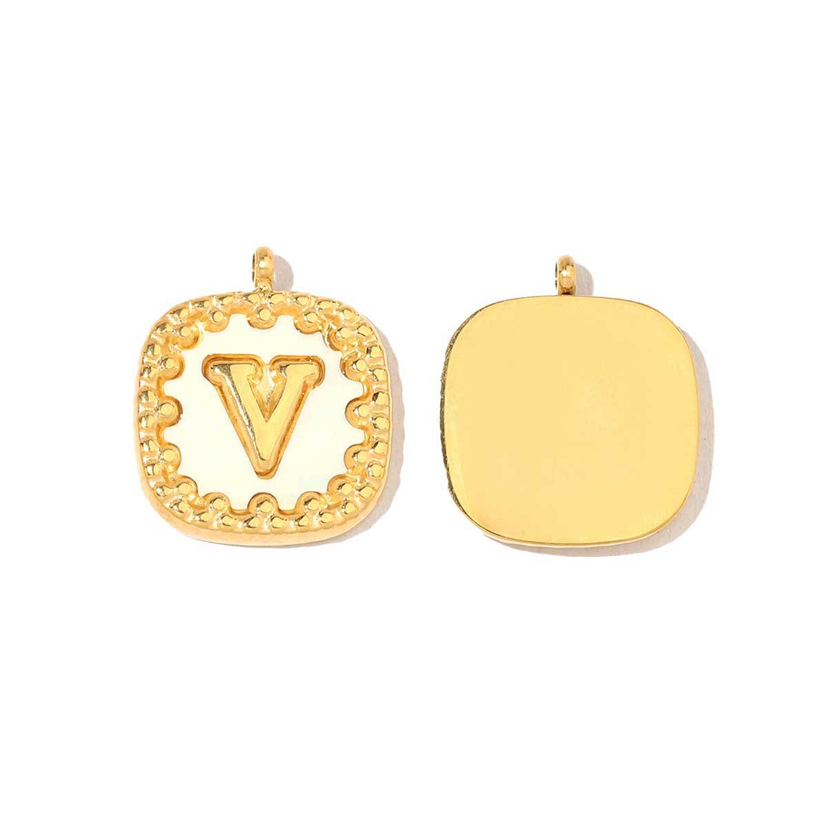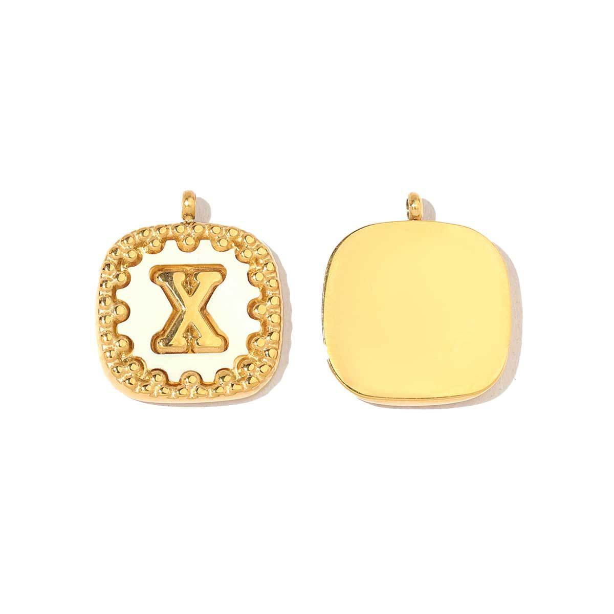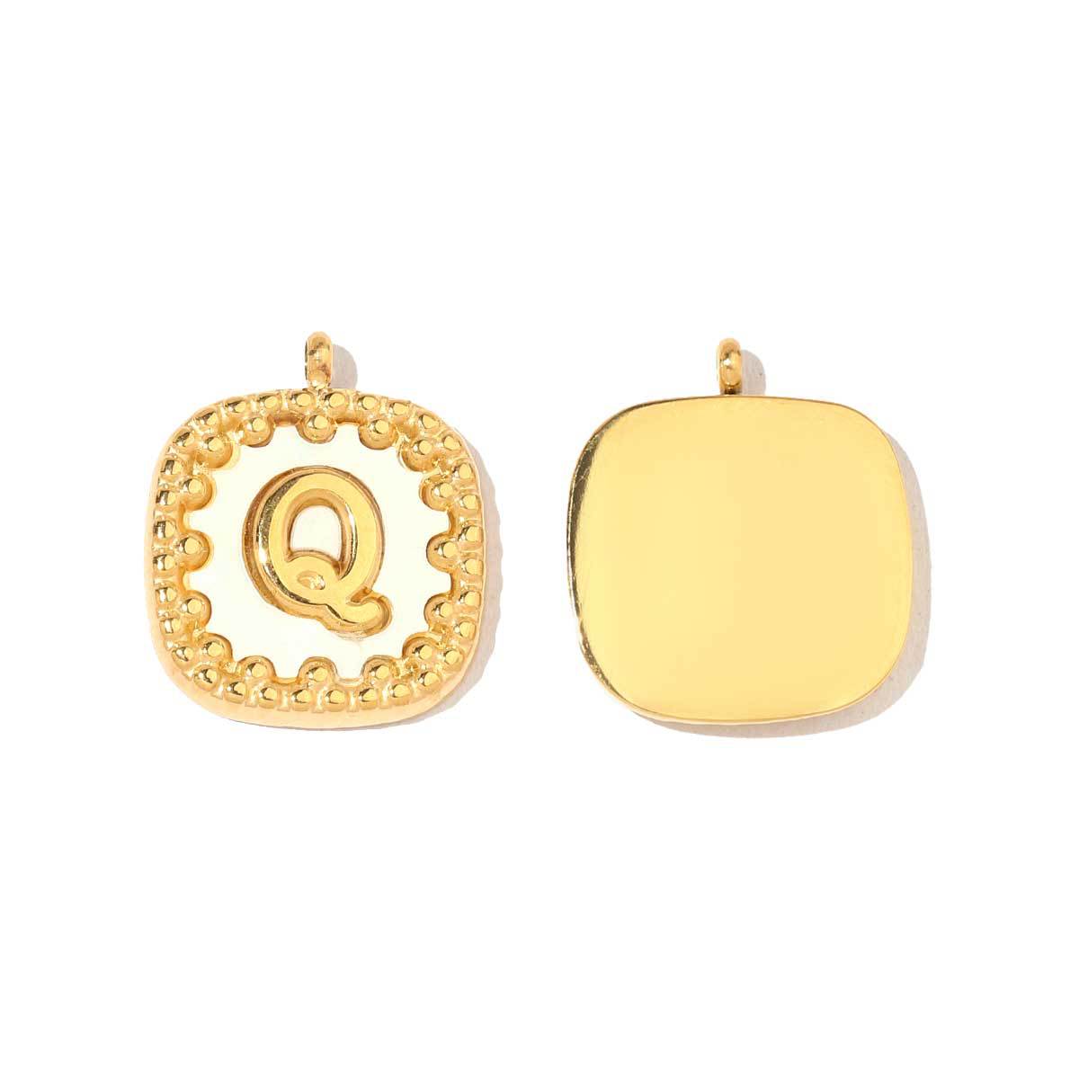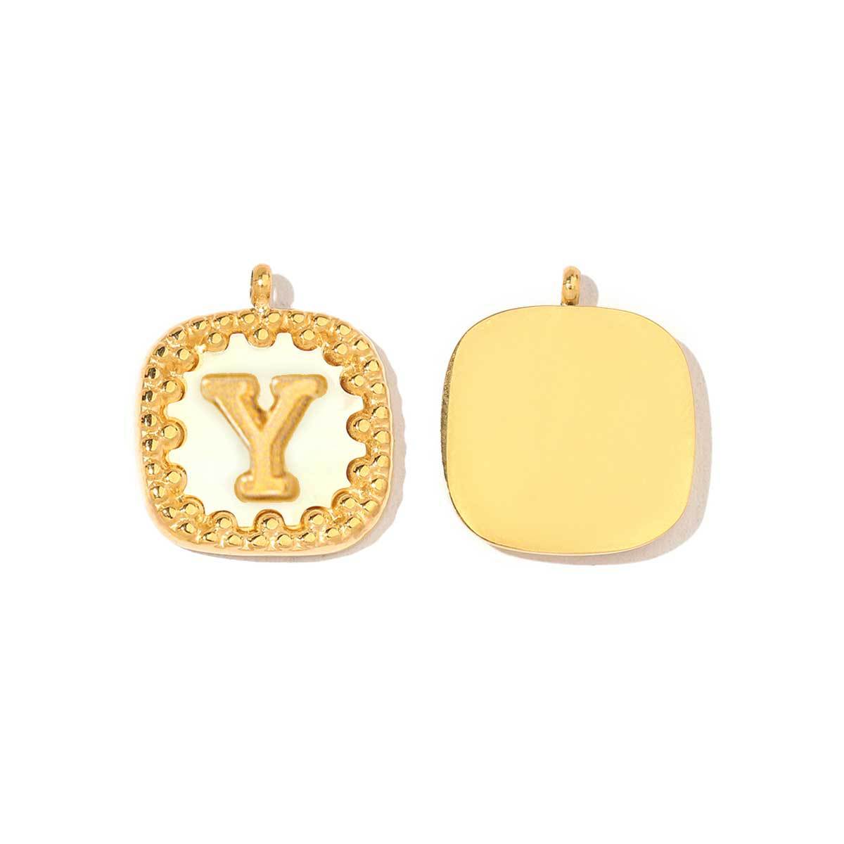 Francés oro real de 14k cuadrado acero inoxidable letra concha colgante letra nombre inglés accesorios de joyería diy colgante