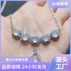 Elegante collar de imitación de piedra natural de hibisco, cristal rosa, chapado en oro rosa, cadena para clavícula, colgante de rosa, joyería femenina de cobre chapado en plata