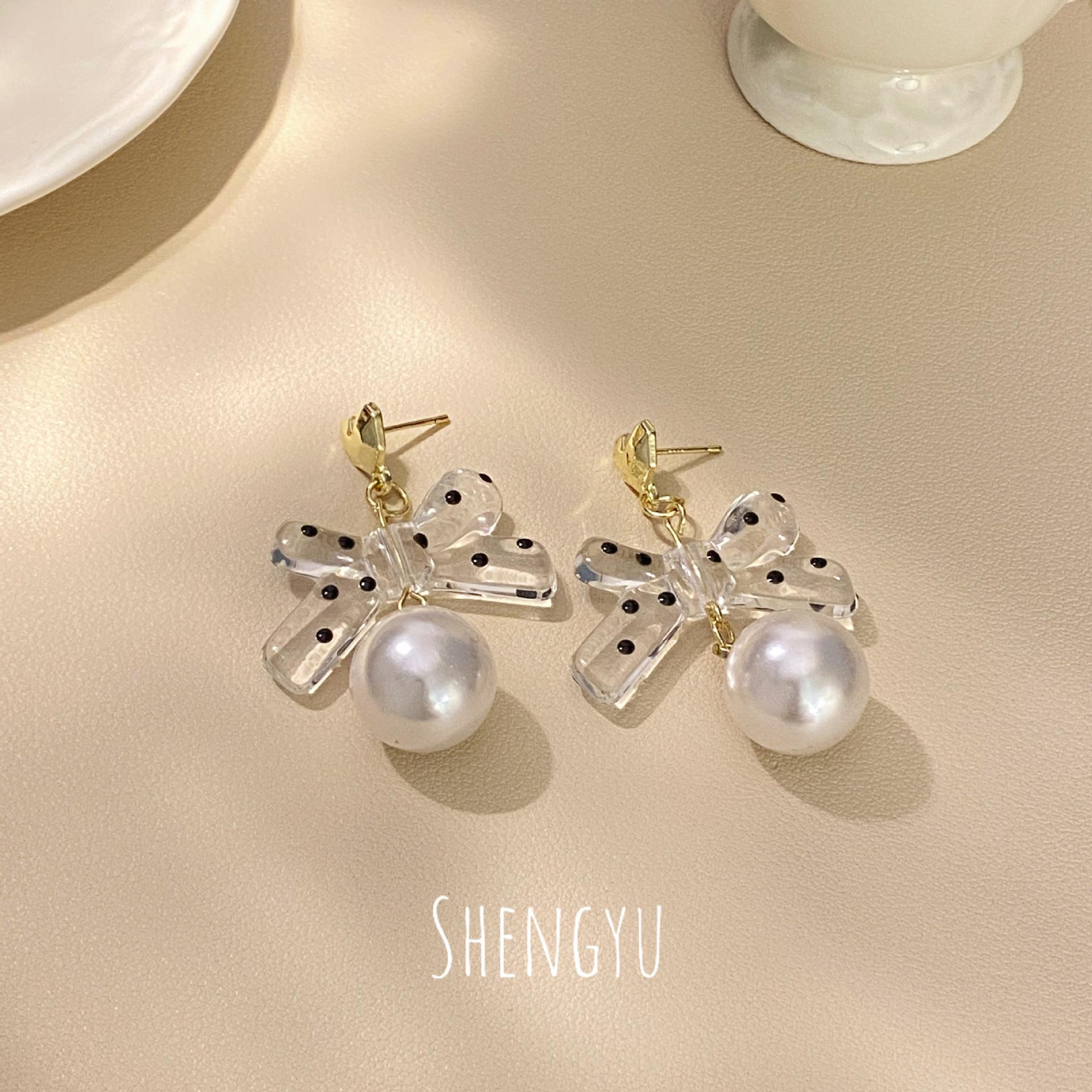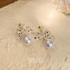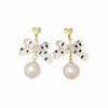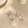 Pendientes pequeños con forma de ola fresca y lazo de perla, temperamento simple y versátil, moda femenina, joyería única para las orejas