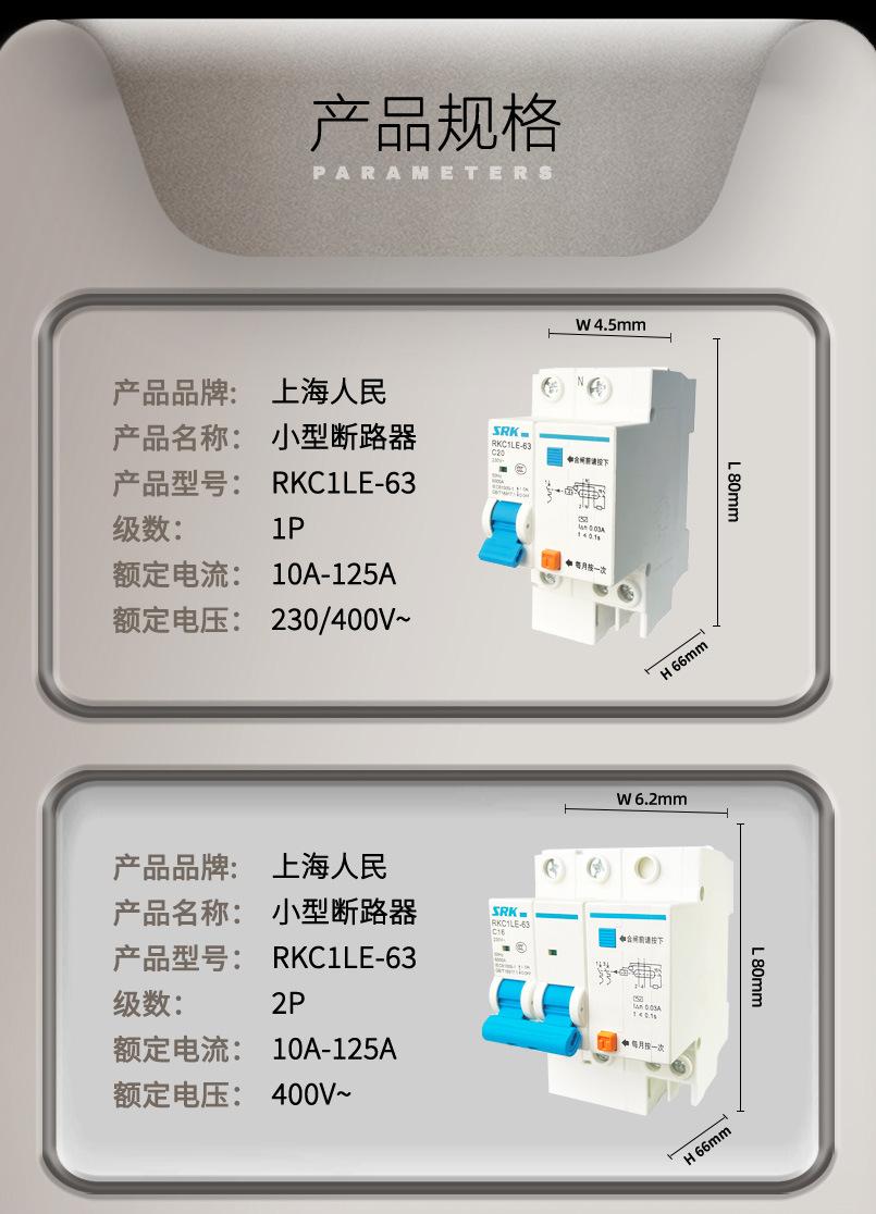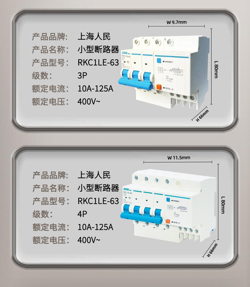 Interruptor Termomagnético en Miniatura Shanghai People's RKC1LE 63A Vacío Interruptor de Aire Protector contra Fugas
