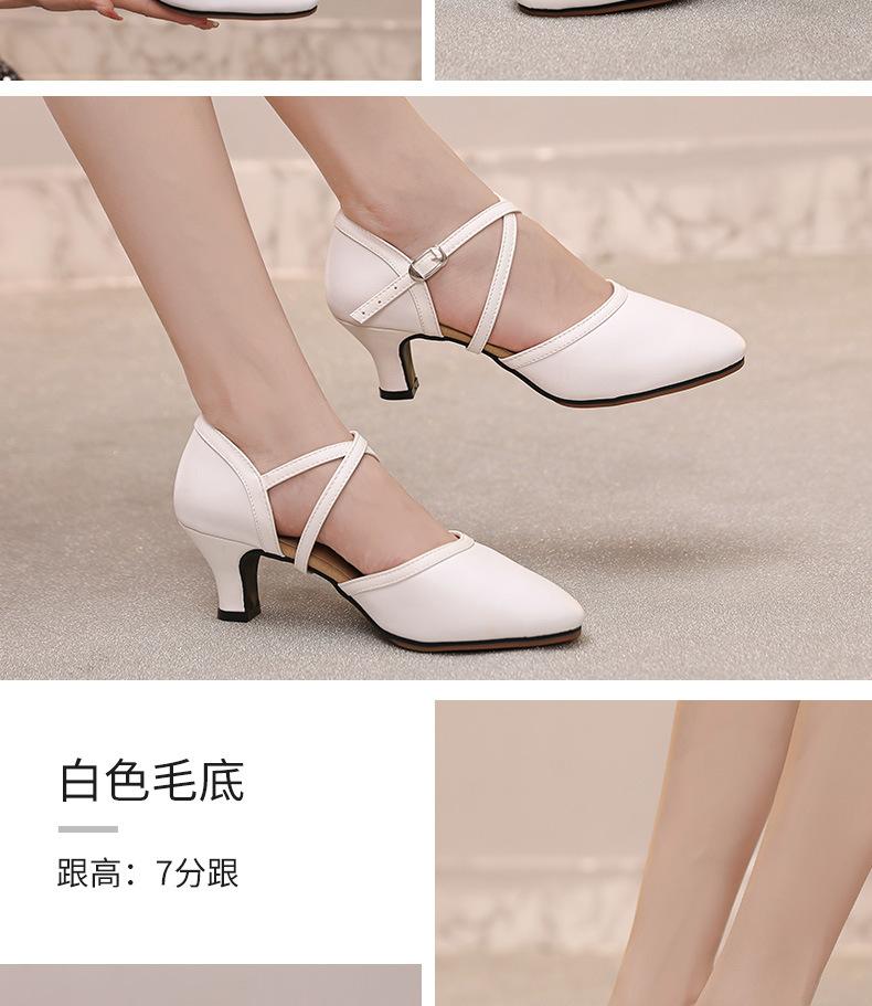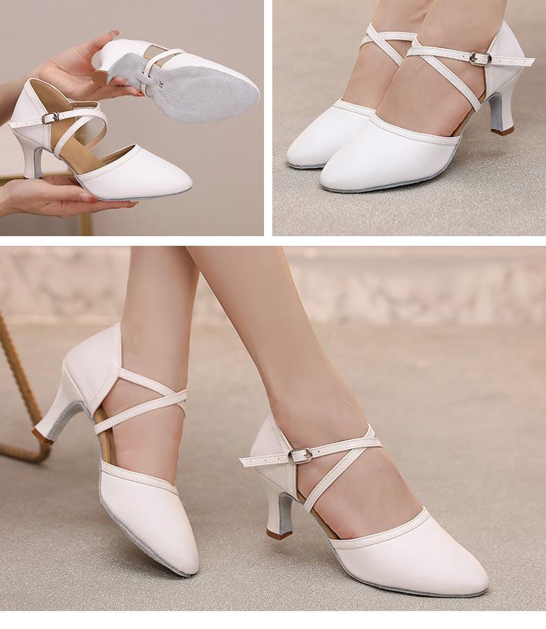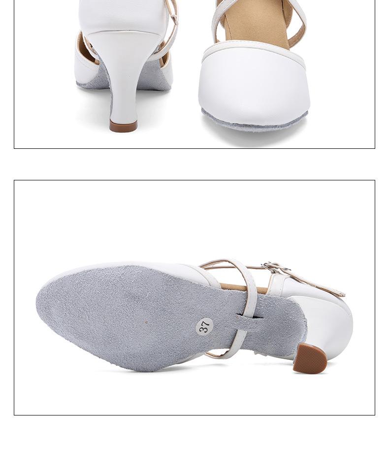 Zapatos de Baile Latino para Mujer, Zapatos de Baile para Adulto, Zapatos de Baile Cuadrado de Tacón Medio-Alto, Sandalias de Media Cubierta de Baile de Salón para Mujer con Suela Blanda