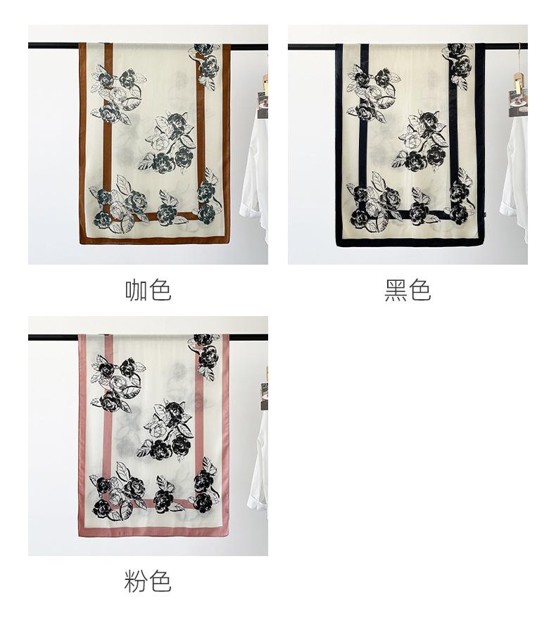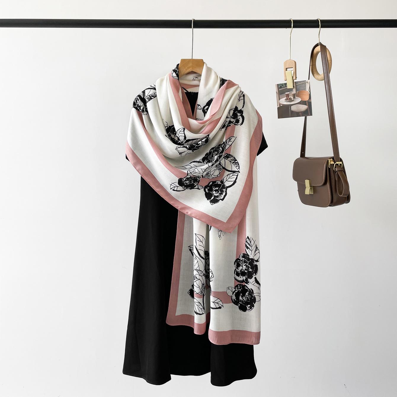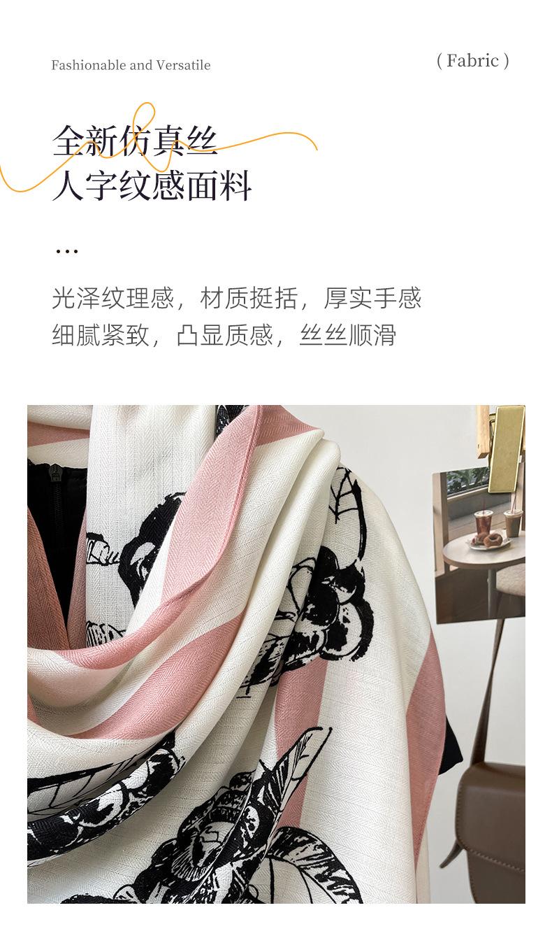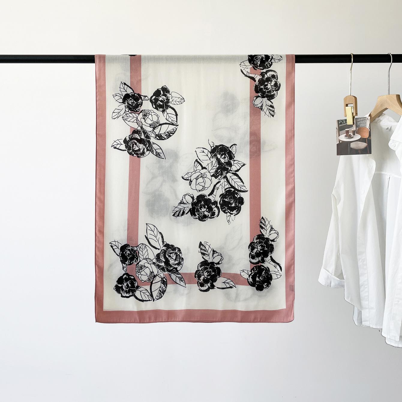 Bufanda de seda de espiga de alta gama para mujer, chal de satén de seda sintética con estampado floral rosa, otoño 2024