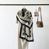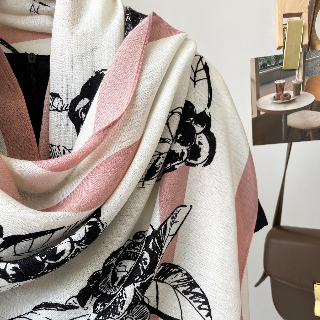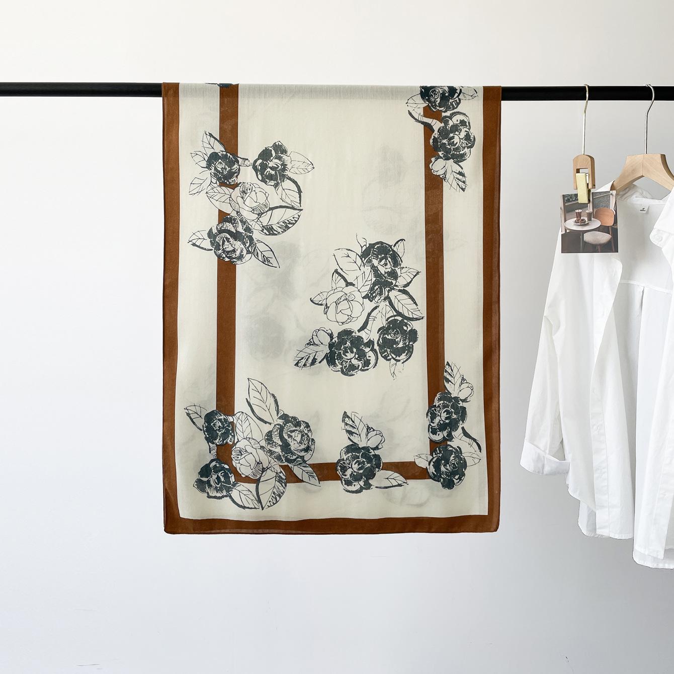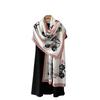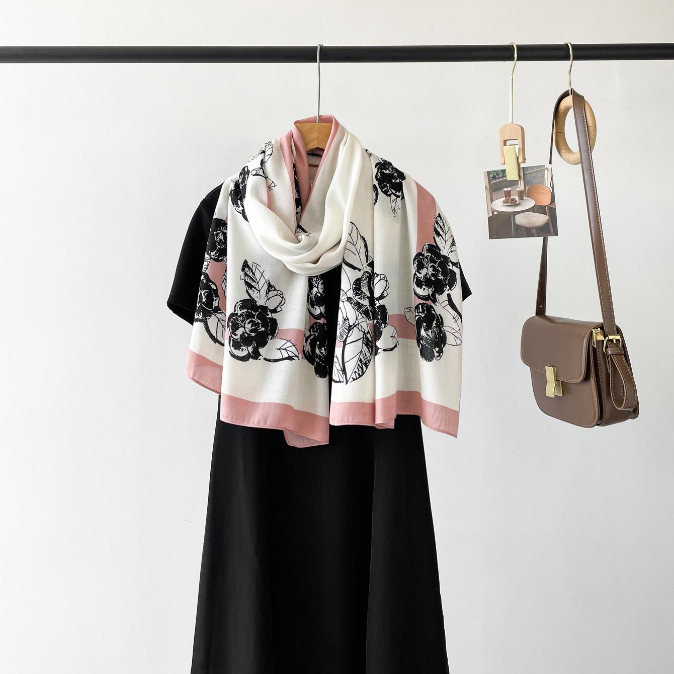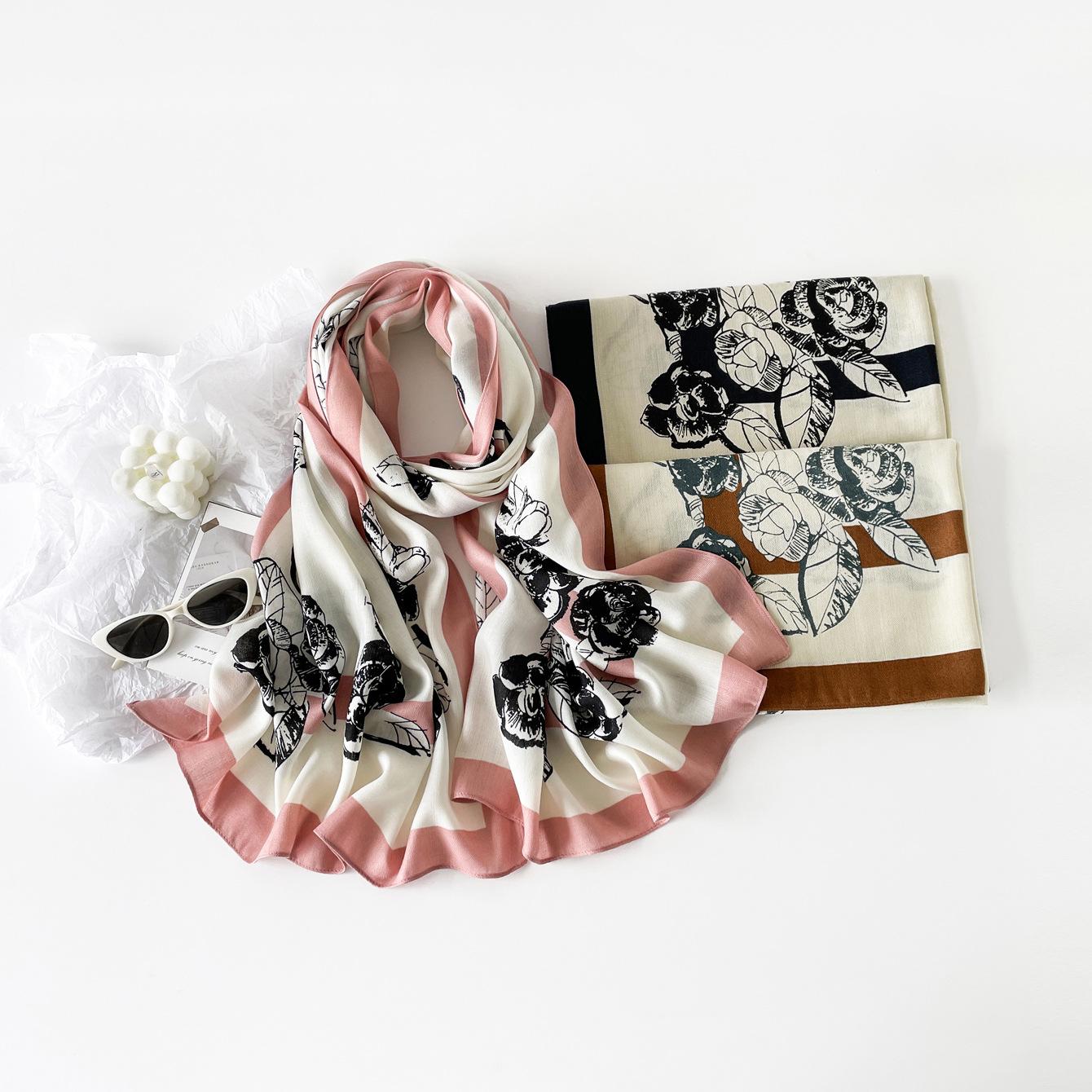 Bufanda de seda de espiga de alta gama para mujer, chal de satén de seda sintética con estampado floral rosa, otoño 2024