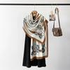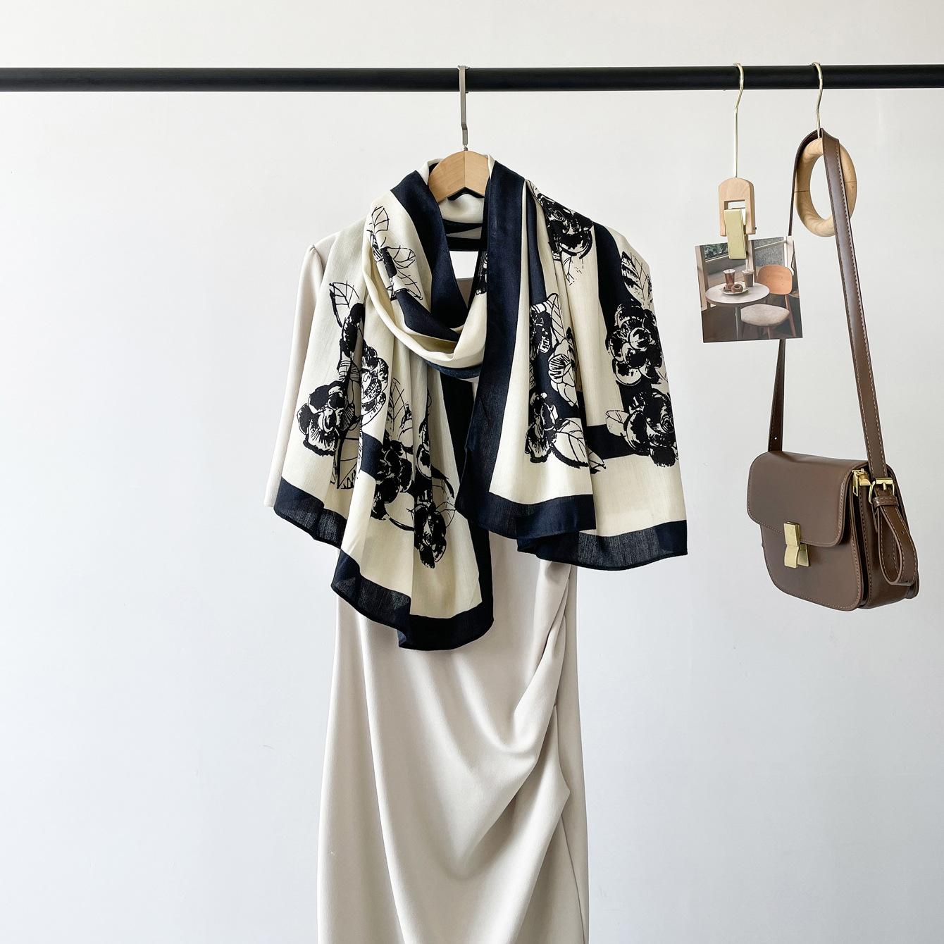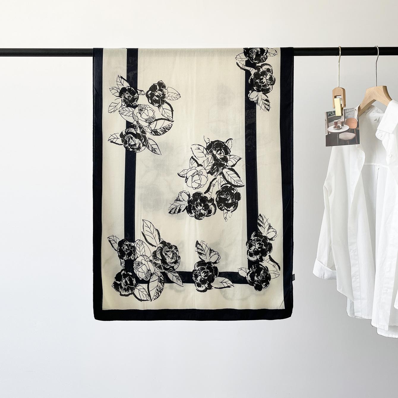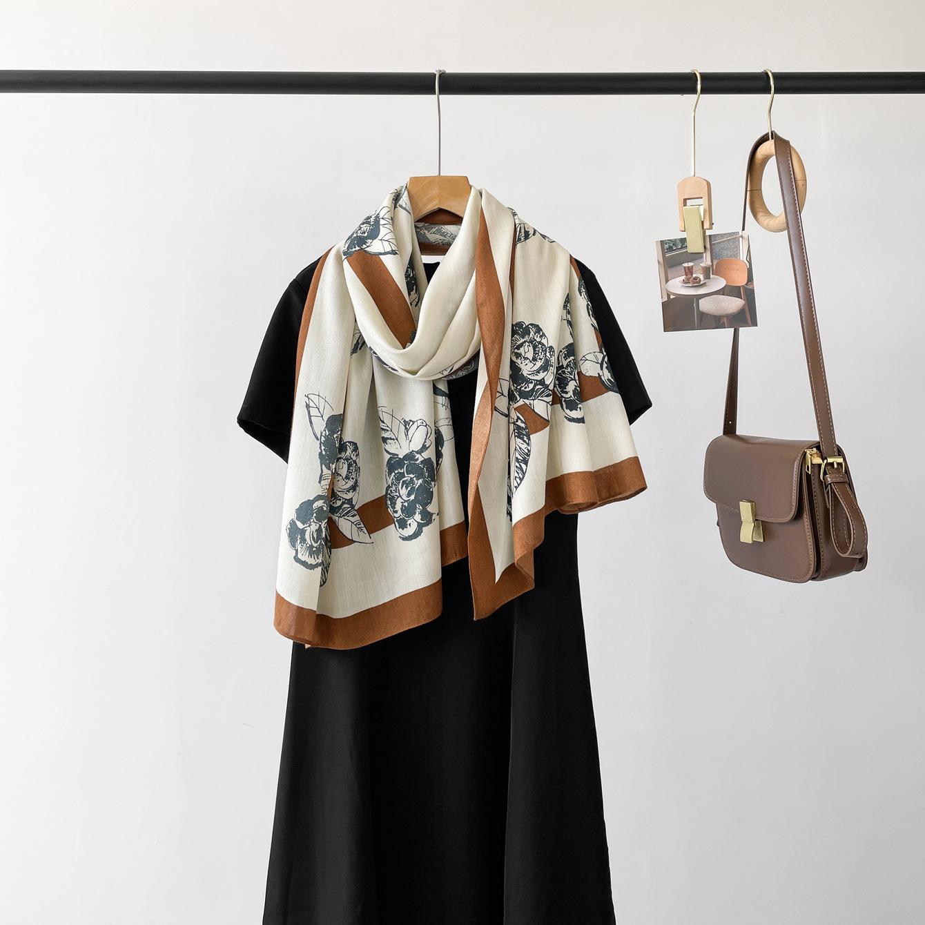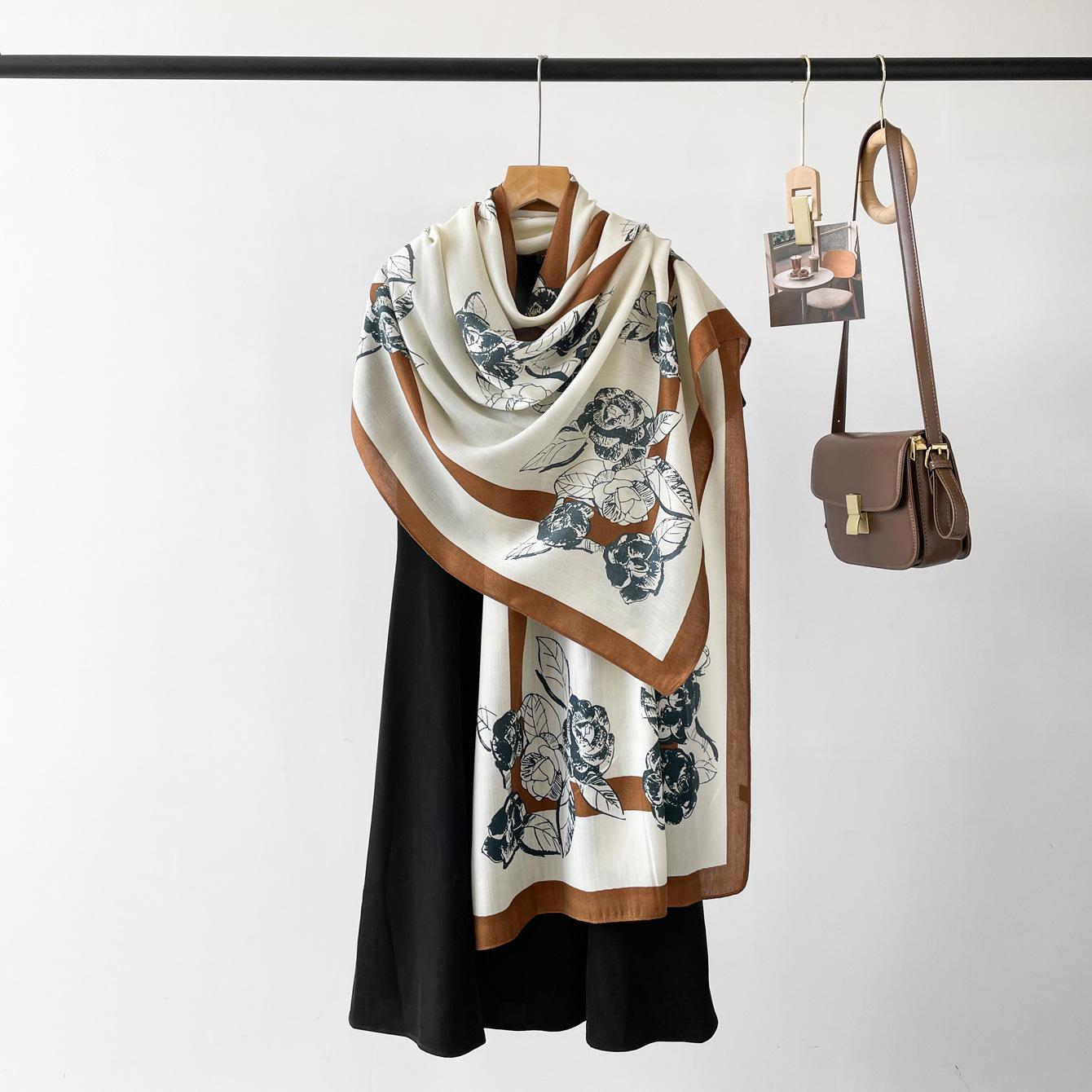 Bufanda de seda de espiga de alta gama para mujer, chal de satén de seda sintética con estampado floral rosa, otoño 2024