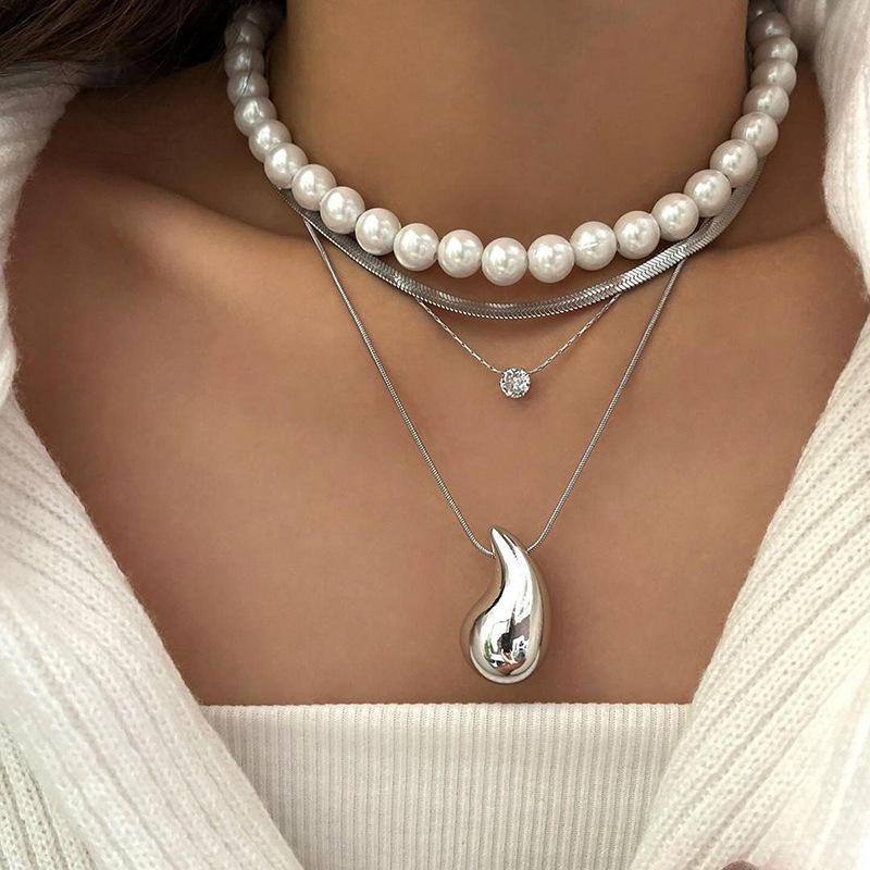 Europa y Estados Unidos comercio electrónico transfronterizo nueva joyería collar de perlas exageradas apiladas personalidad aleación irregular colgante de diamantes mujeres