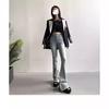 Pantalones acampanados estilo popular nuevo de este año estudiantes azul retro jeans elásticos para mujer verano rectos pequeños