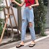 Vaqueros rotos lavados de talla grande 2024 para chicas gorditas en verano, pantalones de pierna ancha, rectos, sueltos y de cintura alta.
