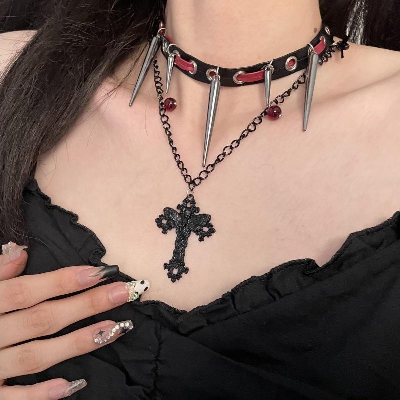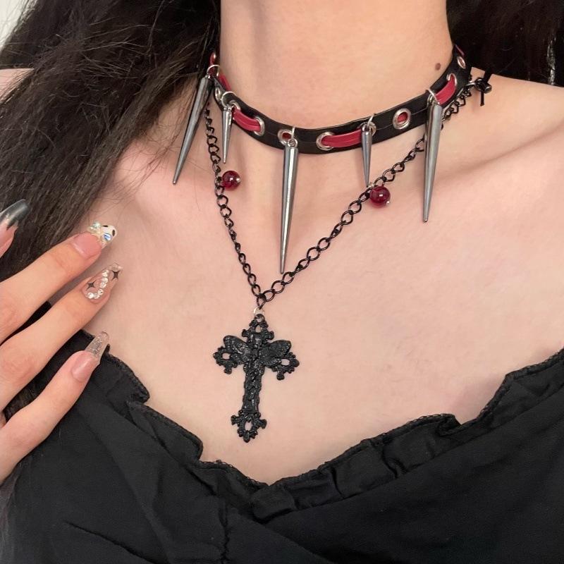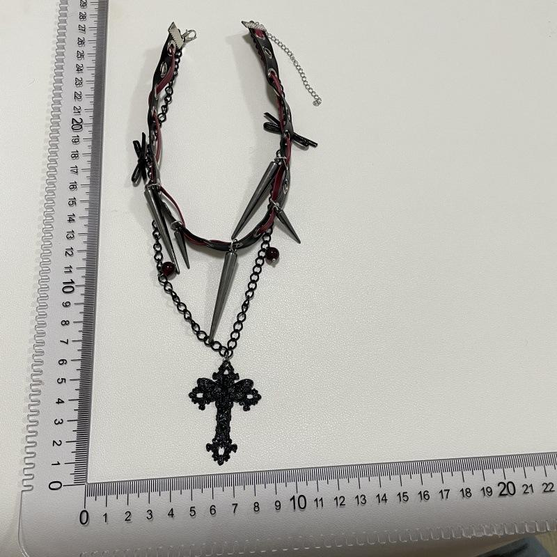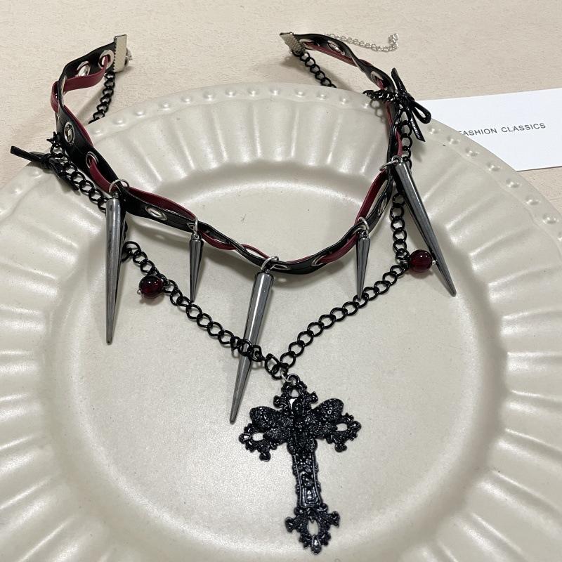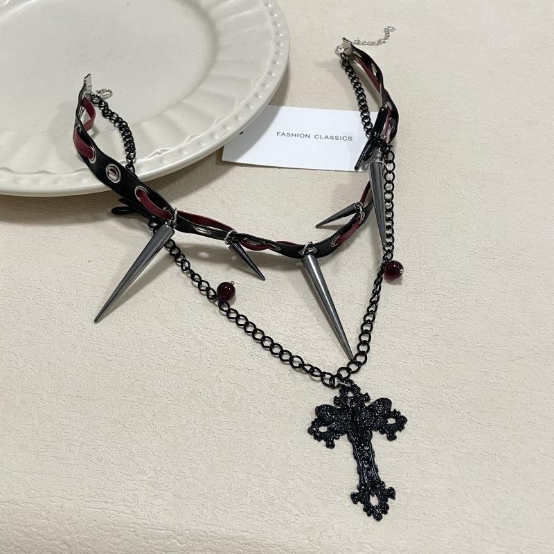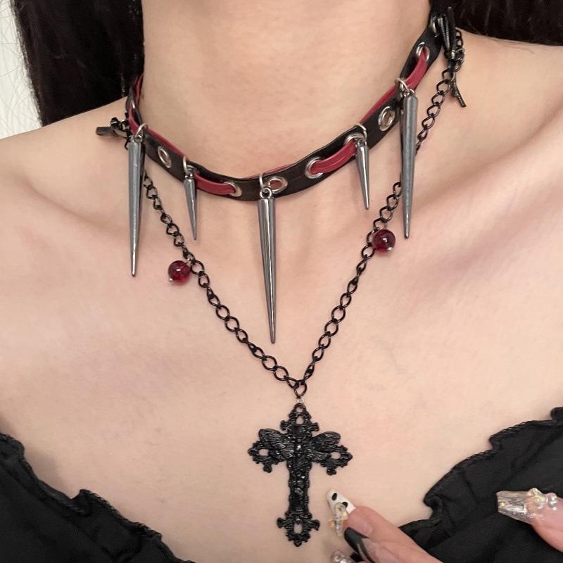 Collar Diablo Subcultura Remache Cruz Cuero Cadenas Doble Capa Punk Hip-hop Dulce Genial Personalidad Spice Girl
