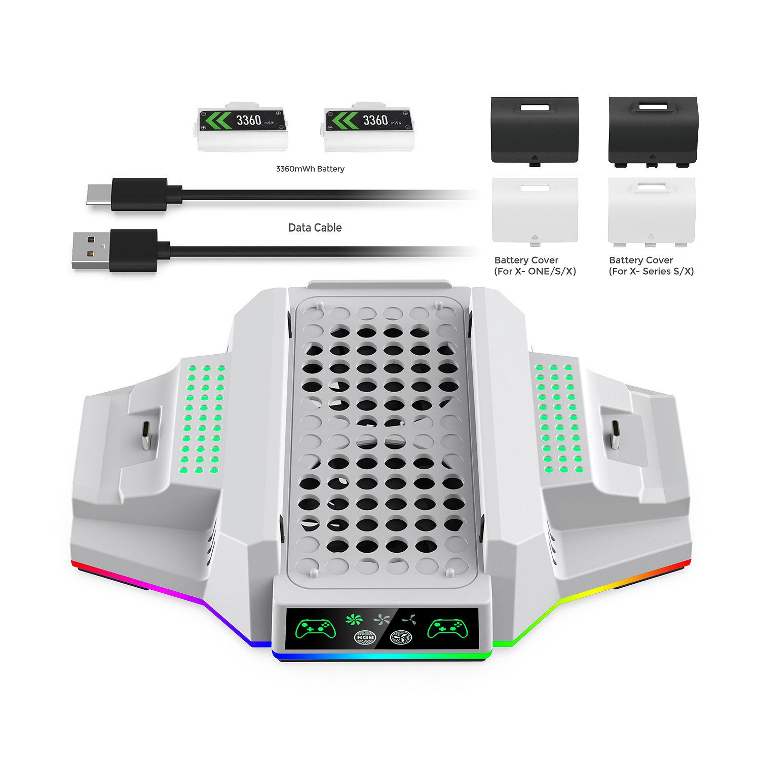 1. La base de ventilador multifunción TYX-3612 es una base multifunción personalizada para la consola de juegos XBOX Series S. Esta base tiene múltiples funciones, como refrigeración de la consola, control de carga de la batería e iluminación ambiental agradable.