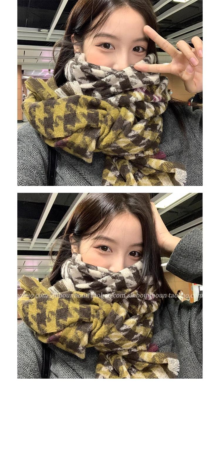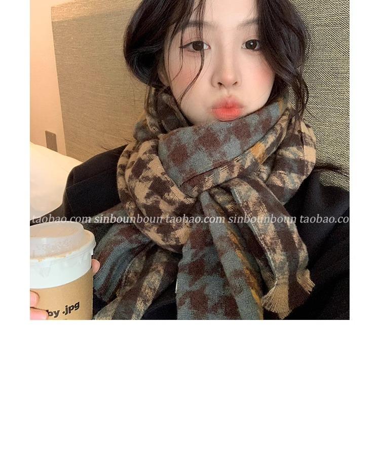 Bufanda coreana con borlas a cuadros para mujer en otoño e invierno. Bufanda cálida y gruesa para estudiantes, ideal para parejas y hombres.