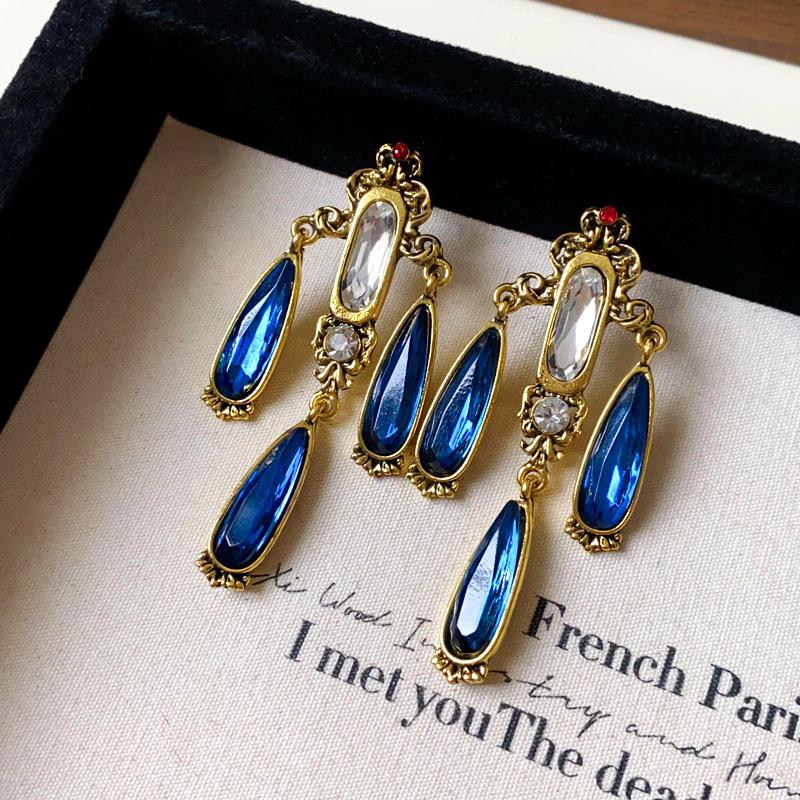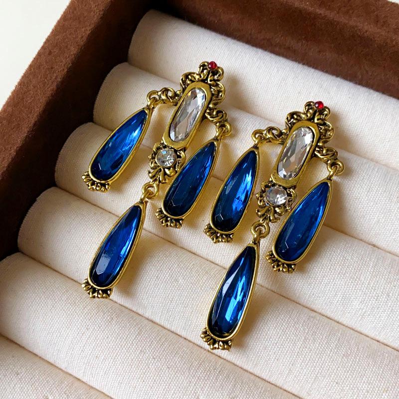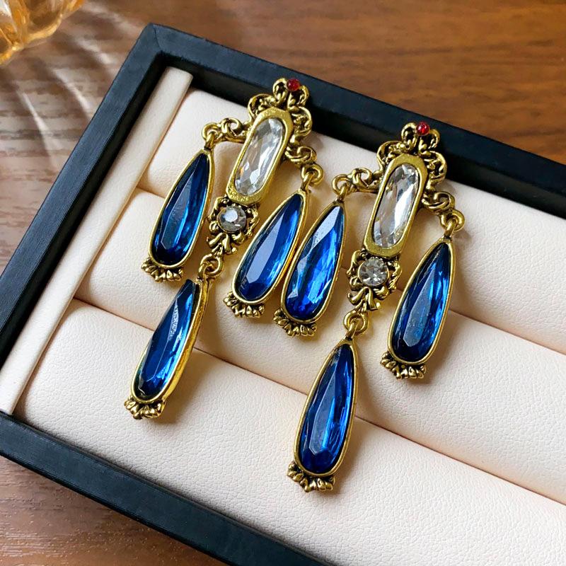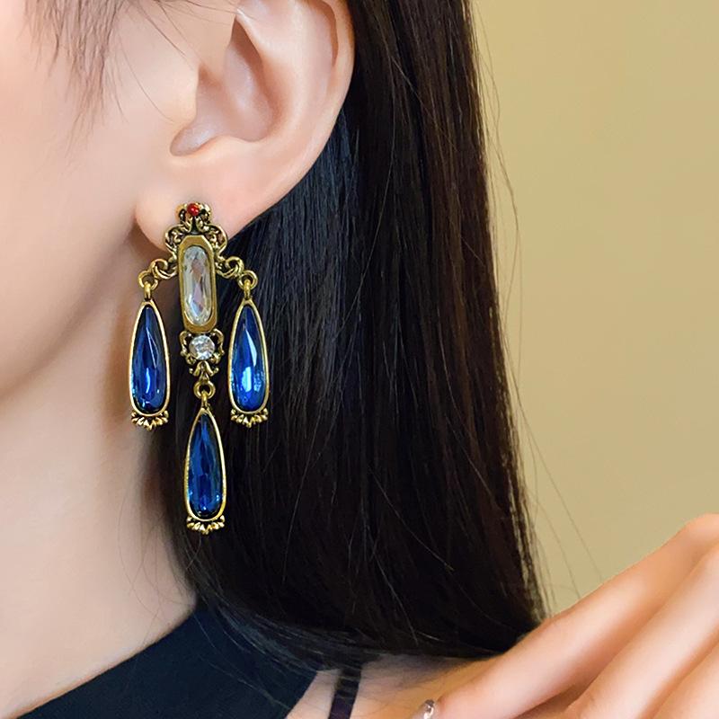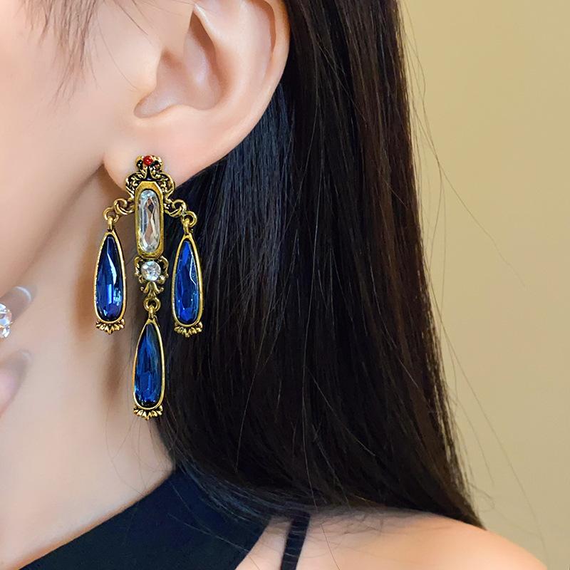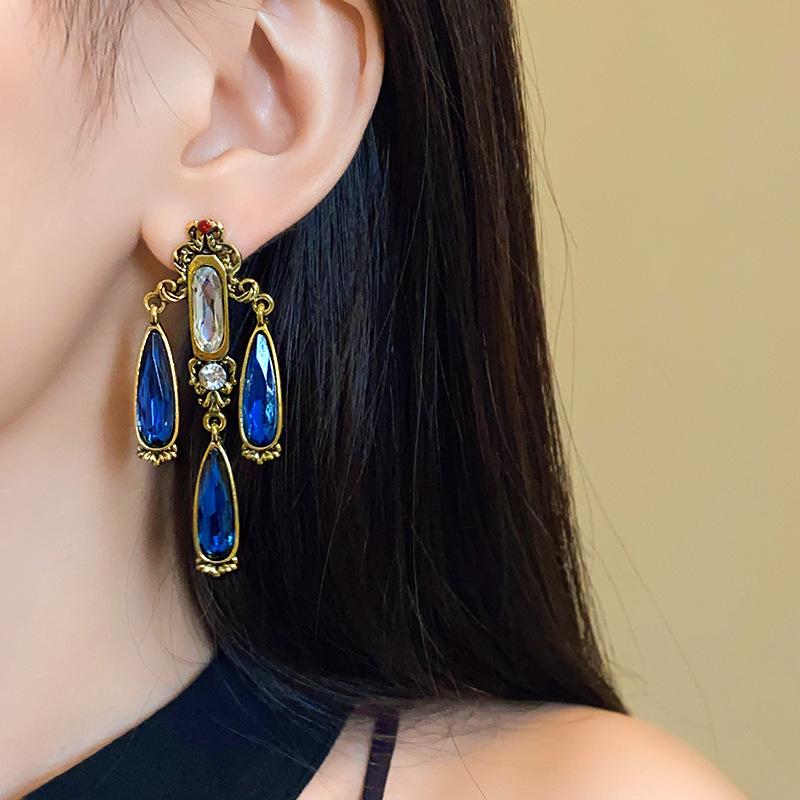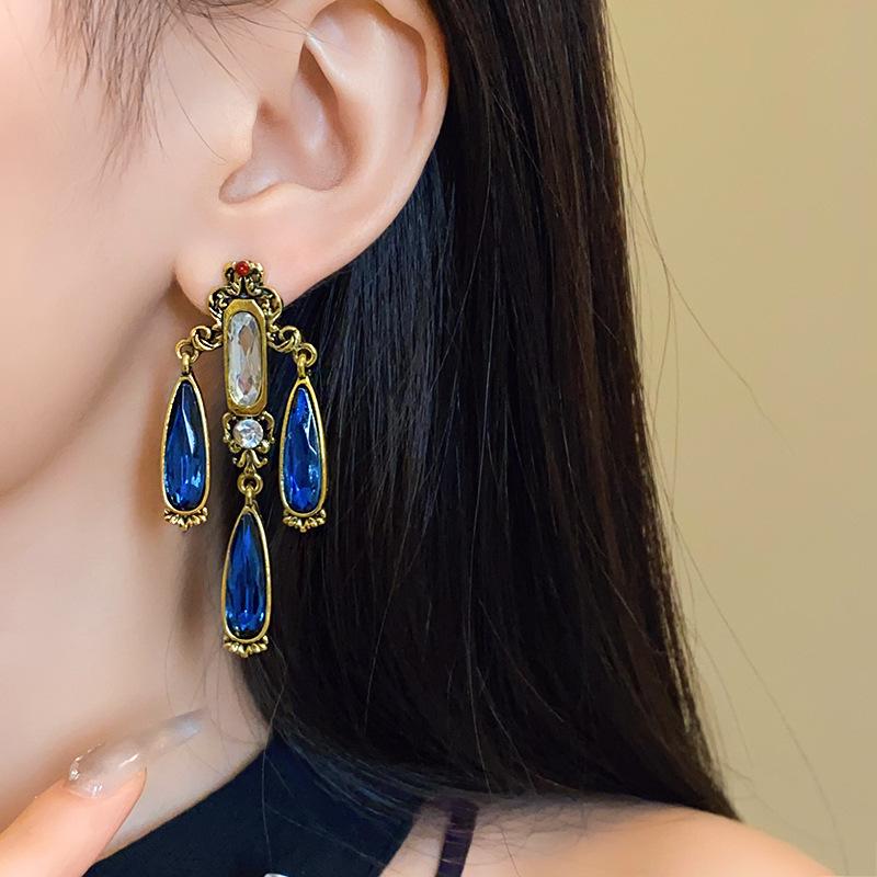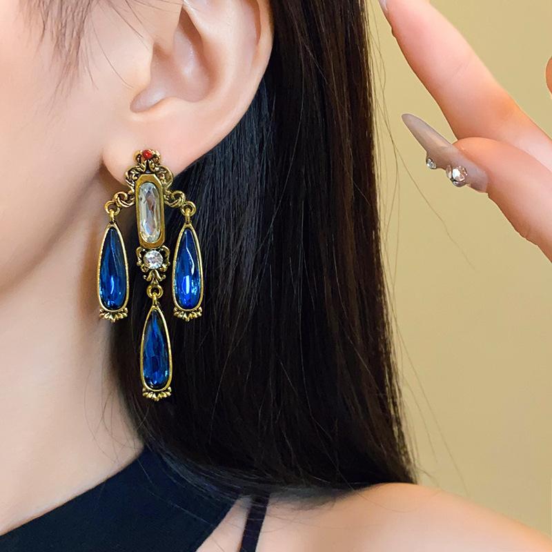 Pendientes Antiguos Medianos Vintage Aguja de Plata Diamante Gota de Agua Pendientes de Borla Nicho Estilo Corte Pendientes Largos Elegantes para Mujer