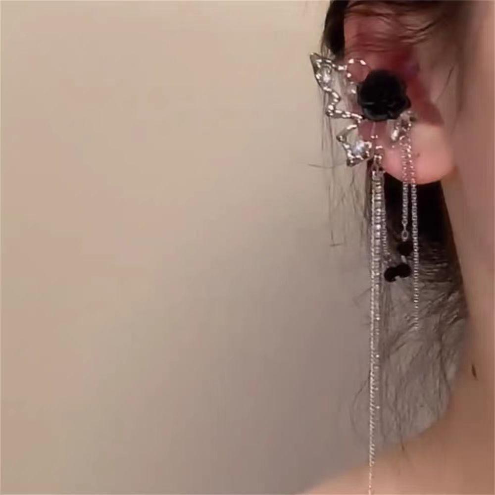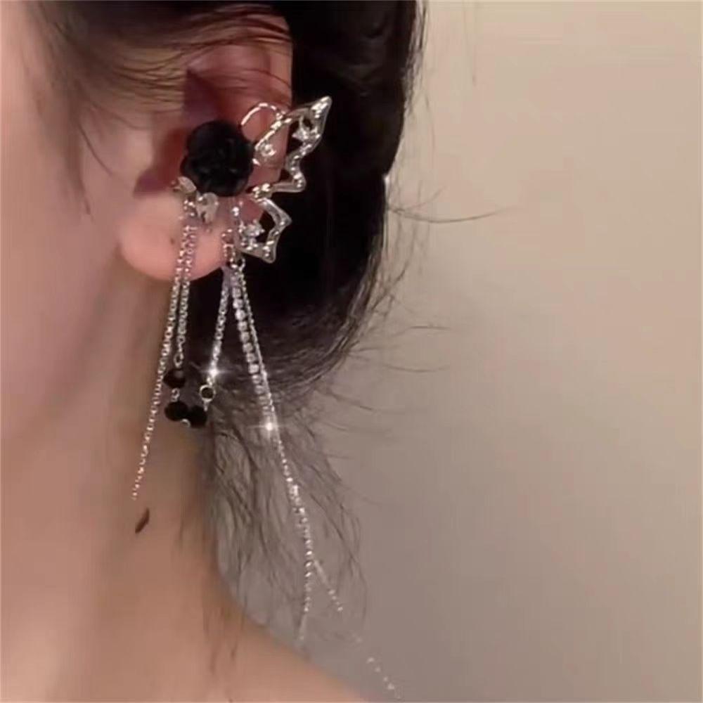 Pendientes de mariposa con borla de rosa negra para mujer, estilo dulce y moderno, sin agujeros, únicos y elegantes.
