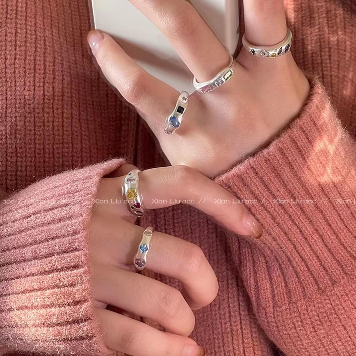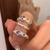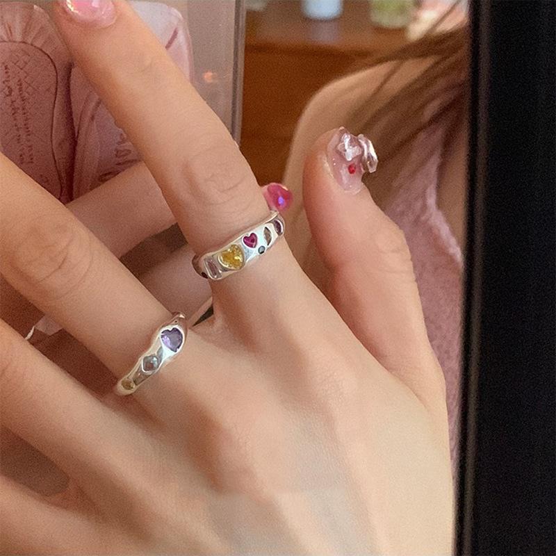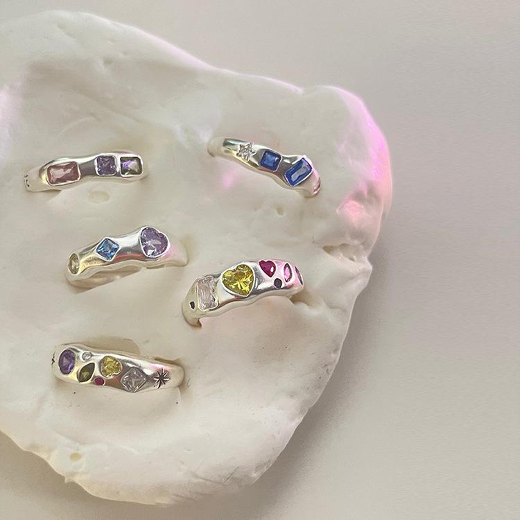 Anillo de Corazón de Zirconia Colorido de Metal de Aleación Irregular para Mujer Nicho Retro Elegante Simple Versátil