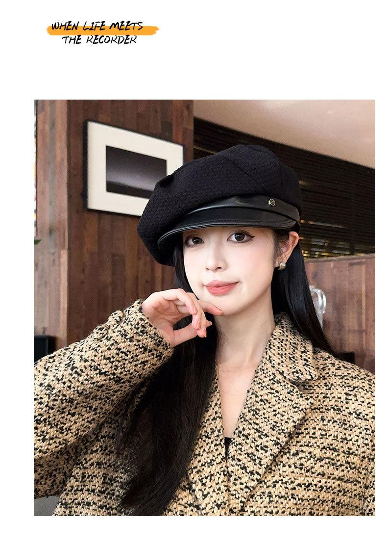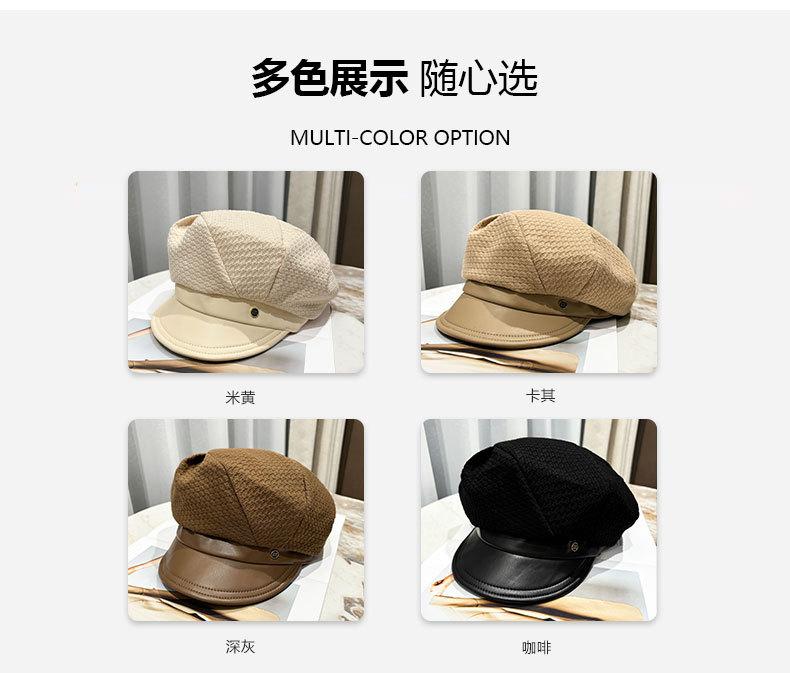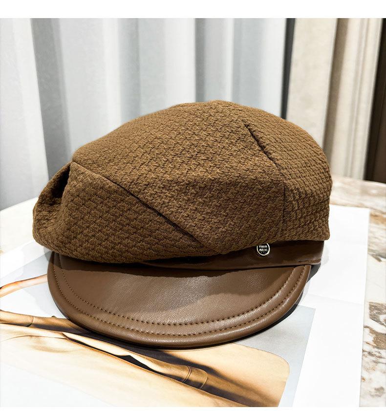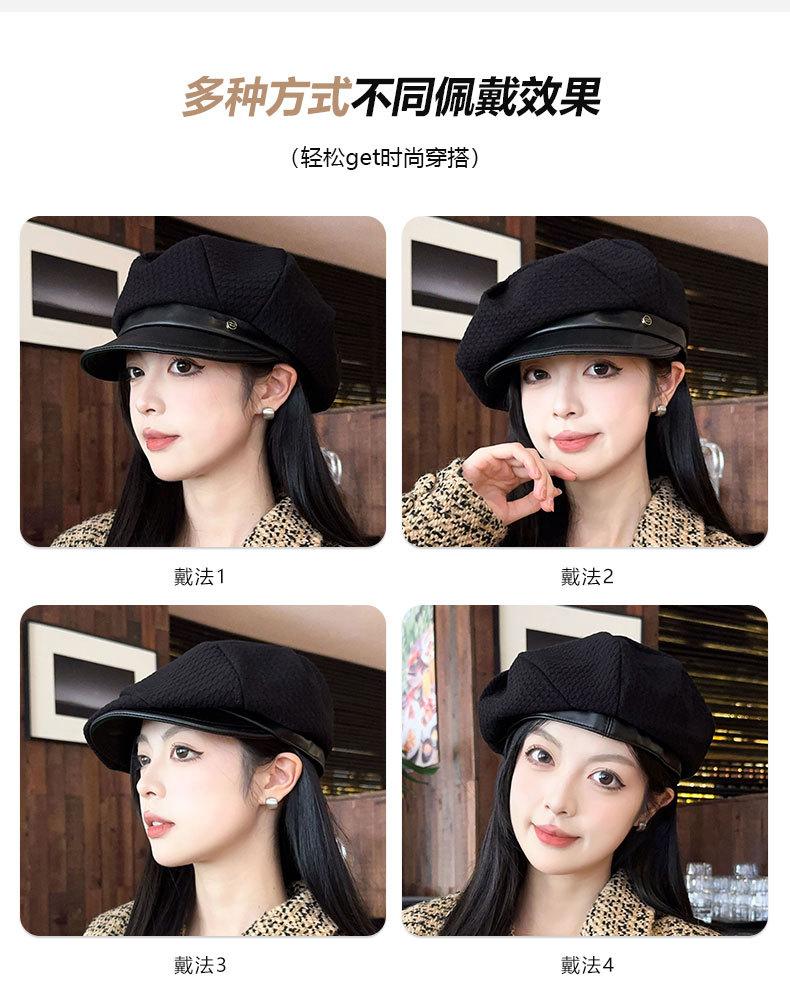 Una Gorra Cuatro Boina para Mujer Otoño e Invierno Cabeza Grande Gorra Hacia Adelante Que Muestra la Cara Lengua de Patito Gorra Octogonal Pintor Sombrero de Nube