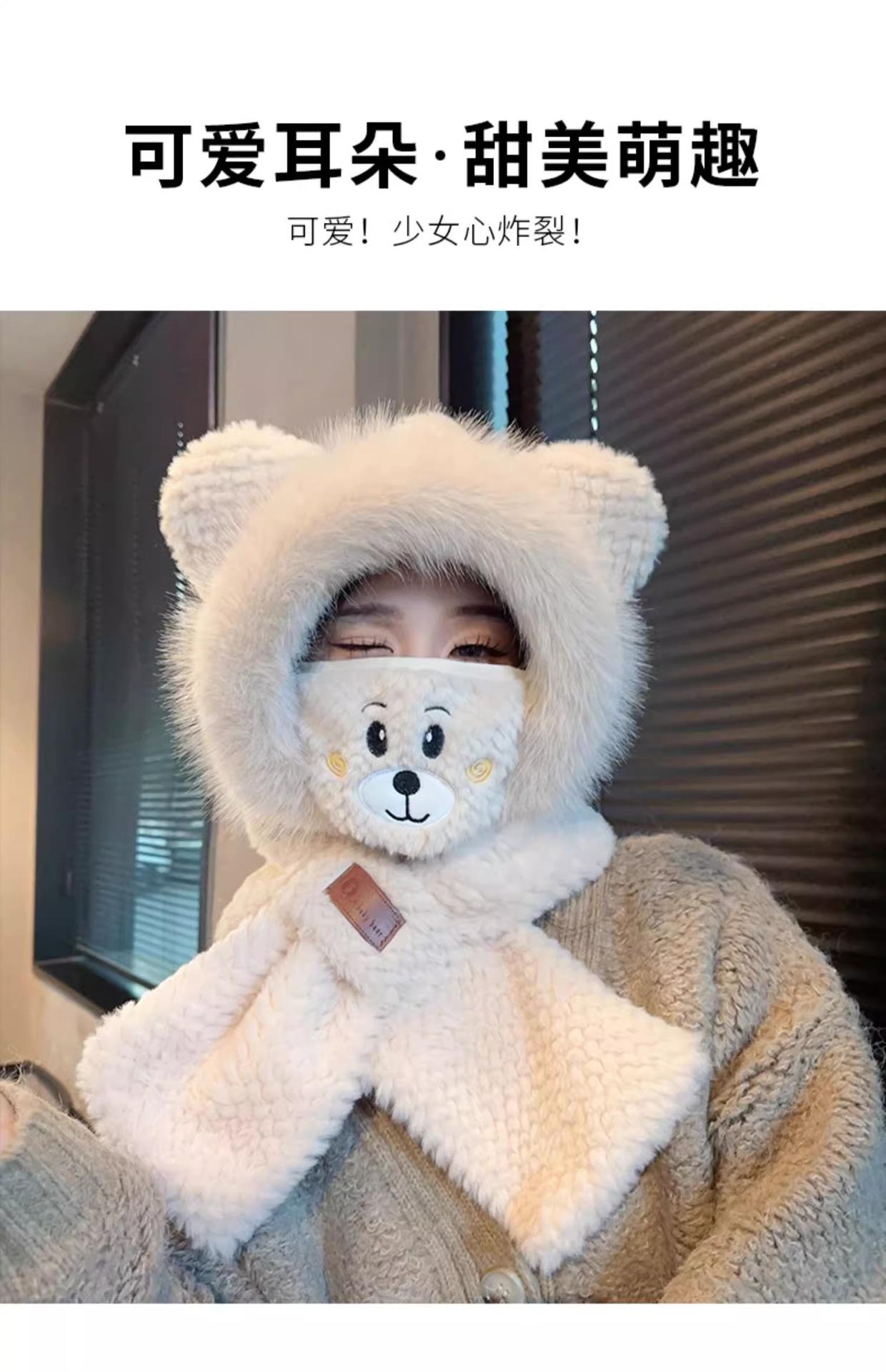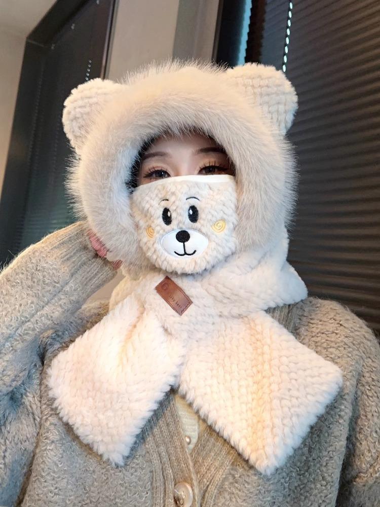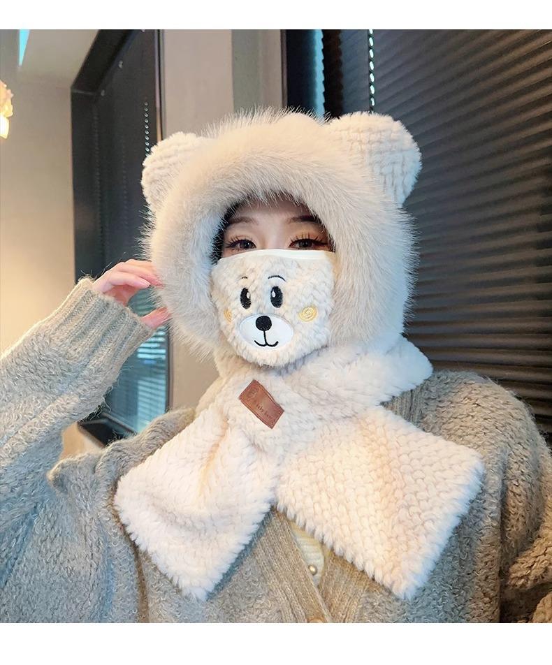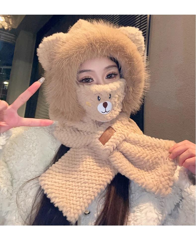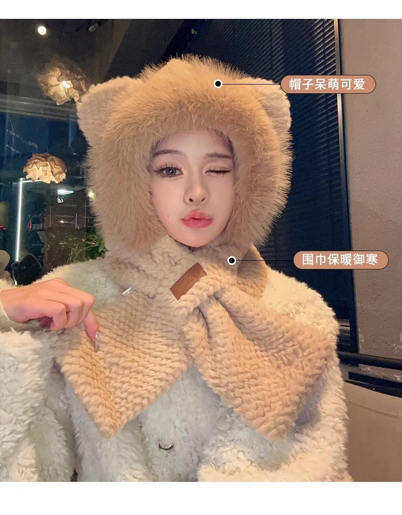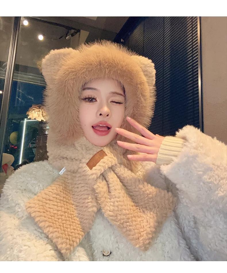 Gorro de Oso y Bufanda Todo en Uno para Mujer Otoño e Invierno Terciopelo Engrosado Cálido Ciclismo a Prueba de Frío Protección para las Orejas Bufanda de Felpa Linda