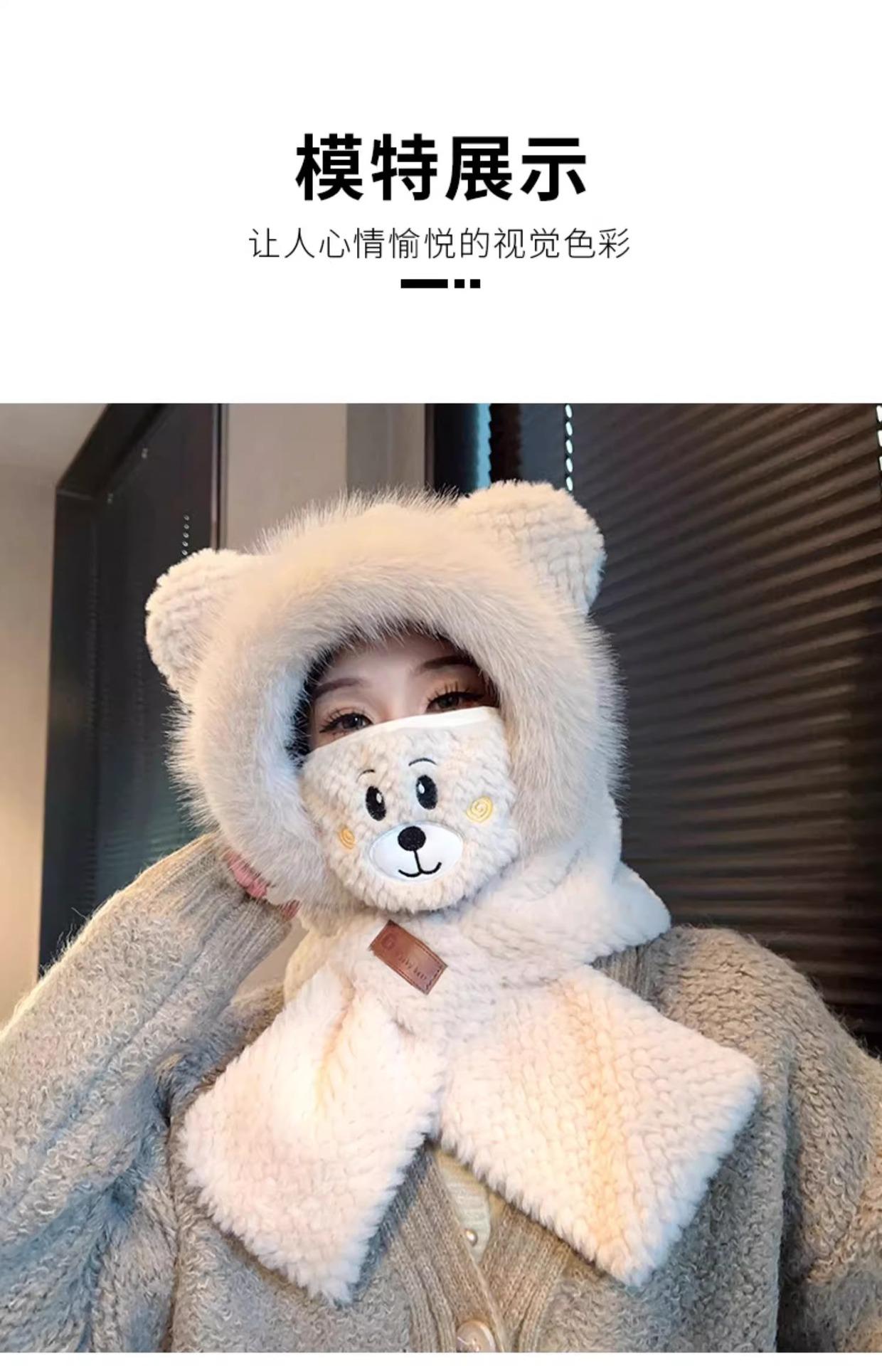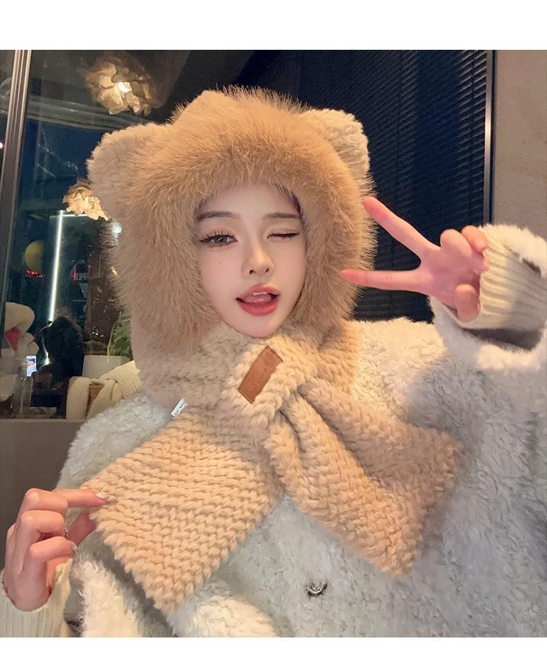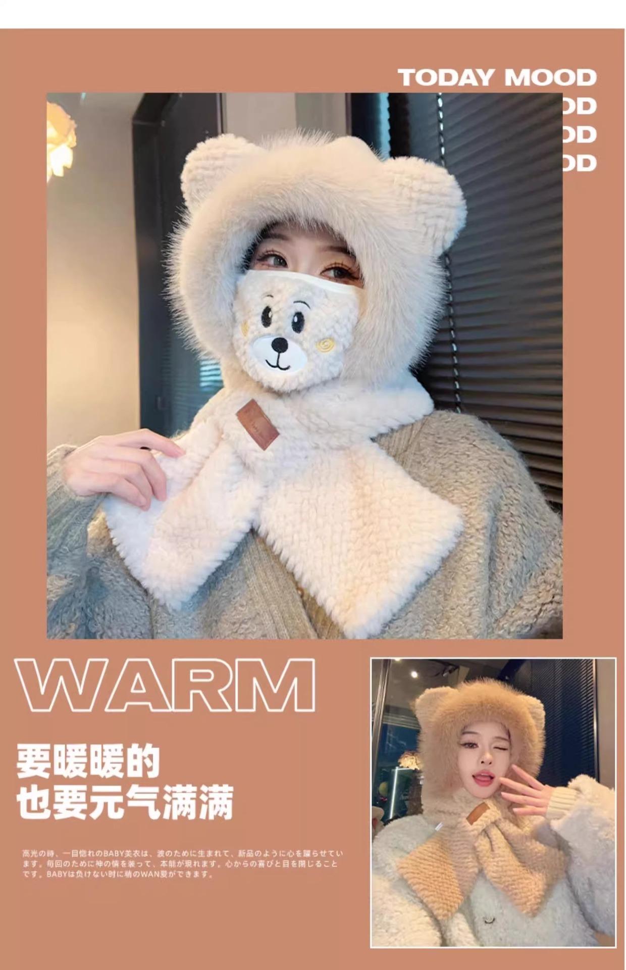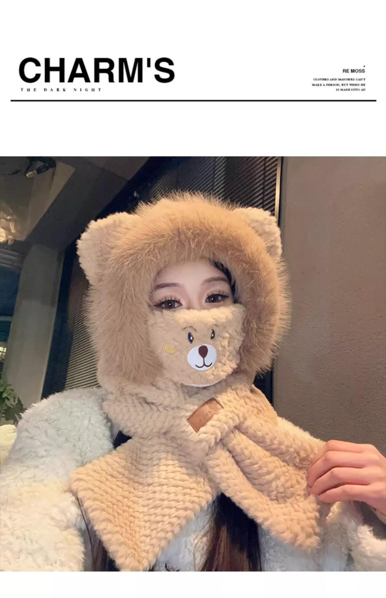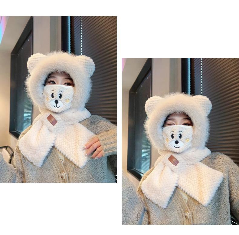 Gorro de Oso y Bufanda Todo en Uno para Mujer Otoño e Invierno Terciopelo Engrosado Cálido Ciclismo a Prueba de Frío Protección para las Orejas Bufanda de Felpa Linda