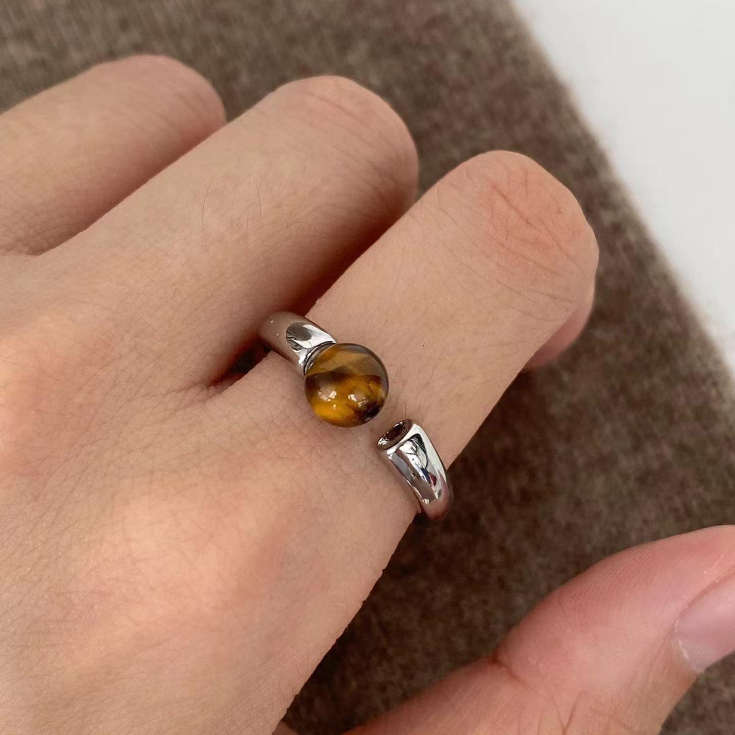 Tiger cat eye metal ring