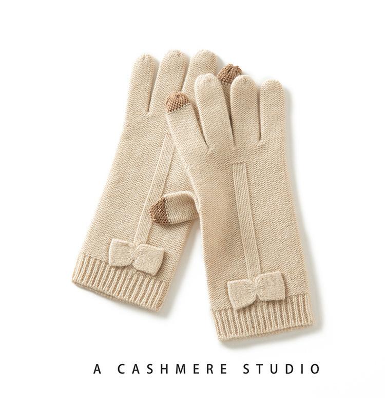 Nuevos guantes de cachemira pura de punto para mujer, para otoño e invierno, para ciclismo al aire libre, resistentes al viento, con forro polar, cálidos y gruesos para pantalla táctil.