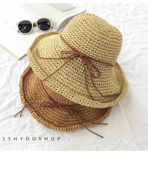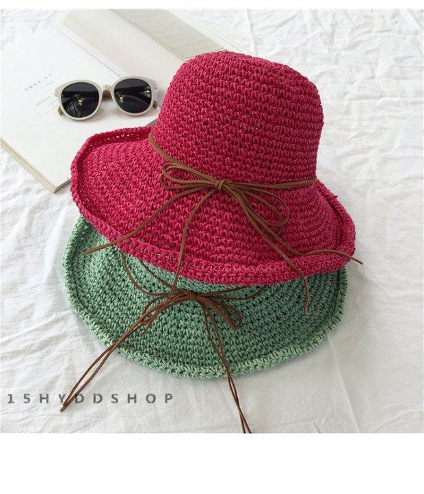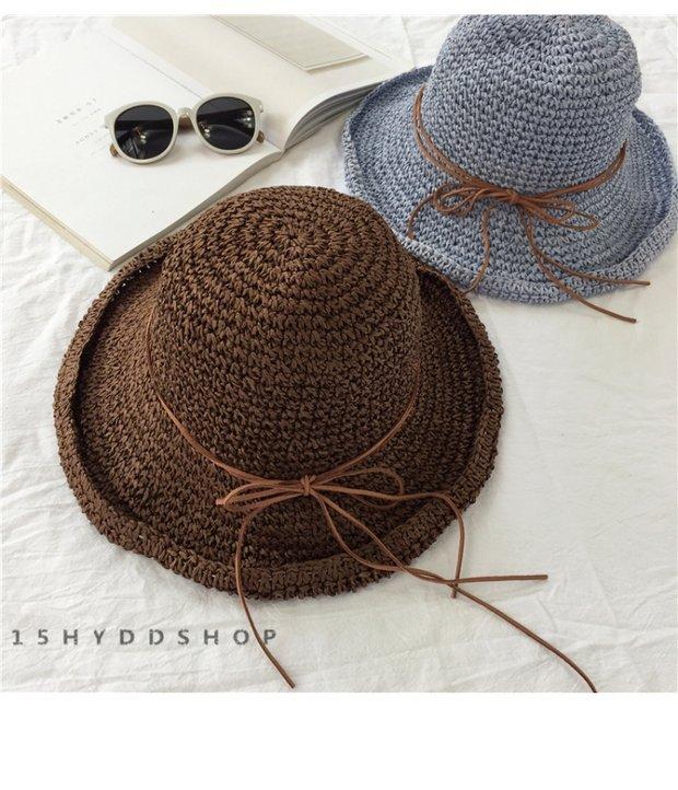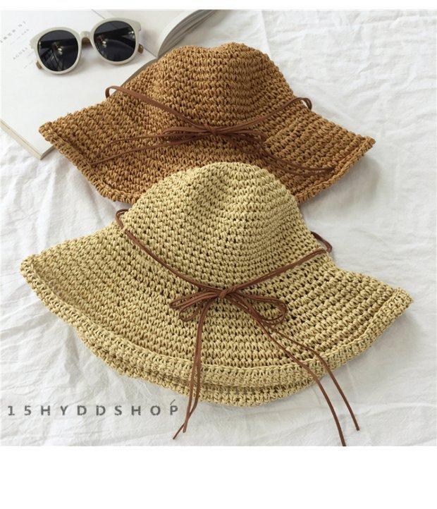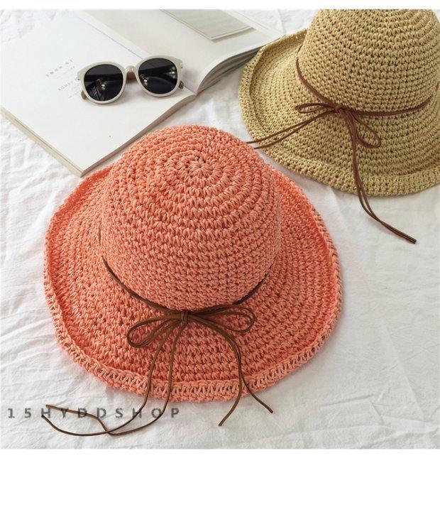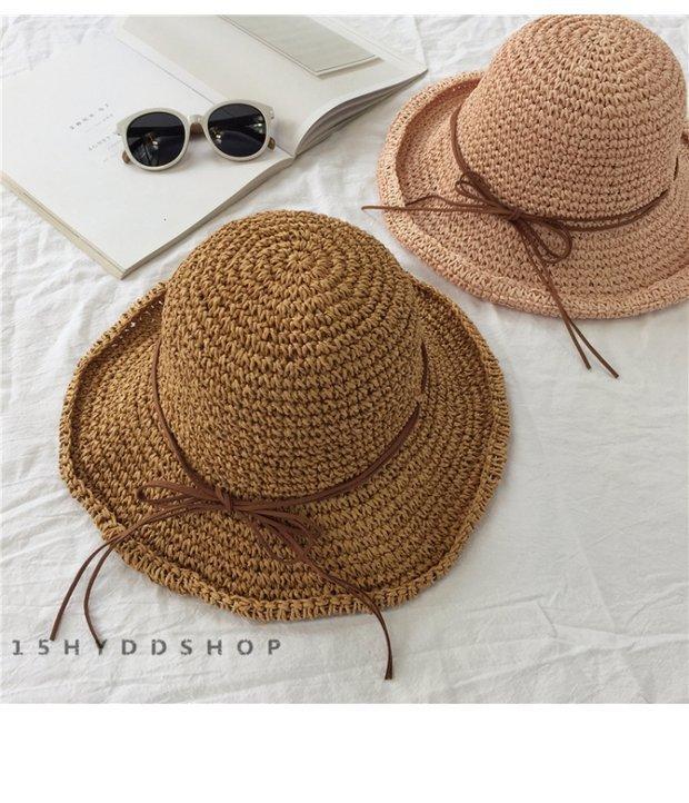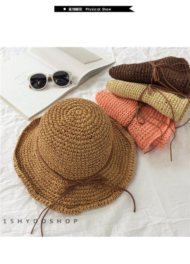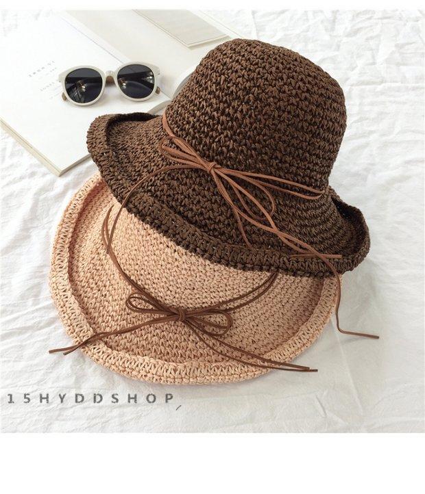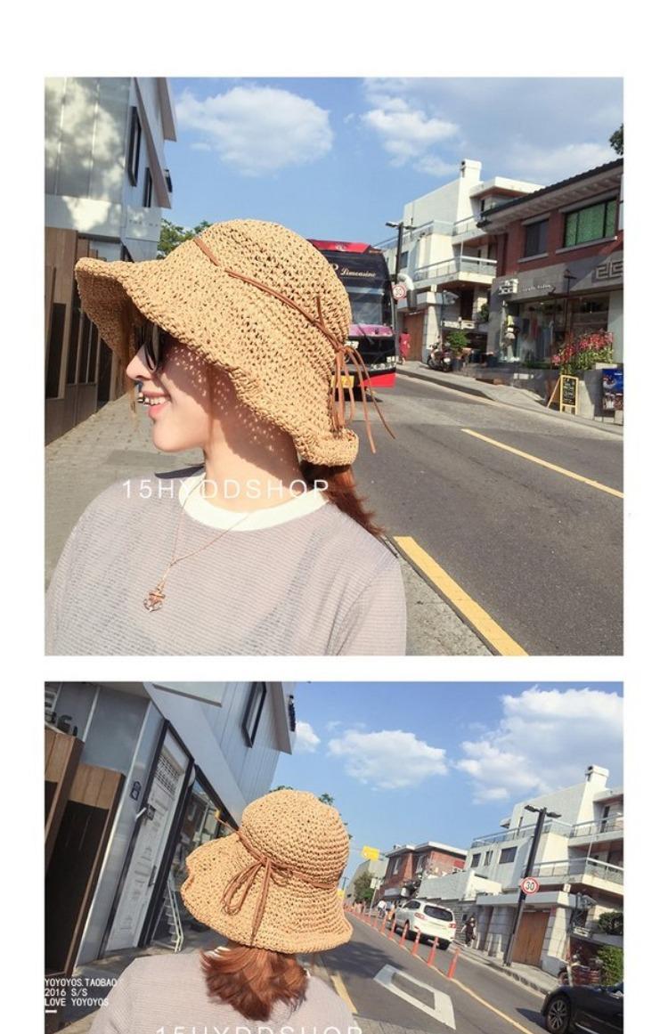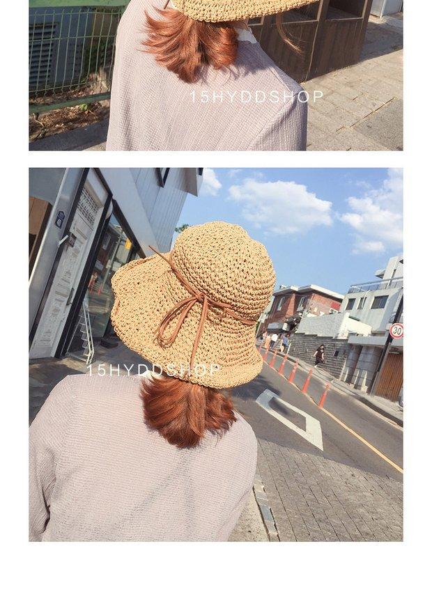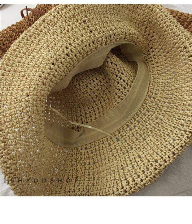 Sombrero de Paja Plegable Coreano para Mujer Verano Pequeño Fresco Playa Protección Solar Combinable Sombrero de Pescador Sombrero de Sol Sombrero de Moda Venta al por Mayor