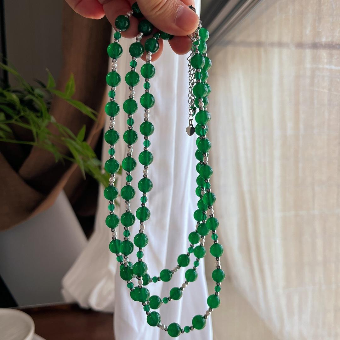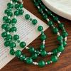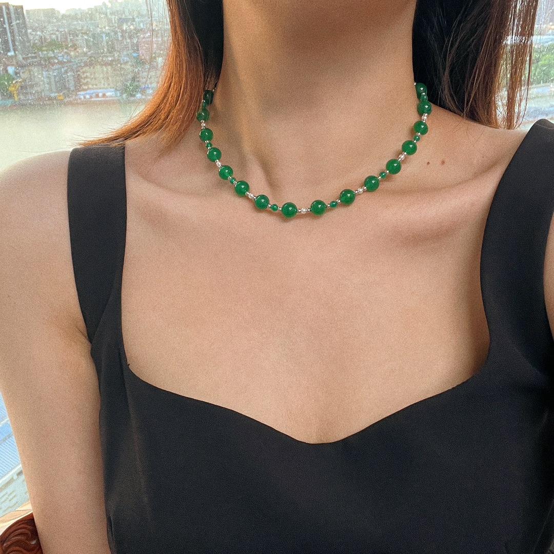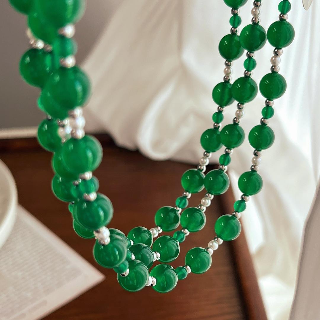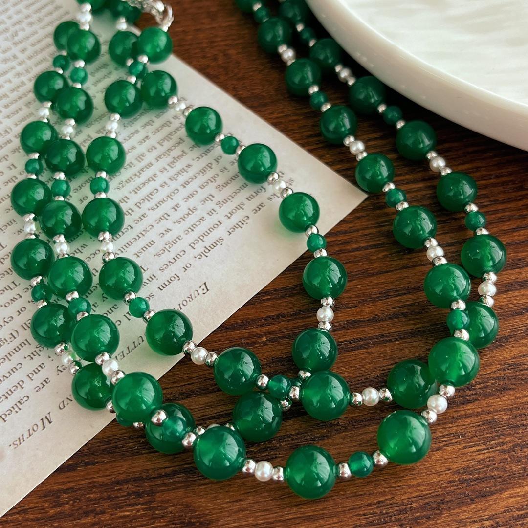 Collar Retro Fresco Calcedonia Verde Natural Shijia Perla Blanca Fría Gipsófila Ágata Cadena para Clavícula para Mujer