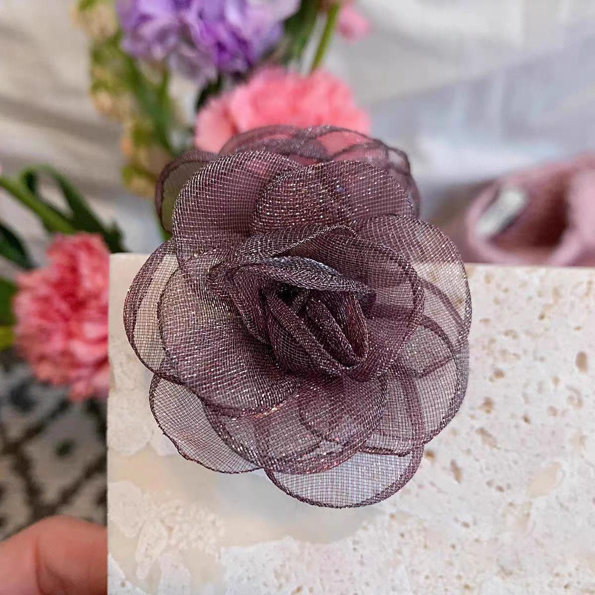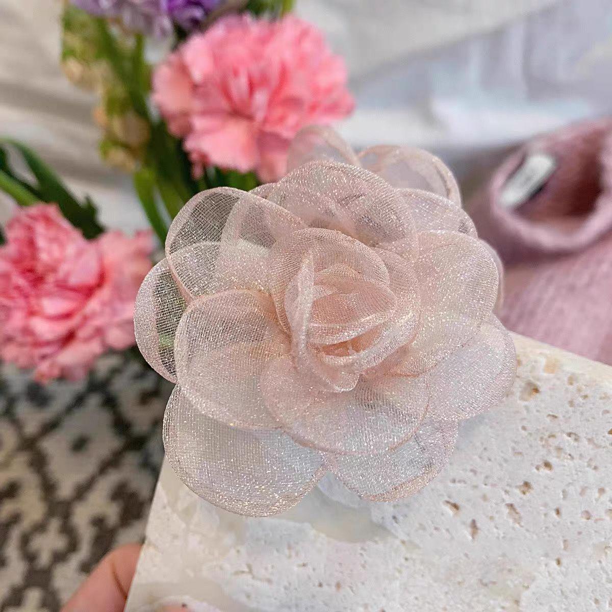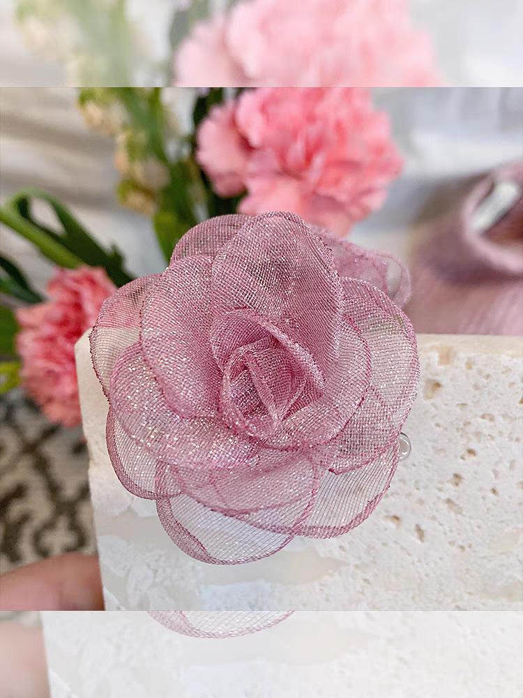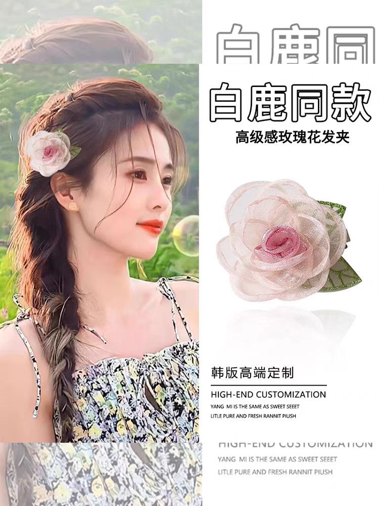Pinza para el cabello con rosa de organza, pinza lateral de alta gama, pinza para flequillo estilo hada, pinza para el cabello roto en la frente, accesorio para la cabeza