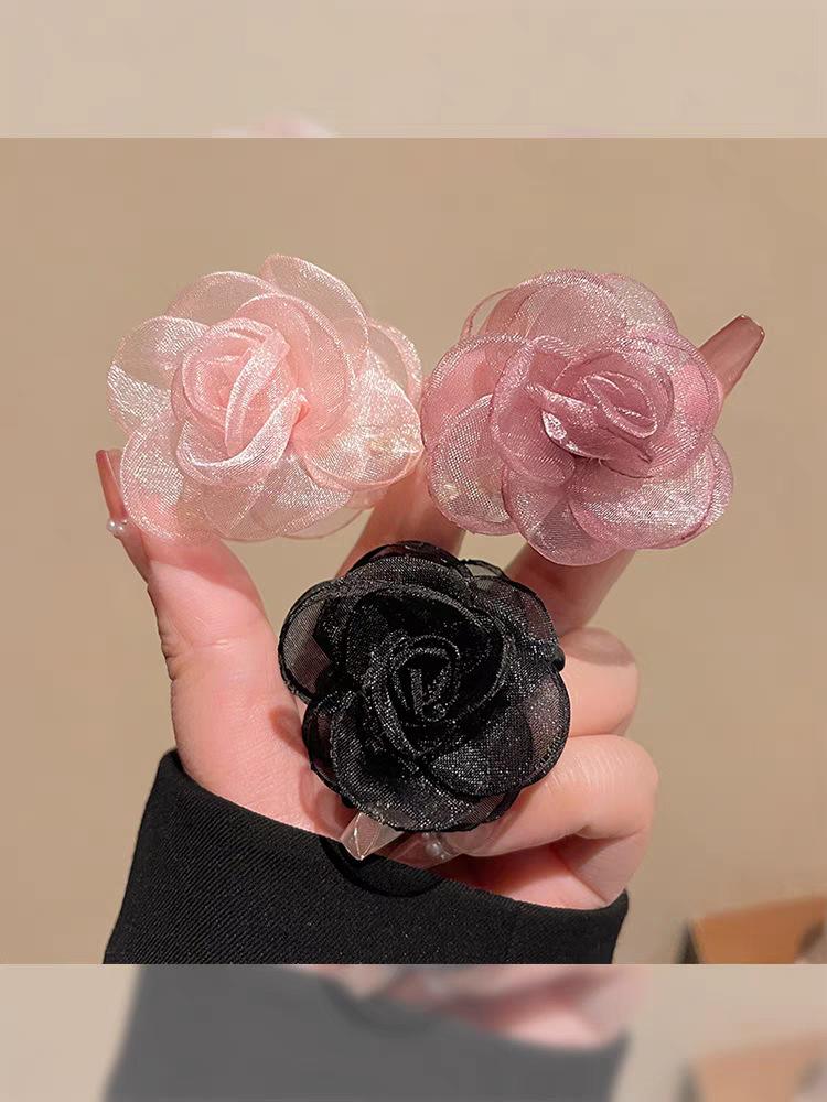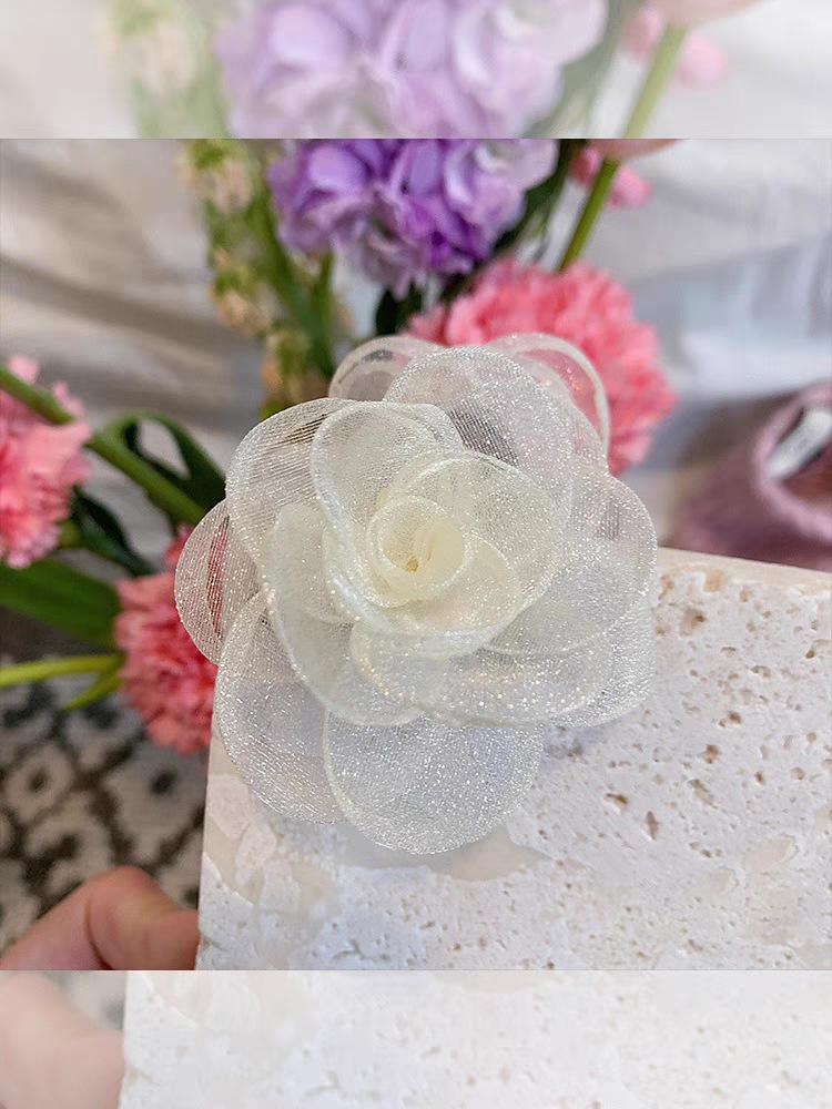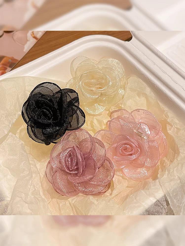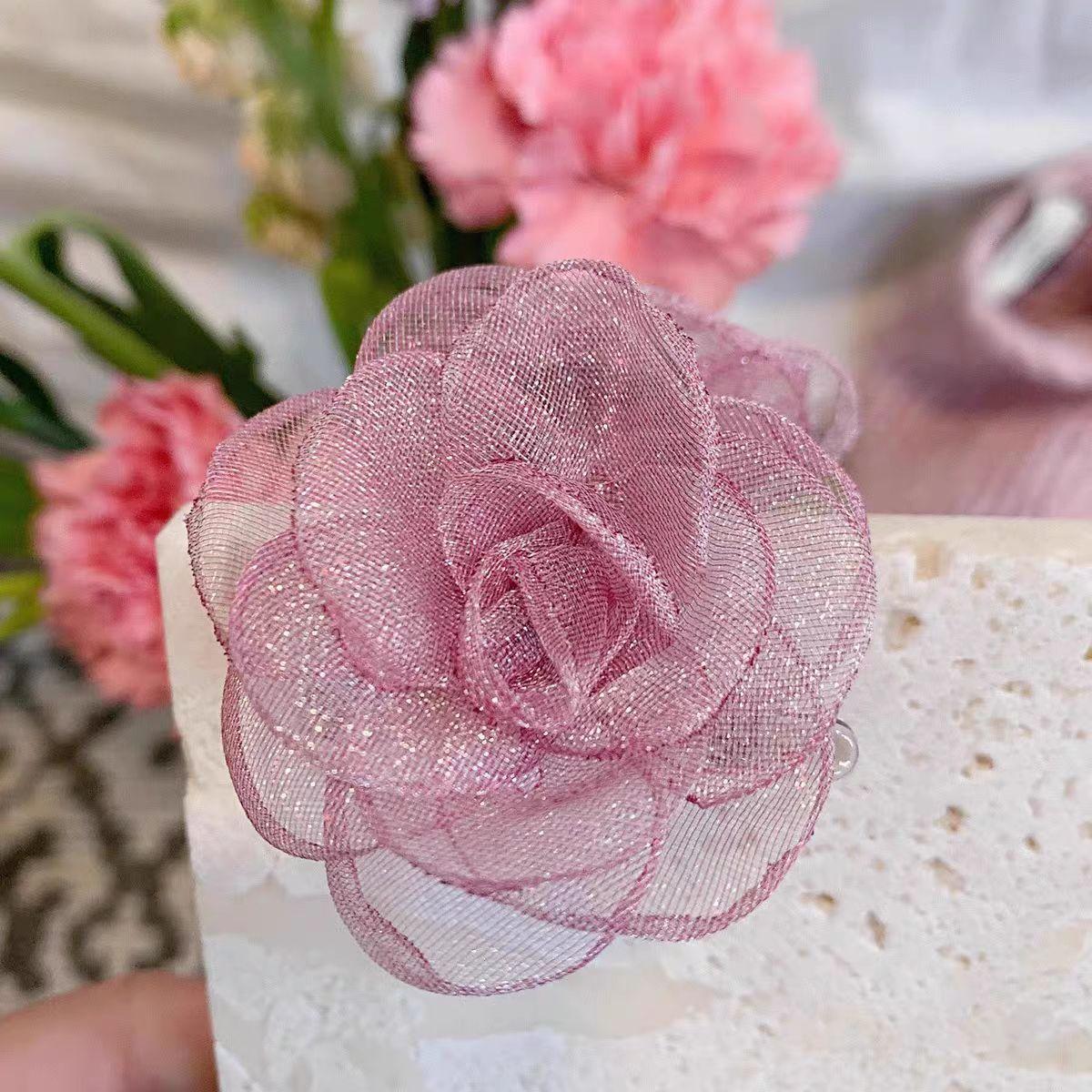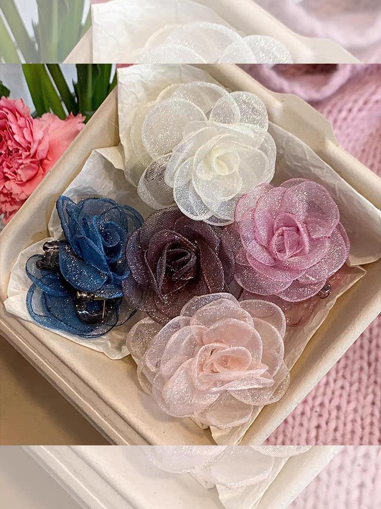 Pinza para el cabello con rosa de organza, pinza lateral de alta gama, pinza para flequillo estilo hada, pinza para el cabello roto en la frente, accesorio para la cabeza
