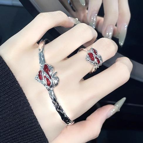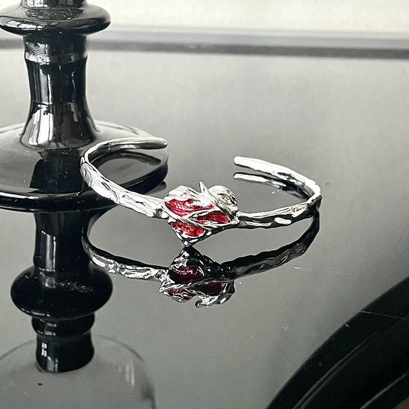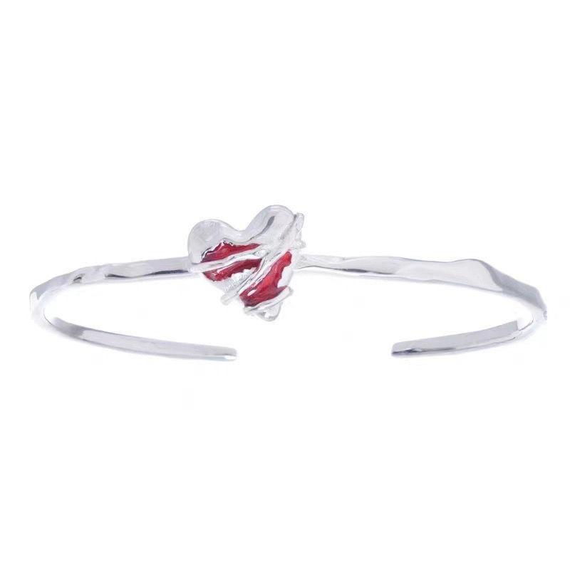 Pulsera Personalizada de Diseño Nicho Pulsera de Esmalte Rojo Pulsera de Alta Gama Estilo Frío ins Pulsera Abierta Francesa para Mujer