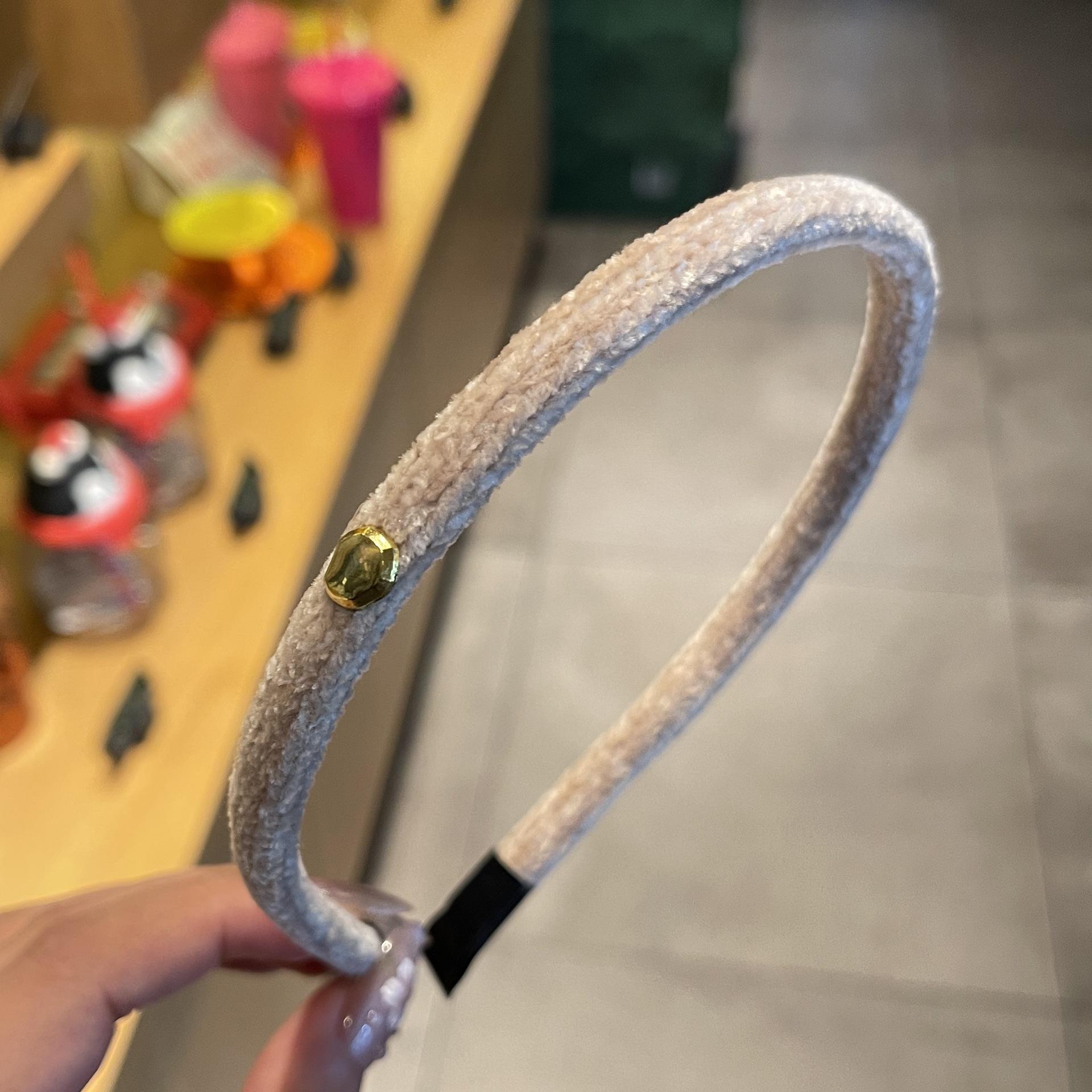 #3#3071 gold buckle velvet thin strip hoop-beige