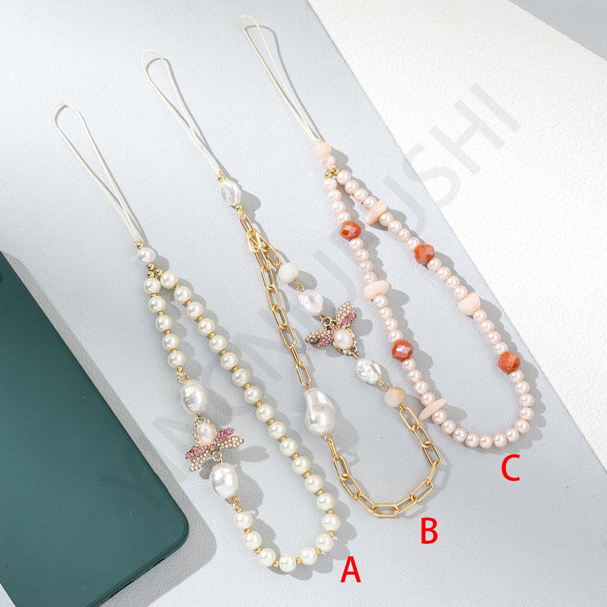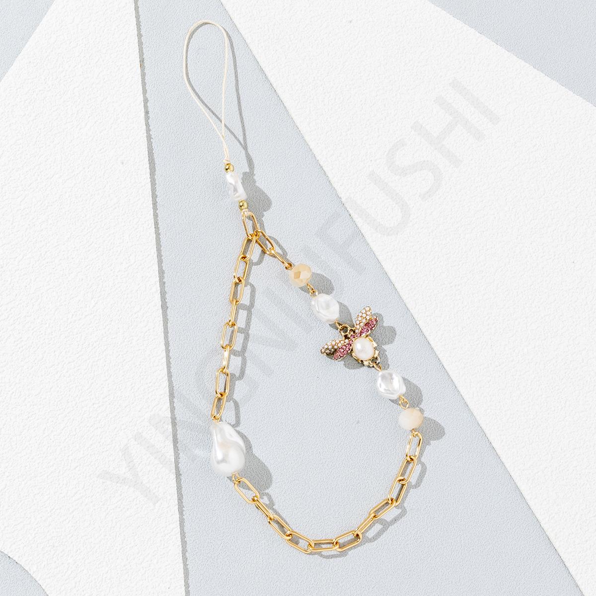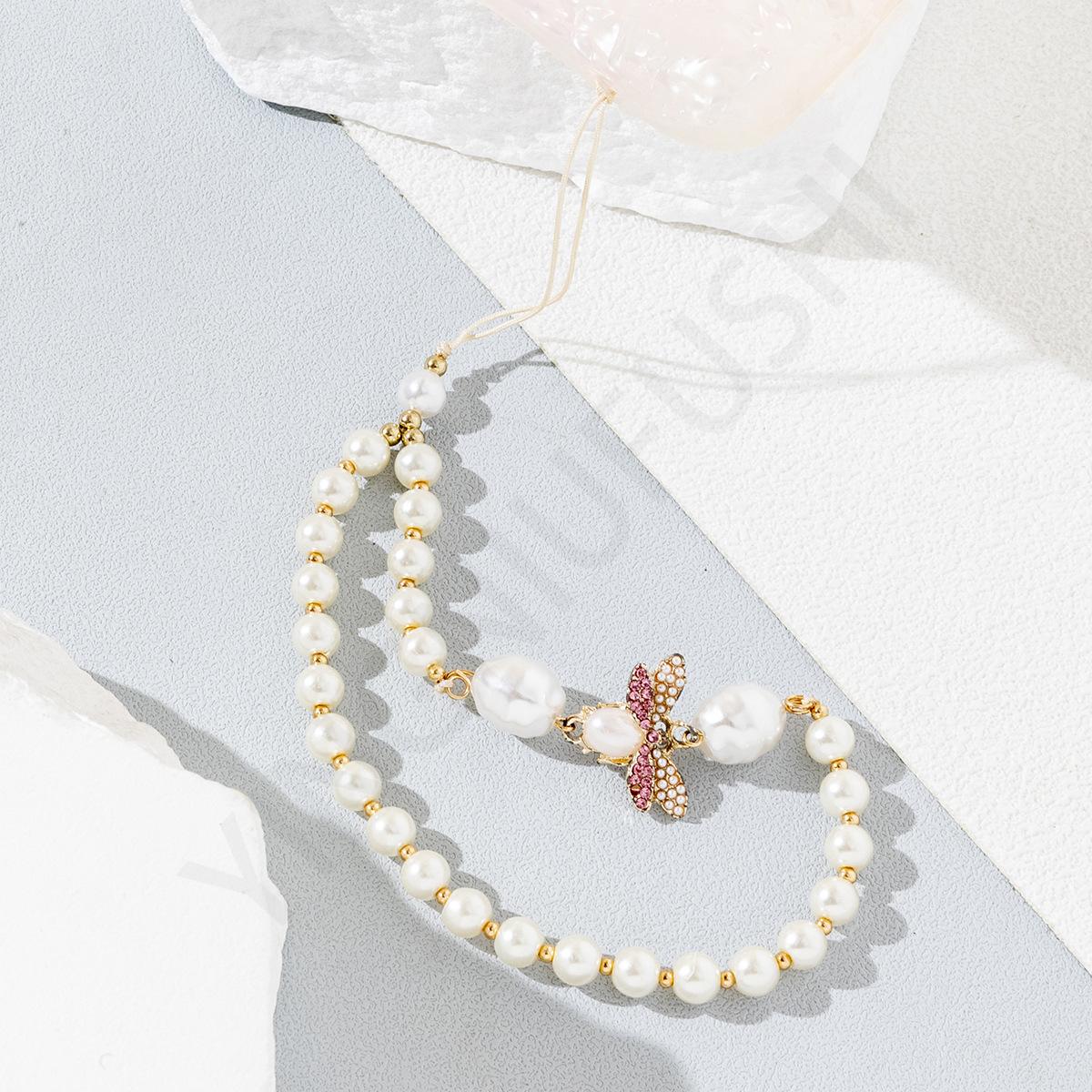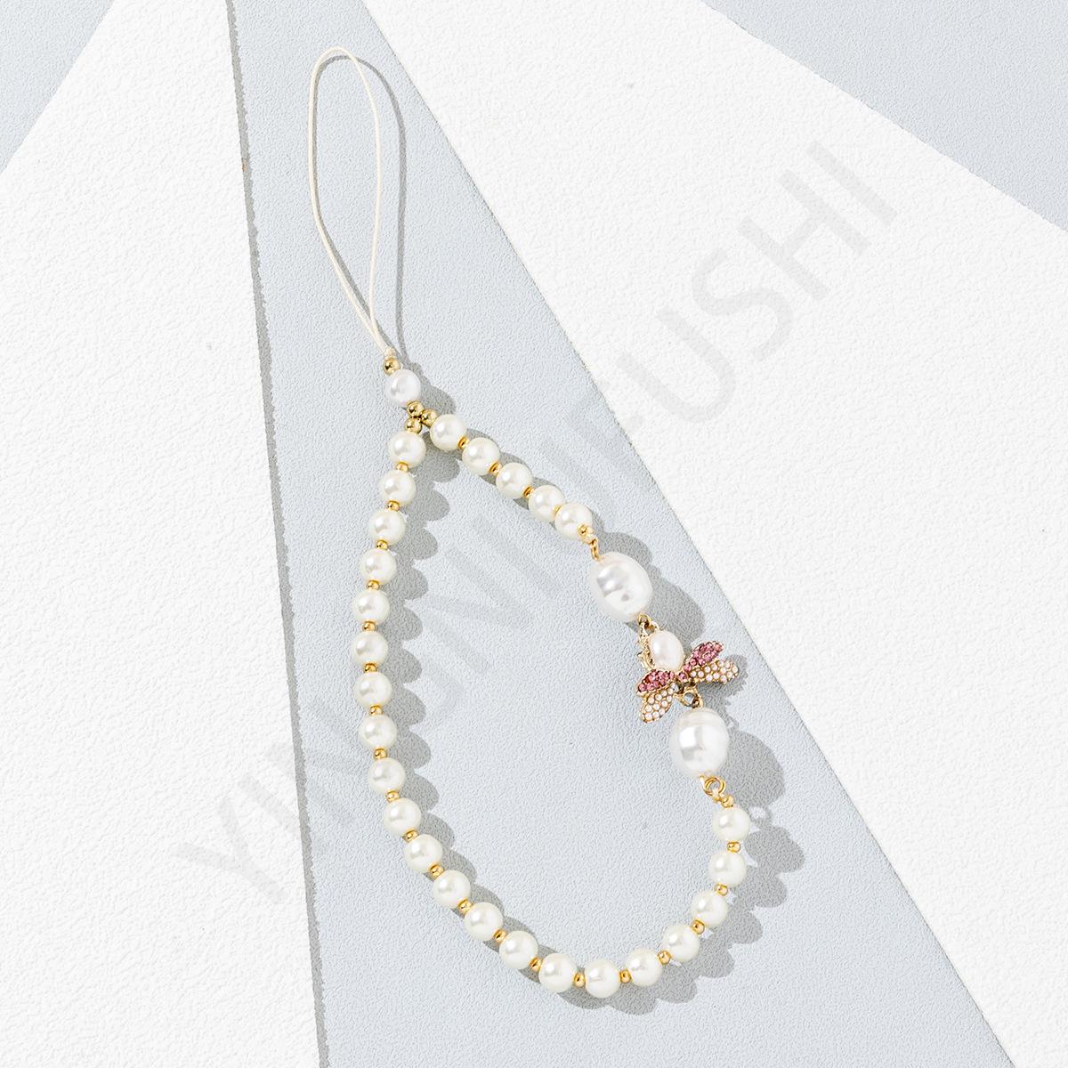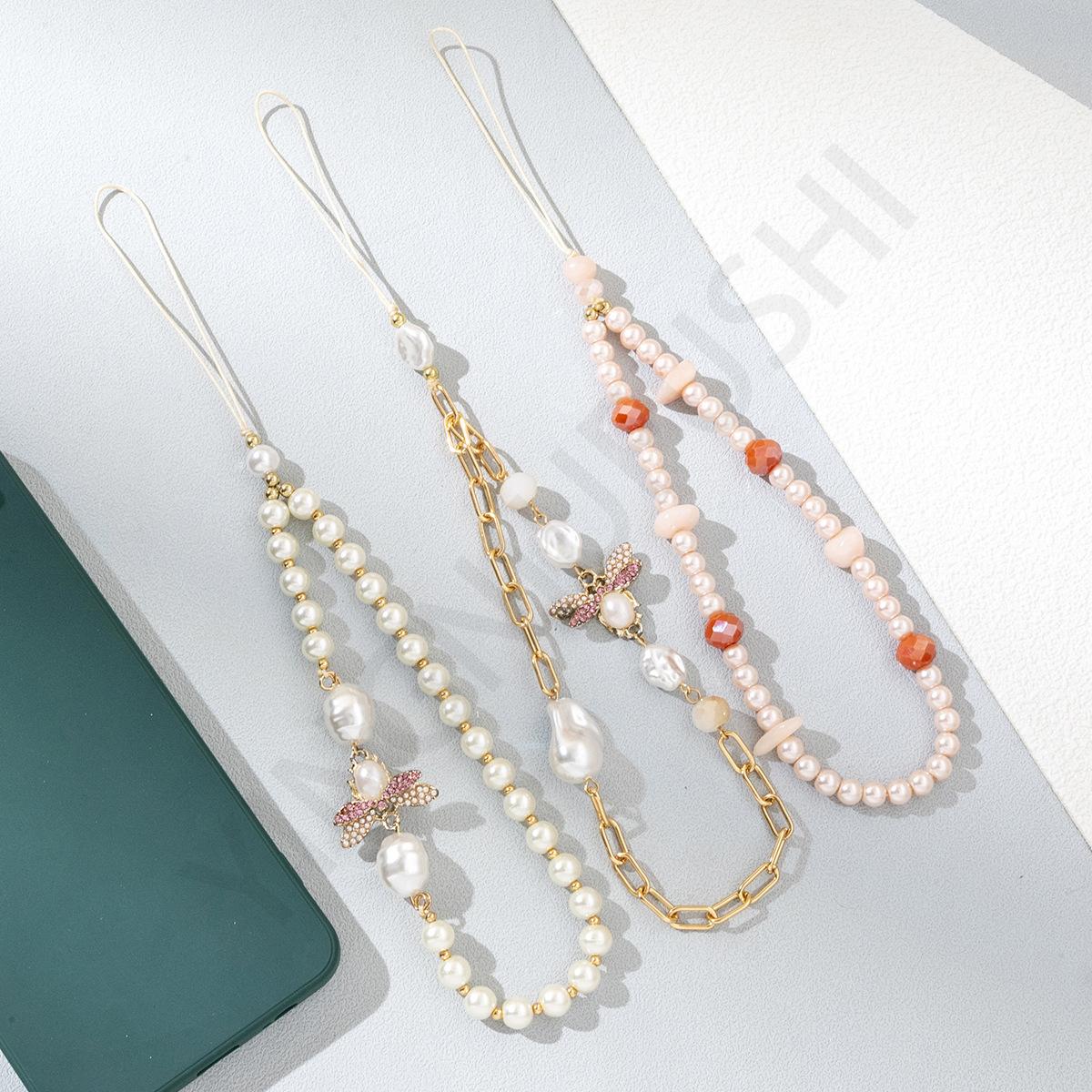 Cadena para teléfono móvil con cuentas de perlas de estilo europeo y americano, ligera, de lujo, con cordón para teléfono móvil, accesorio colgante para bolso